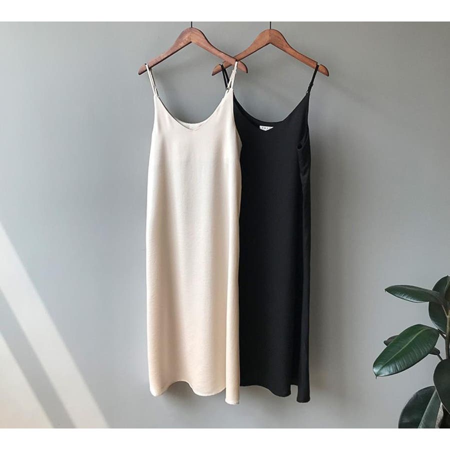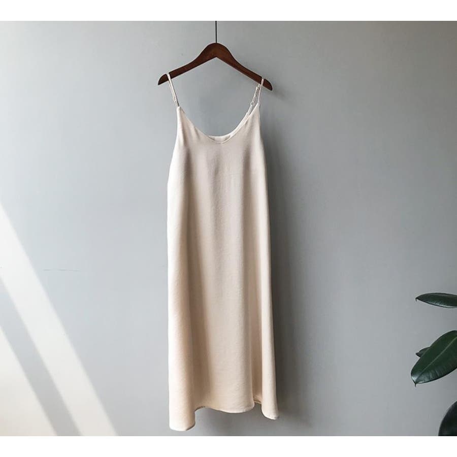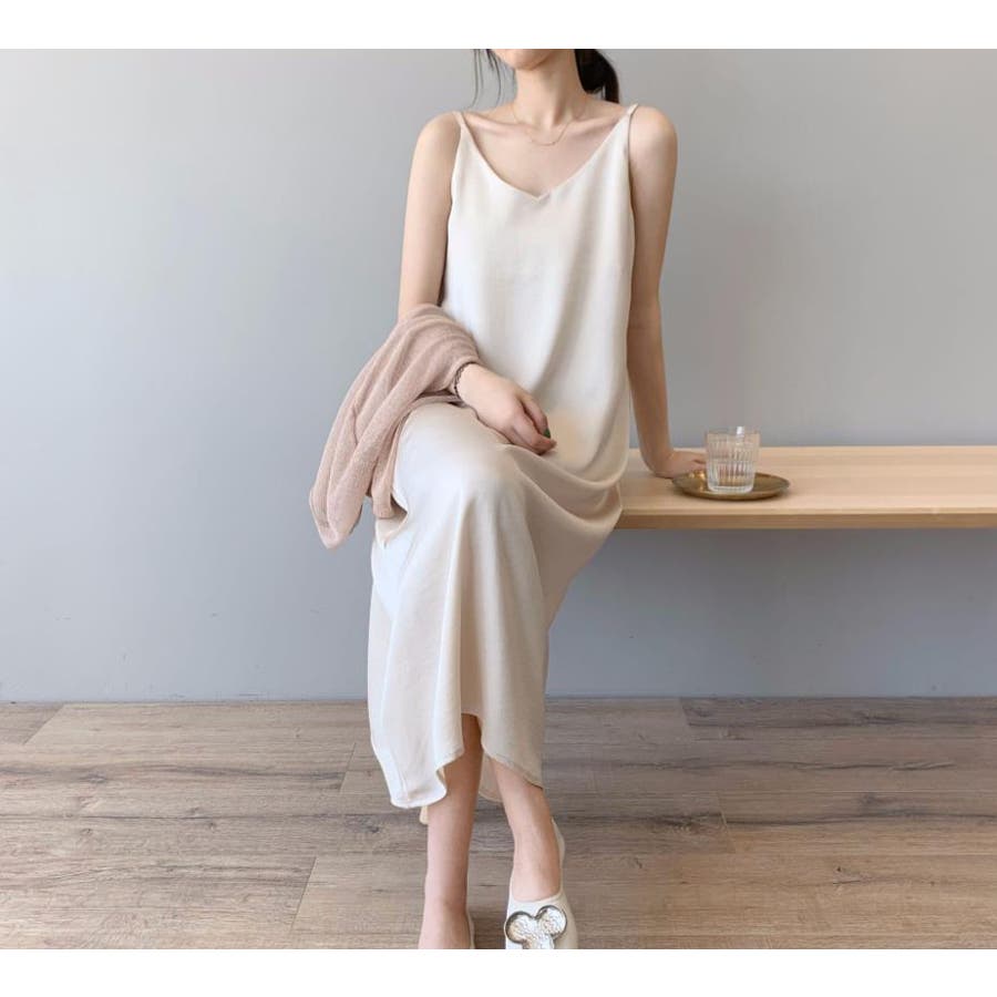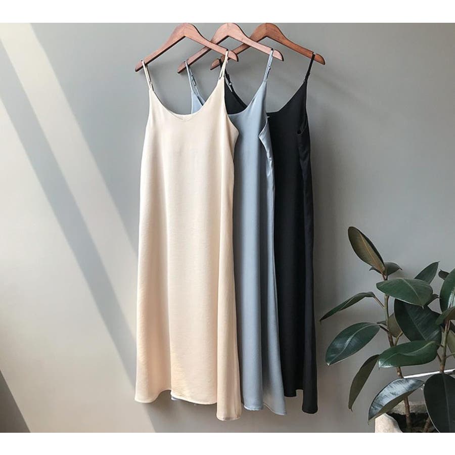サテンフレアキャミソールワンピース【韓国ファッション】