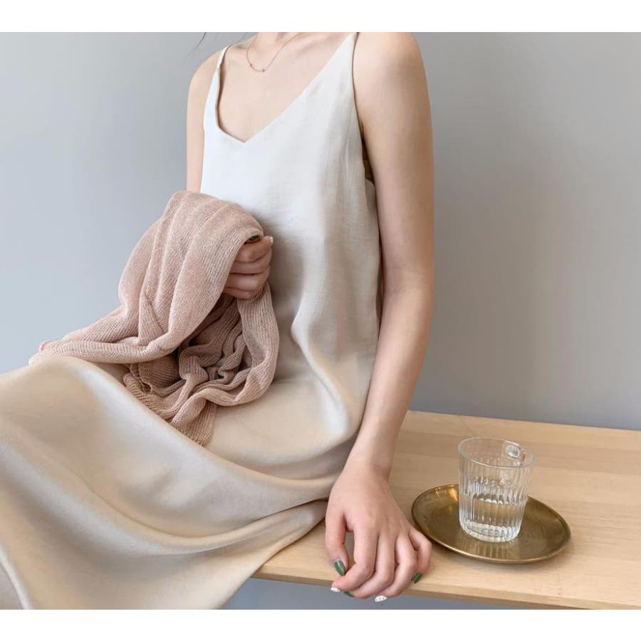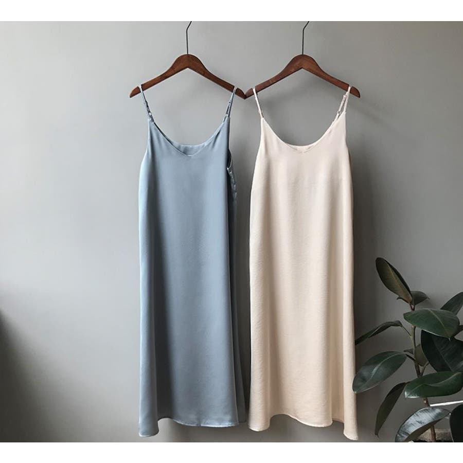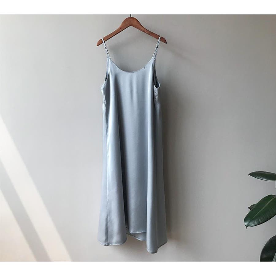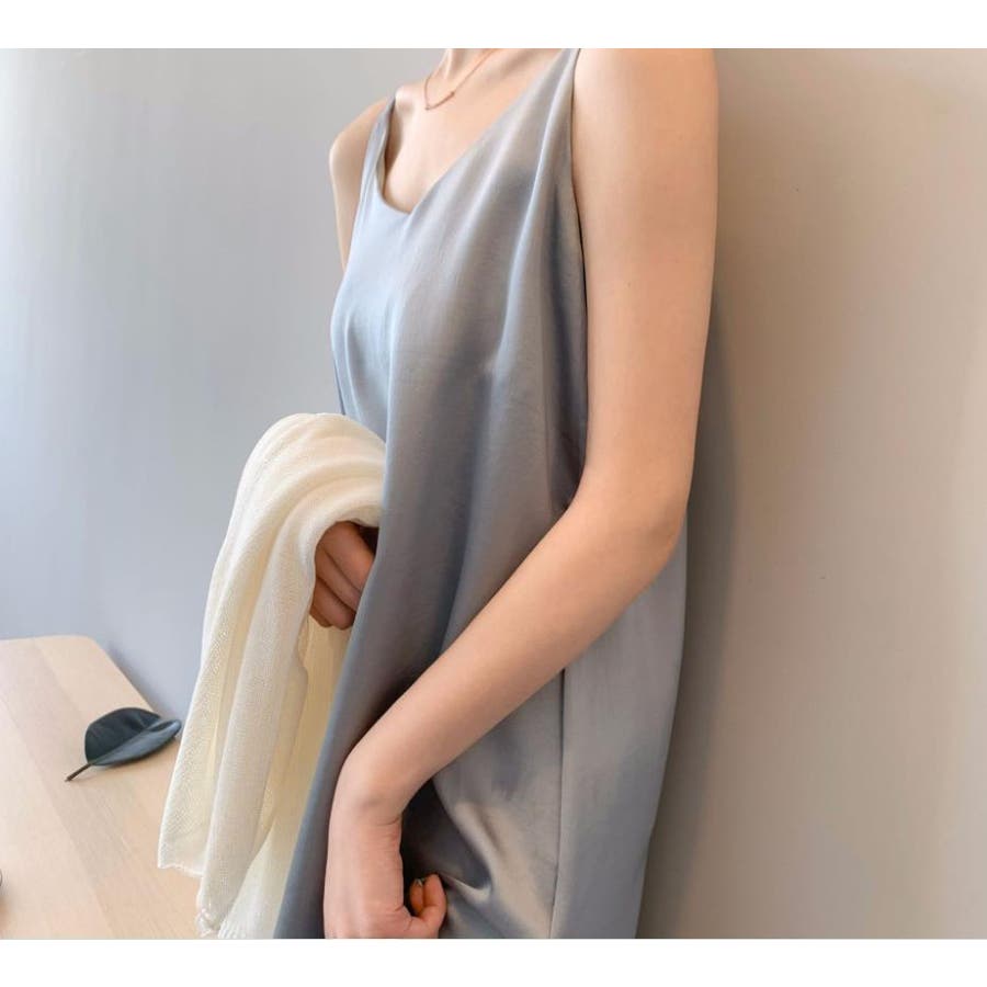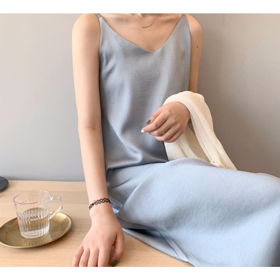 サテンフレアキャミソールワンピース【韓国ファッション】