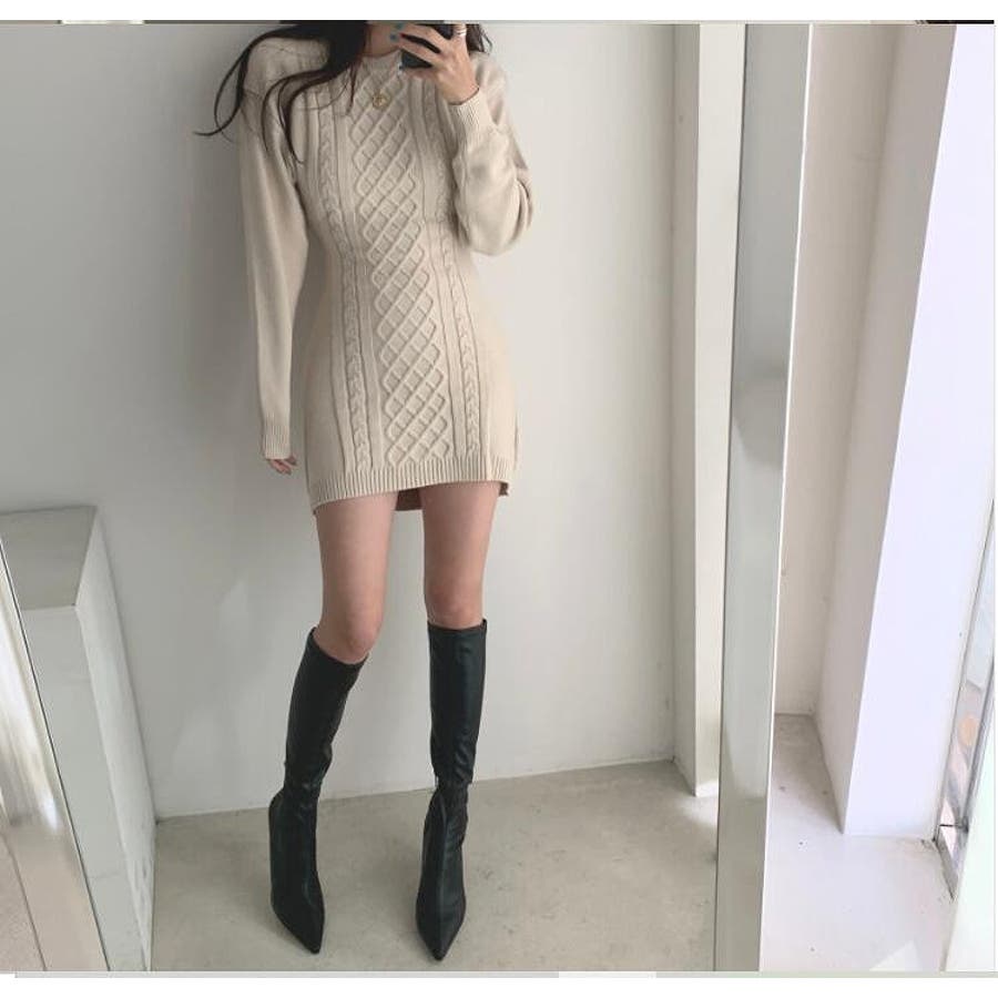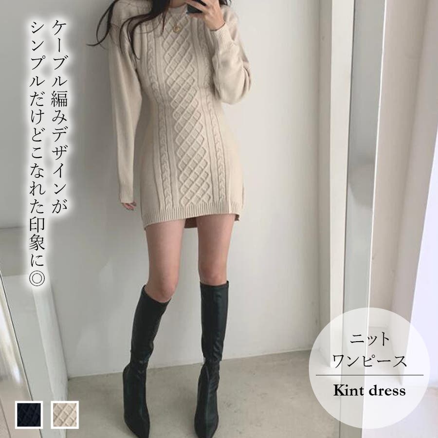 ケーブル編みのワンピースはシンプルだけどこなれた印象に◎