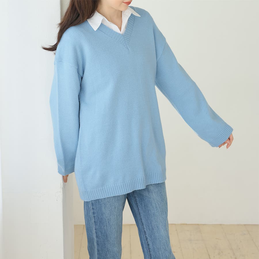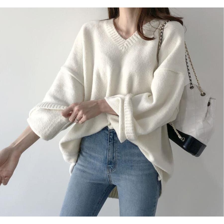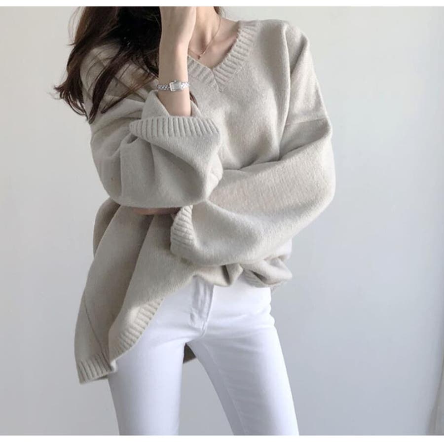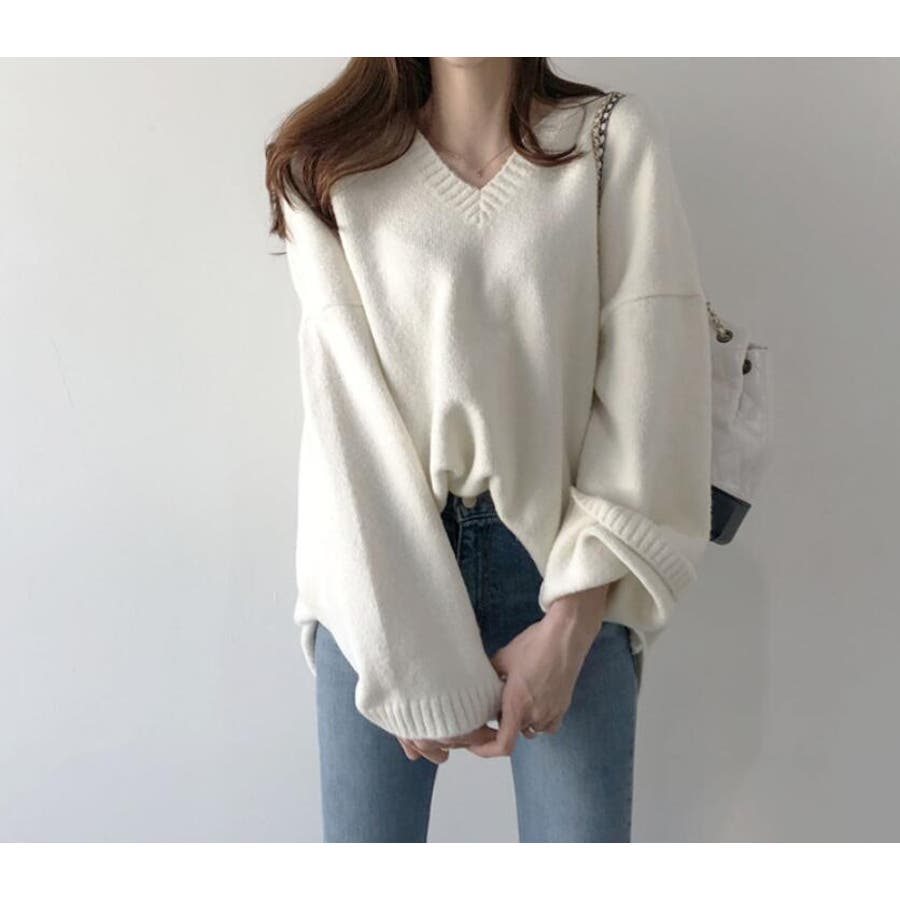 オーバーサイズVネックニット・セーター【韓国ファッション】