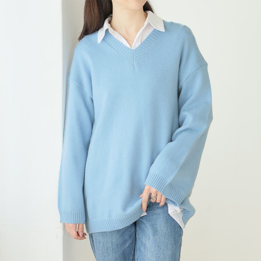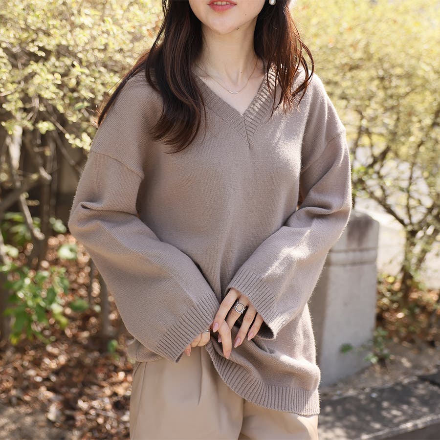 Vネック開きでオーバーサイズの抜け感のあるシルエット。
