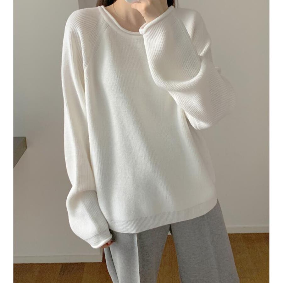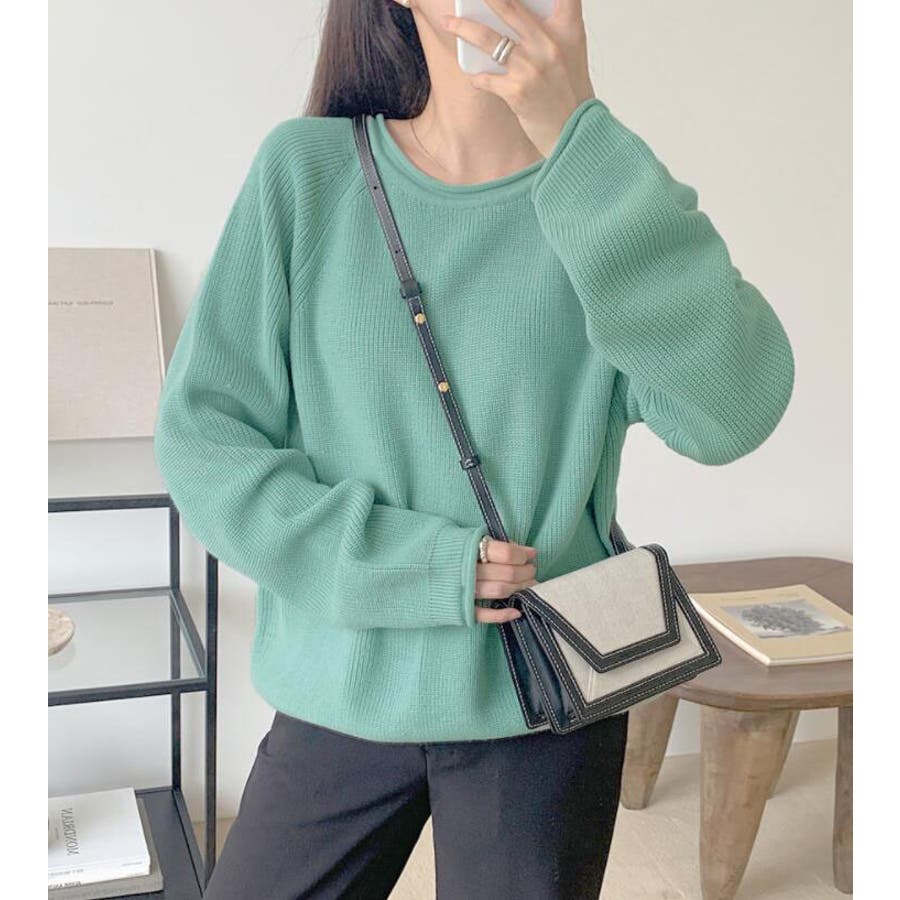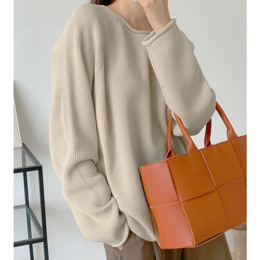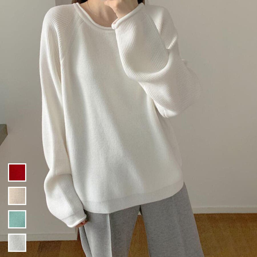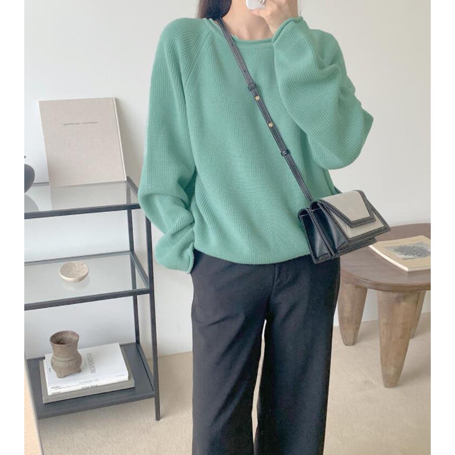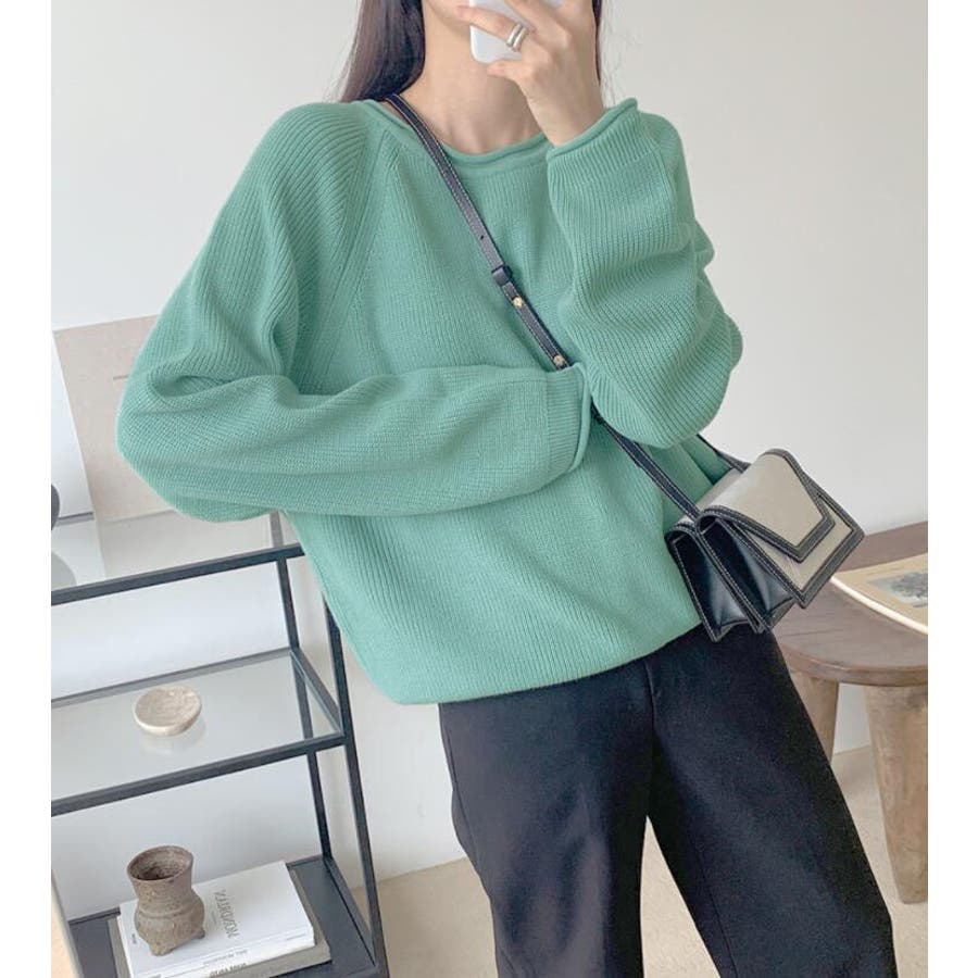 ゆるっとしたシルエットと鮮やかなカラーがポイントのニット