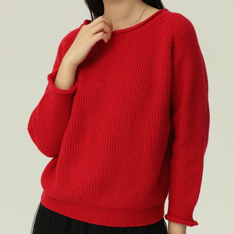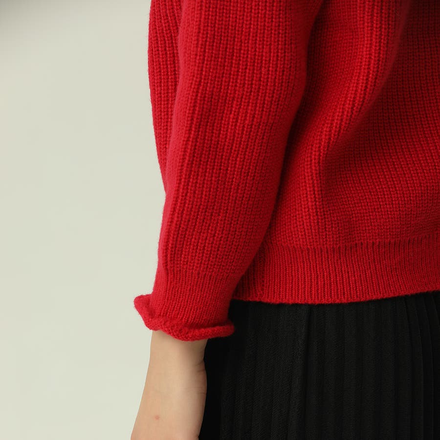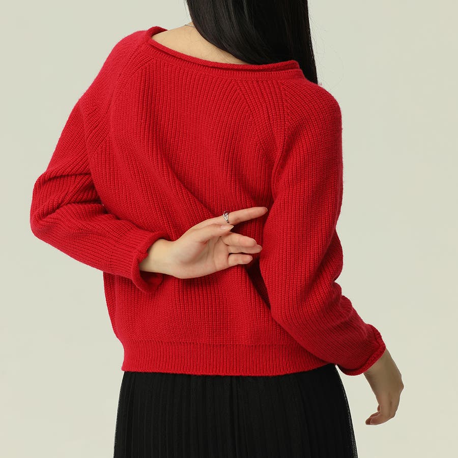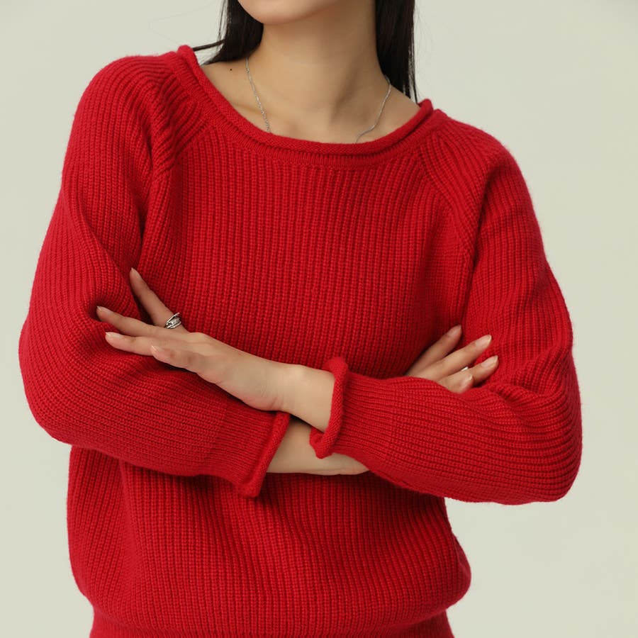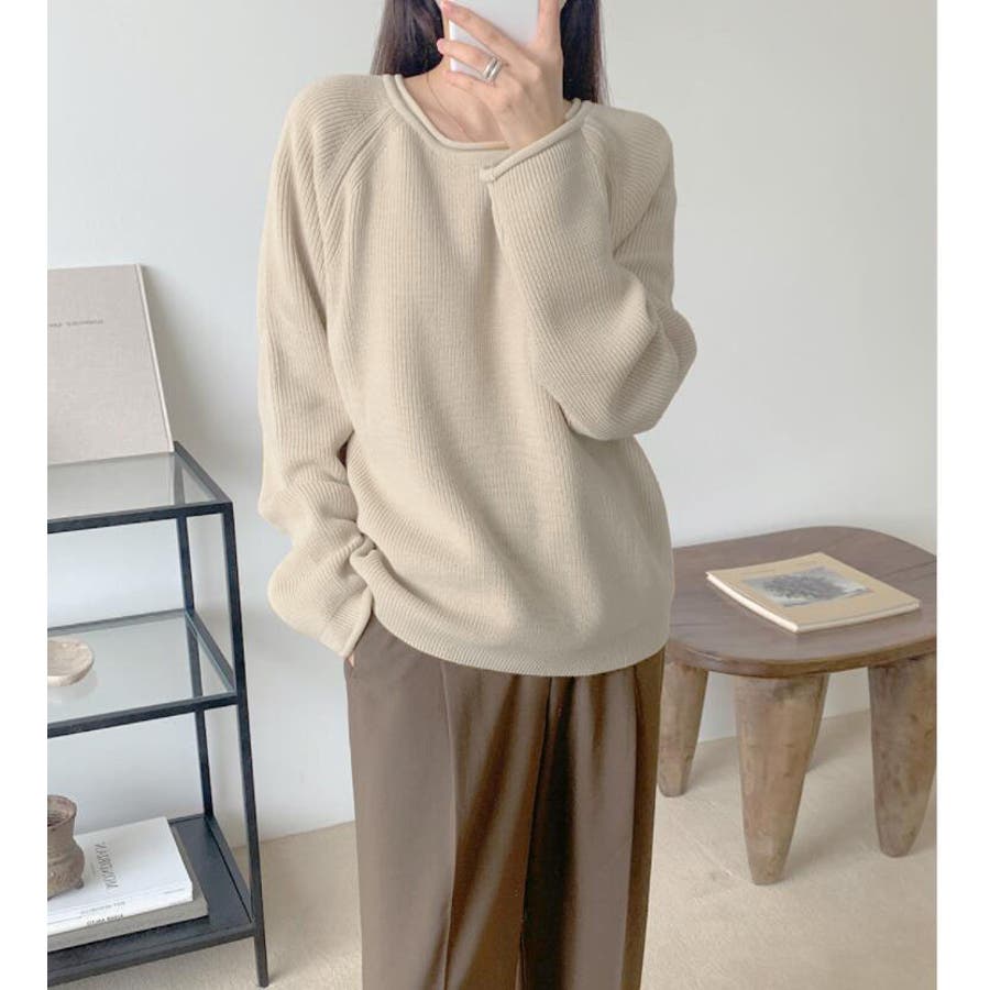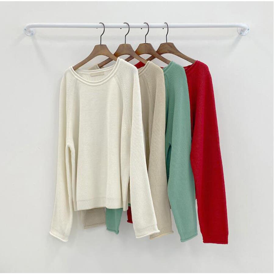 ゆるっとしたシルエットと鮮やかなカラーがポイントのニット