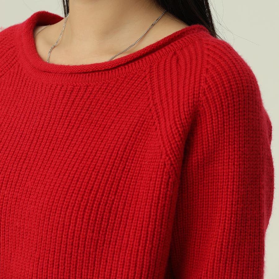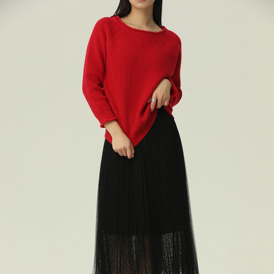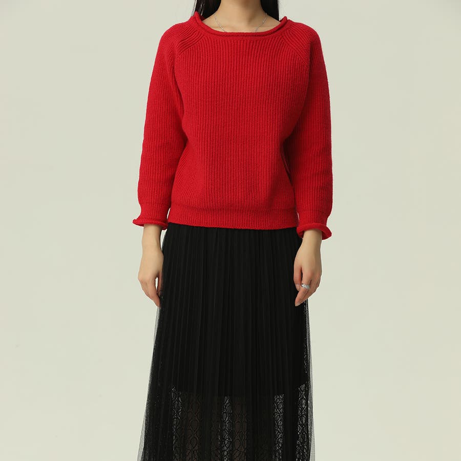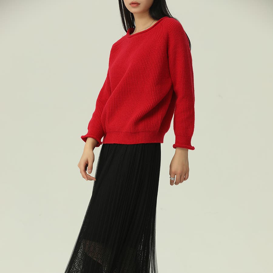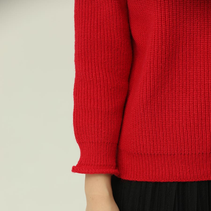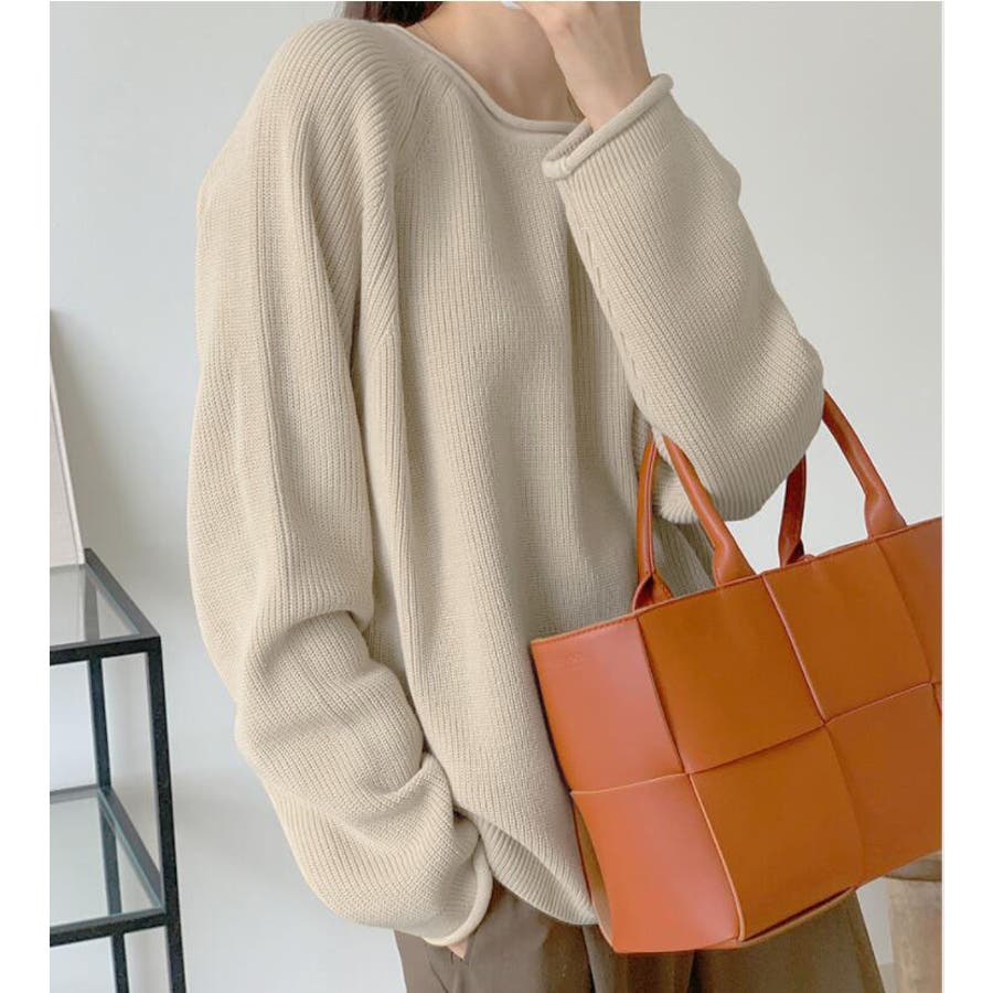 ゆるっとしたシルエットと鮮やかなカラーがポイントのニット