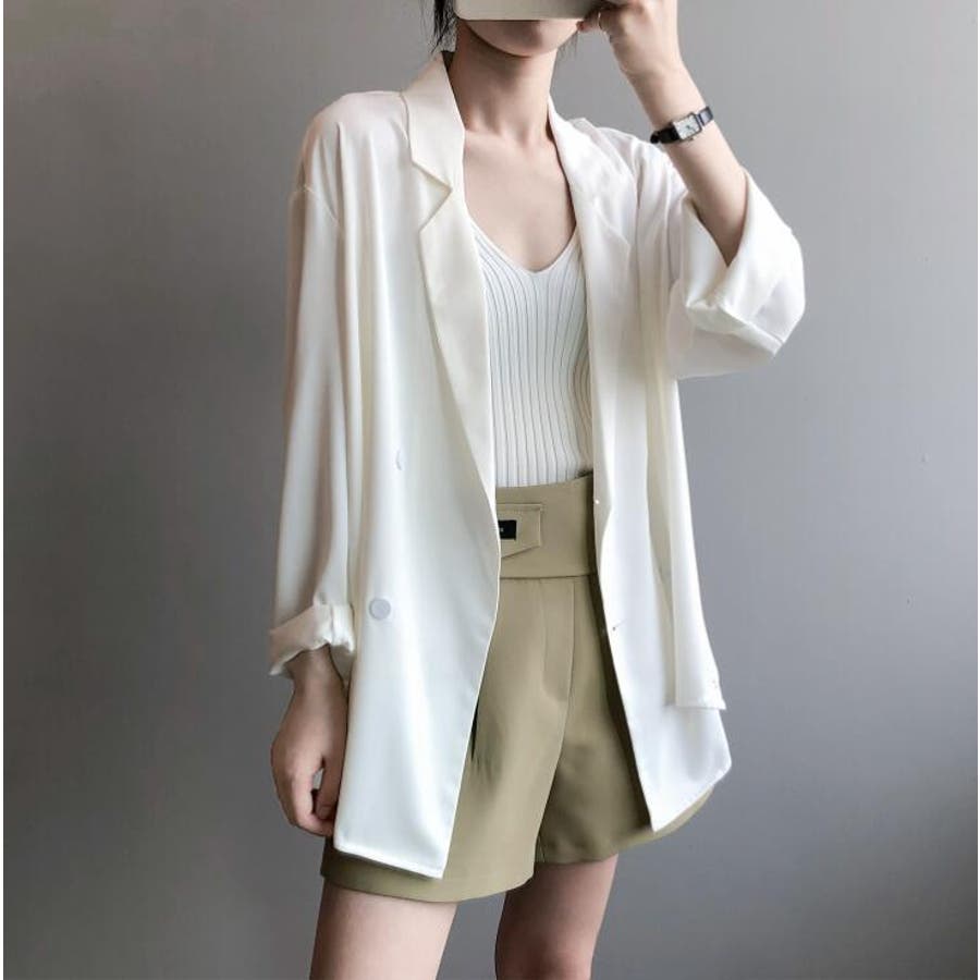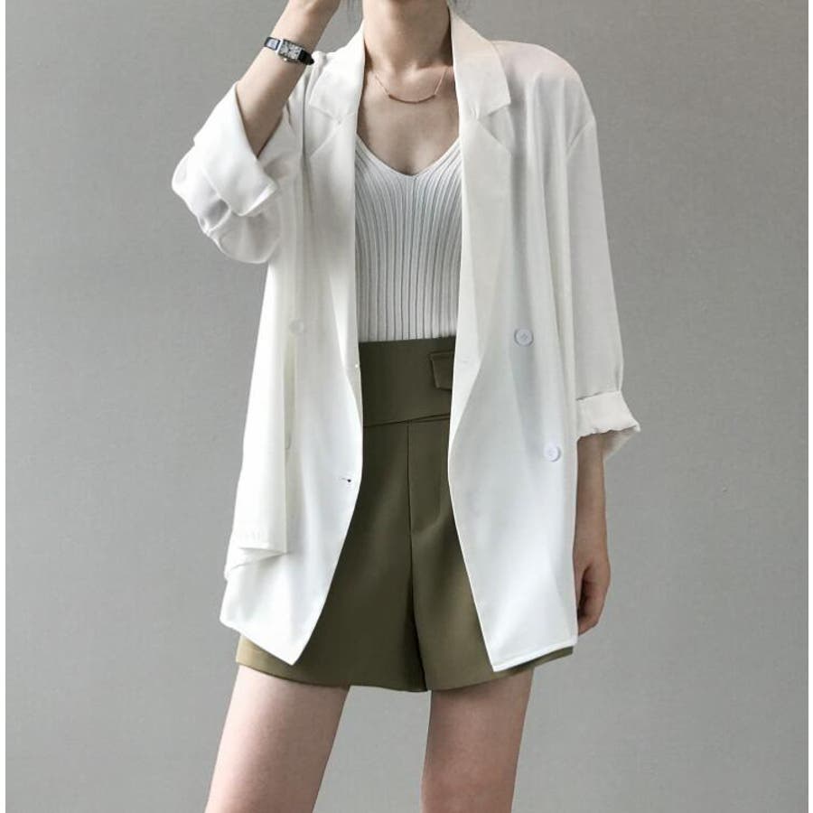 落ち感のある生地を使用し、羽織るだけで爽やかな印象に。