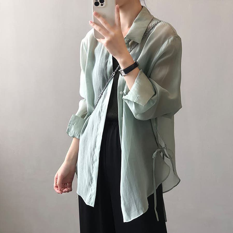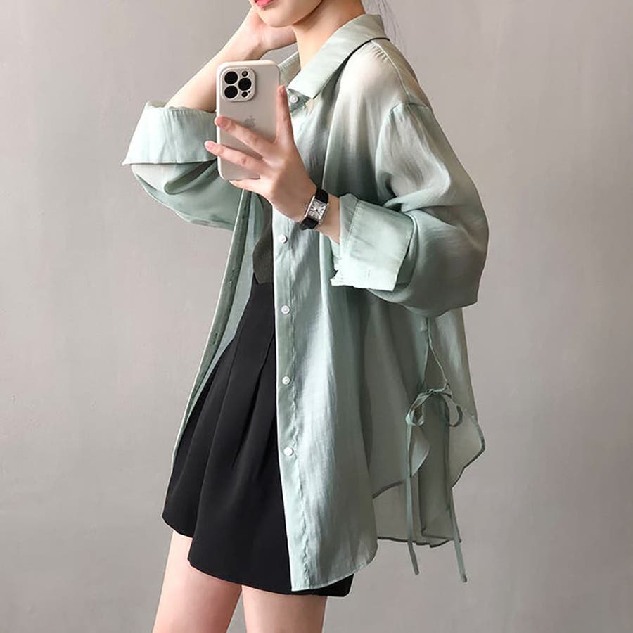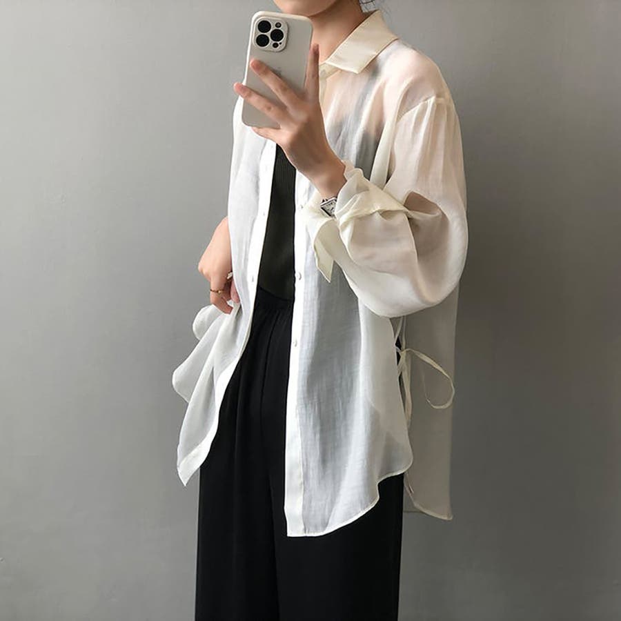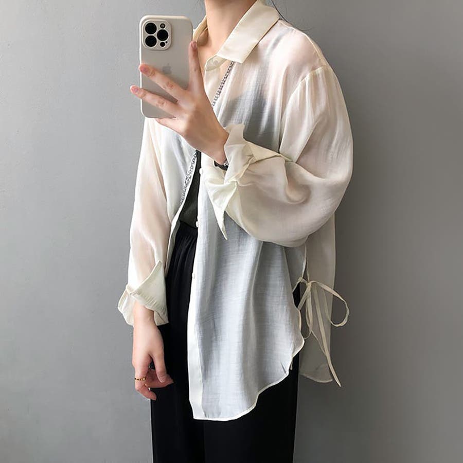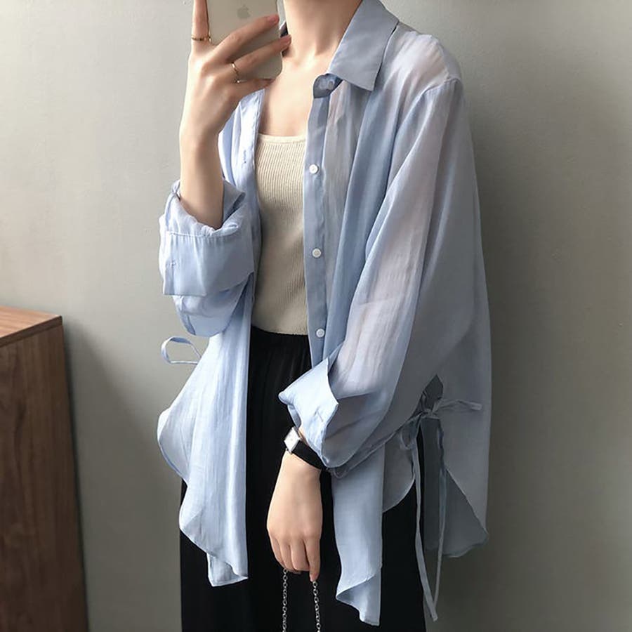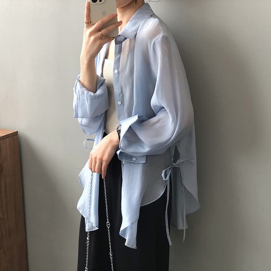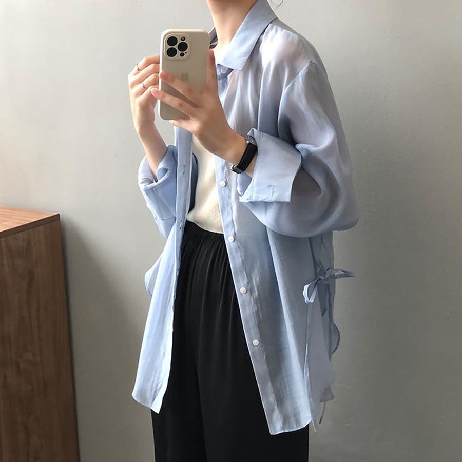 サイドリボンオーバーサイズシアーシャツ【韓国ファッション】