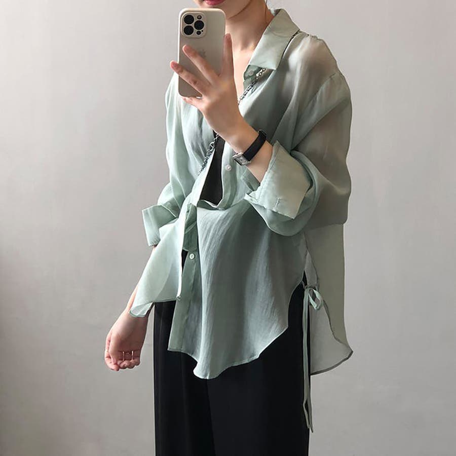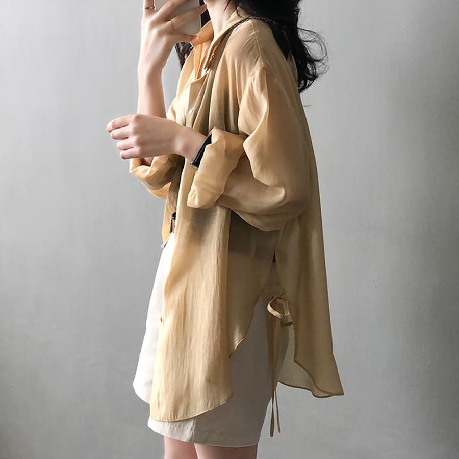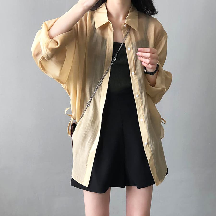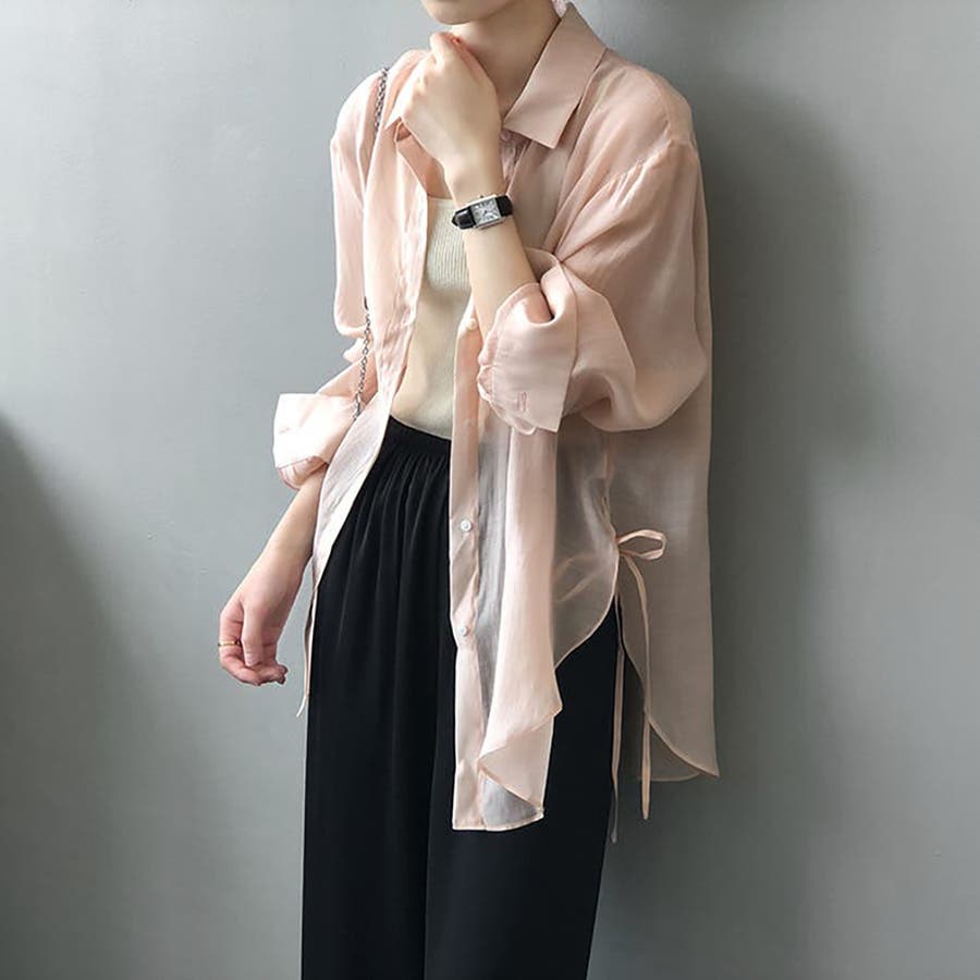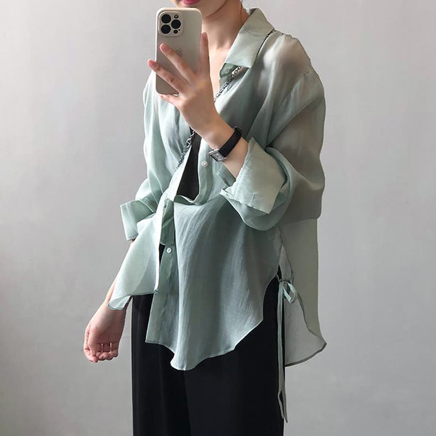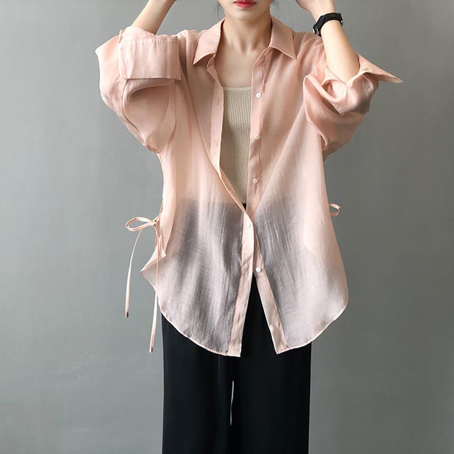 サイドリボンオーバーサイズシアーシャツ【韓国ファッション】