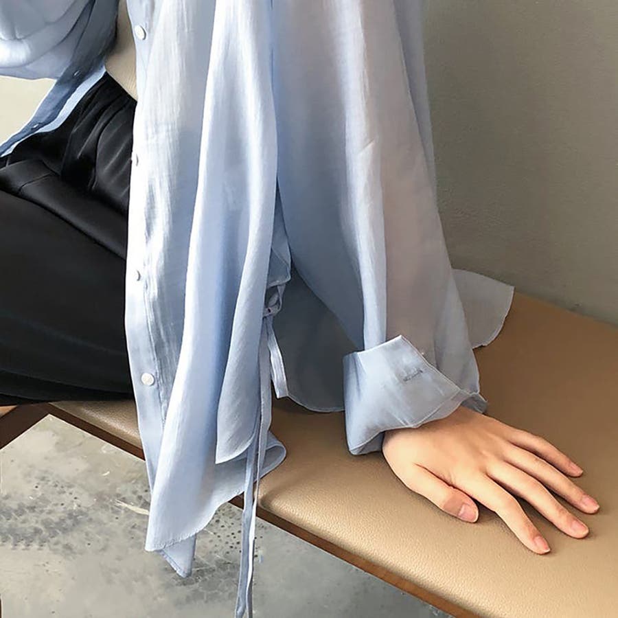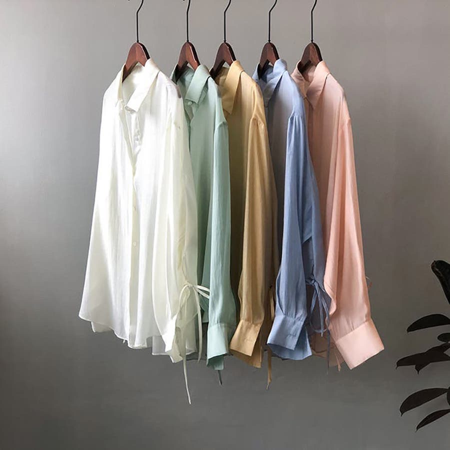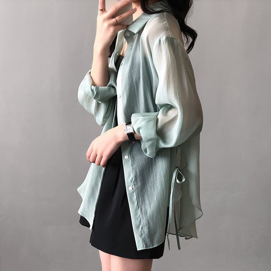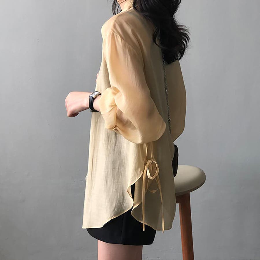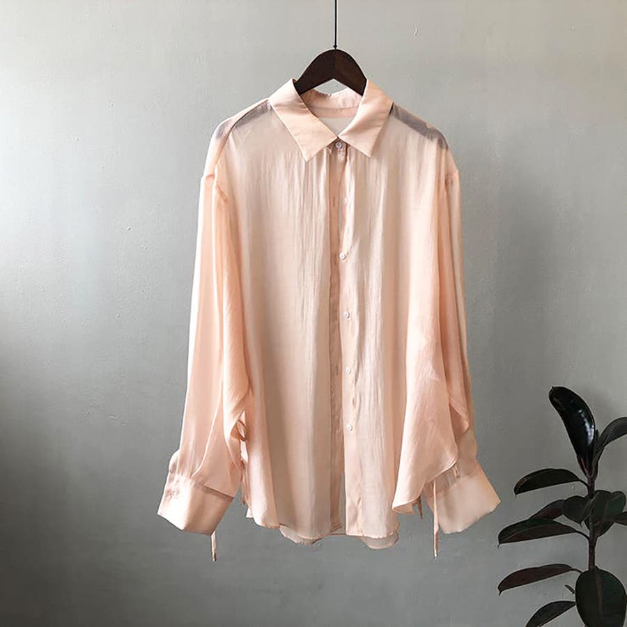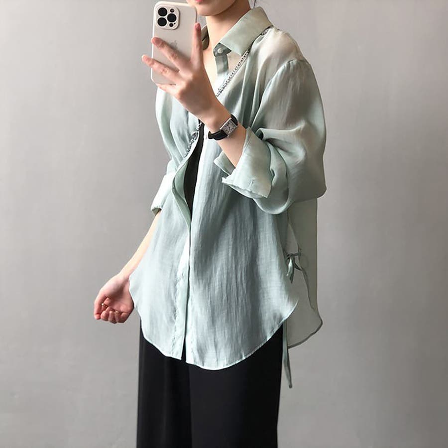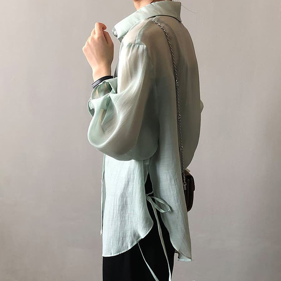 サイドリボンオーバーサイズシアーシャツ【韓国ファッション】