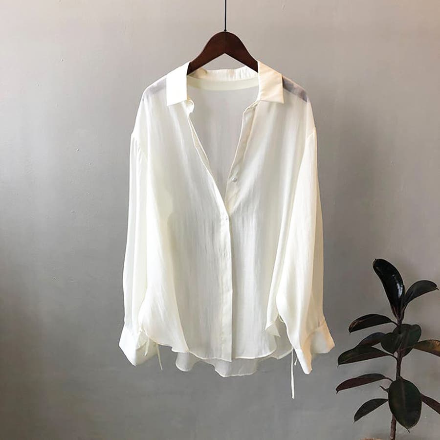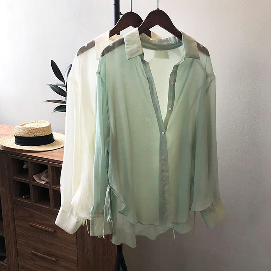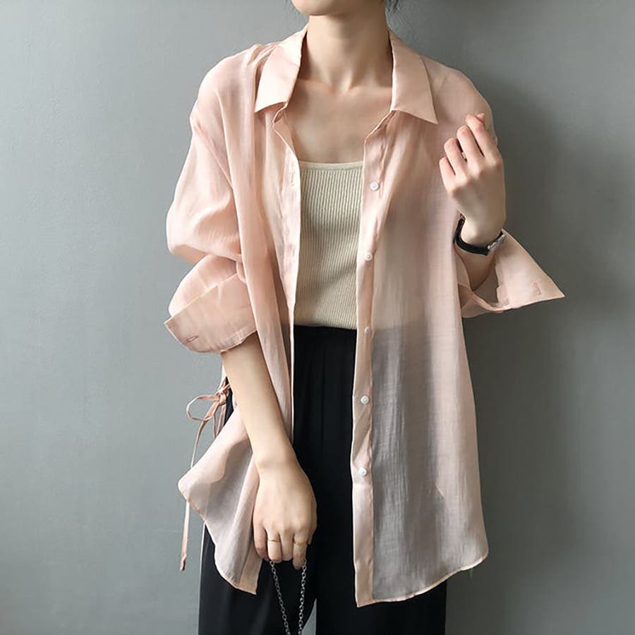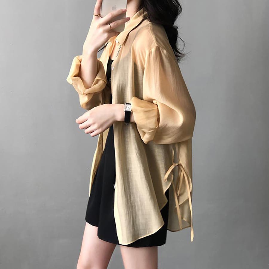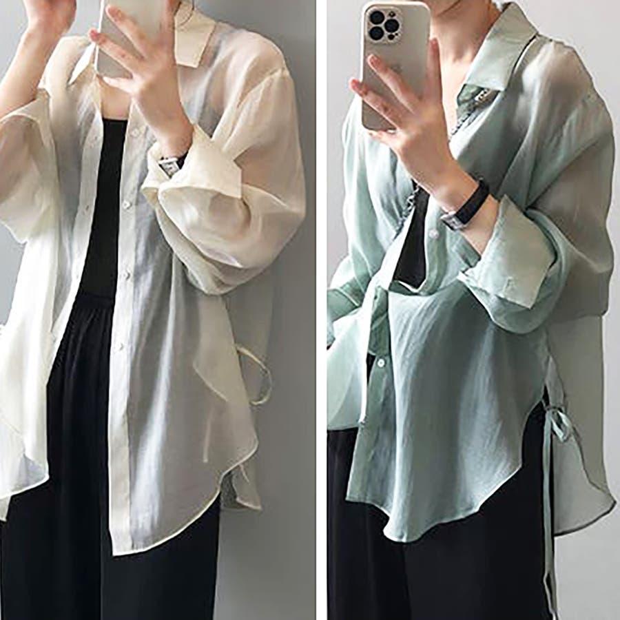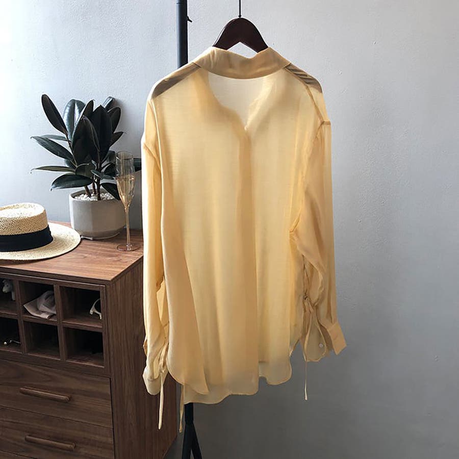 サイドリボンオーバーサイズシアーシャツ【韓国ファッション】
