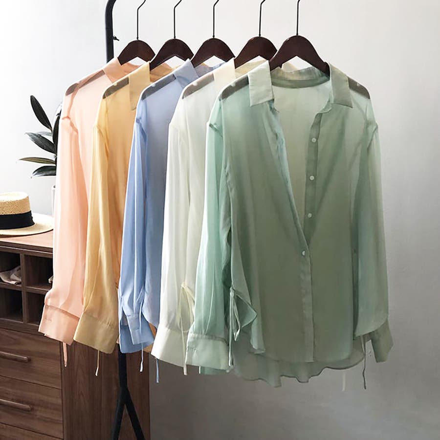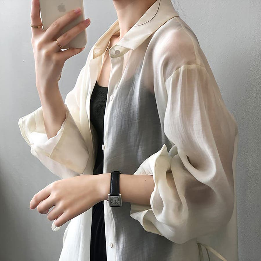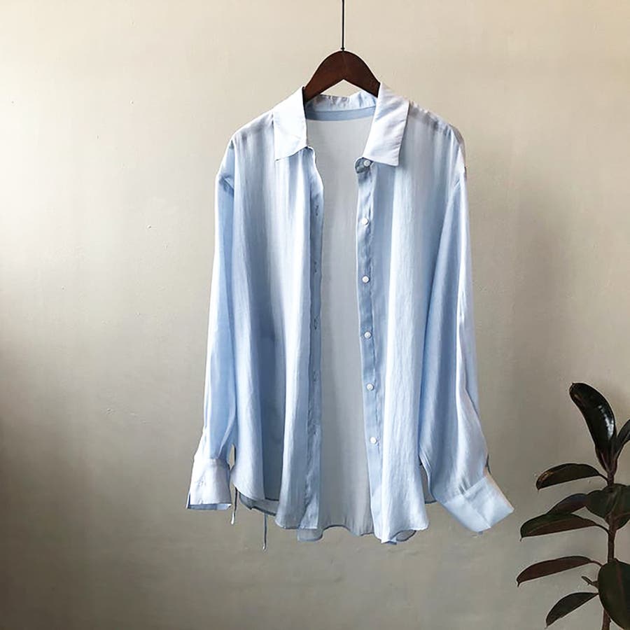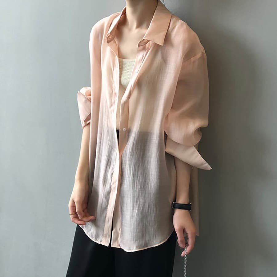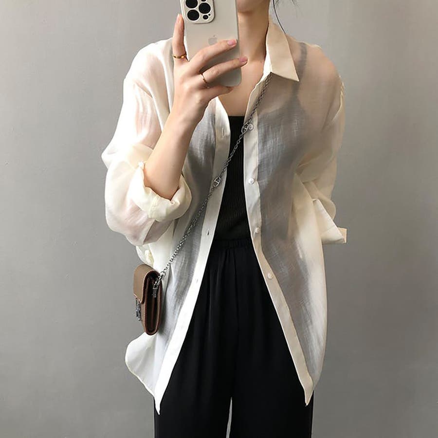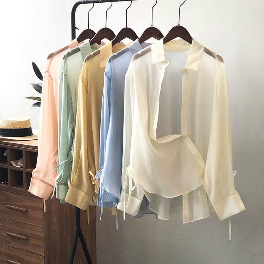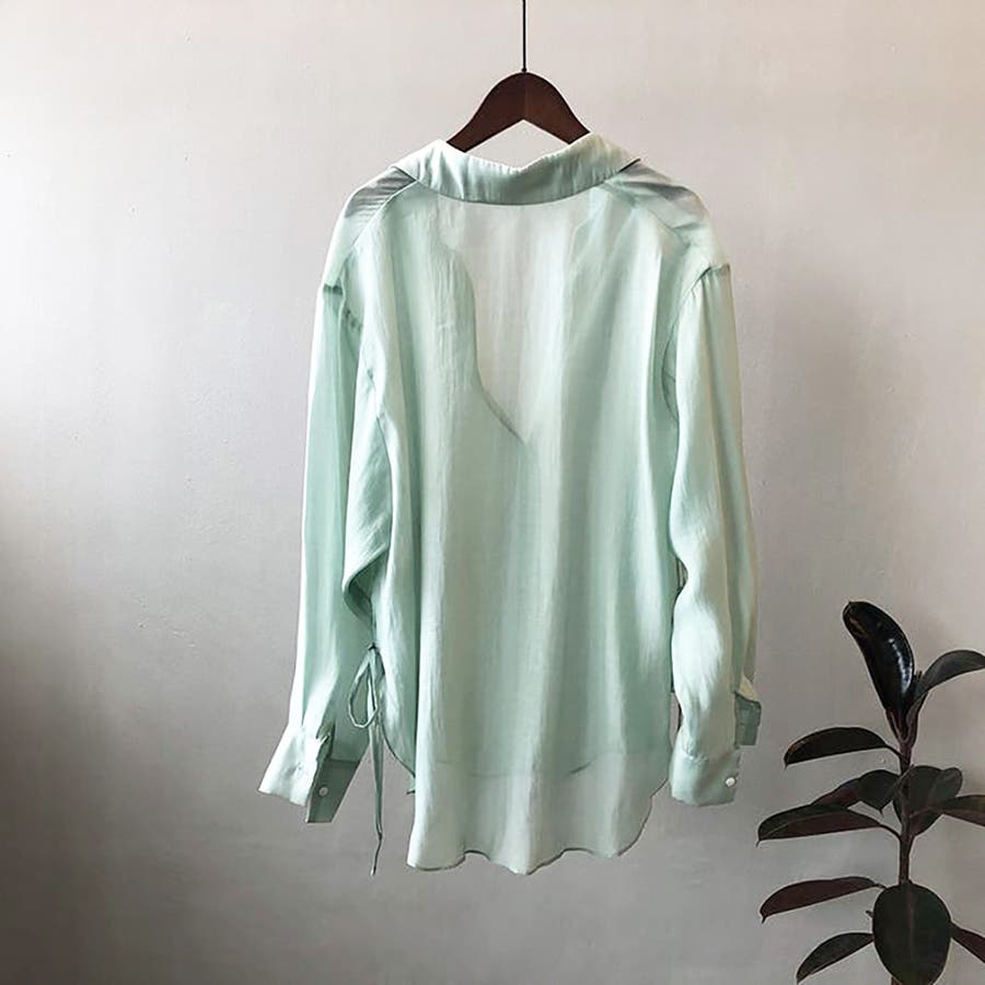 サイドリボンオーバーサイズシアーシャツ【韓国ファッション】