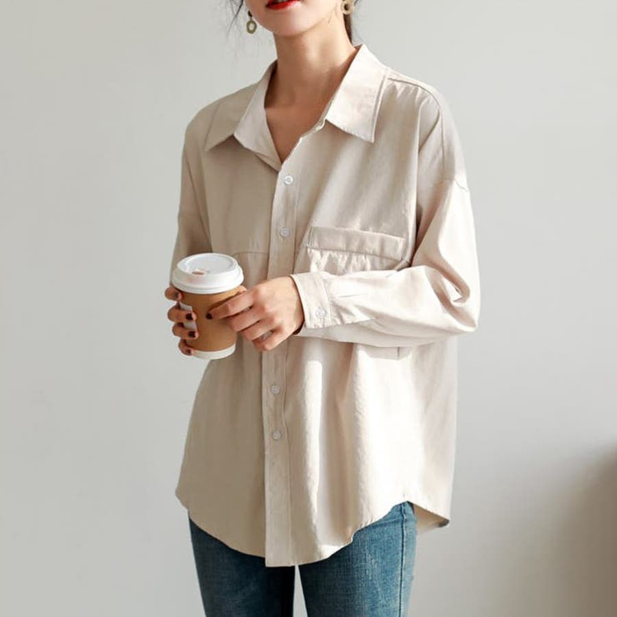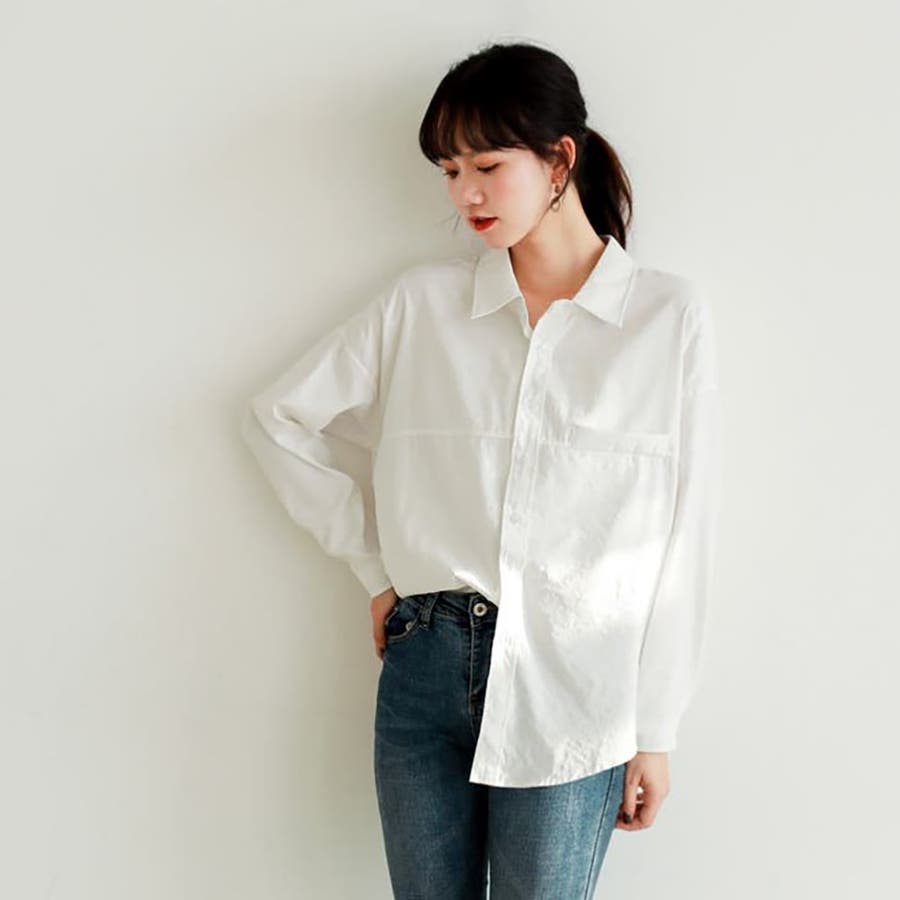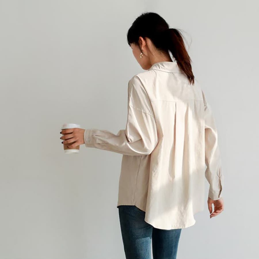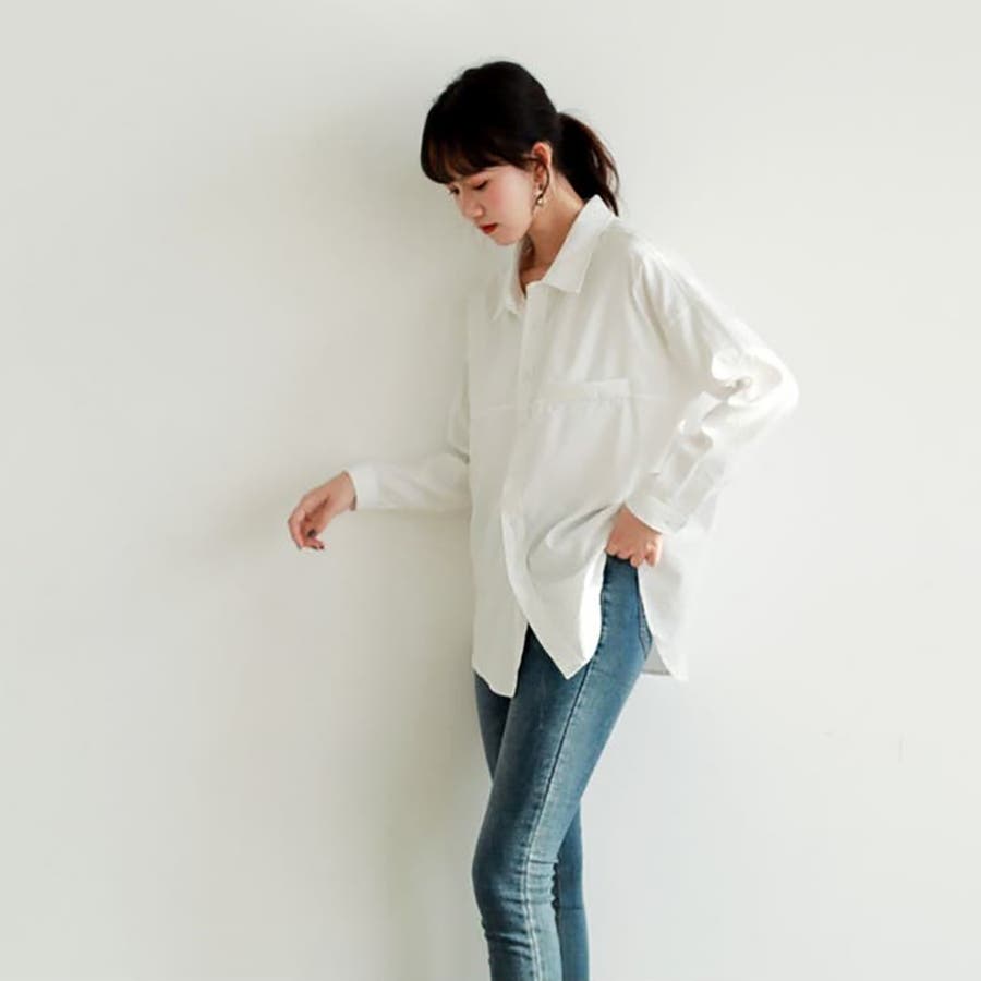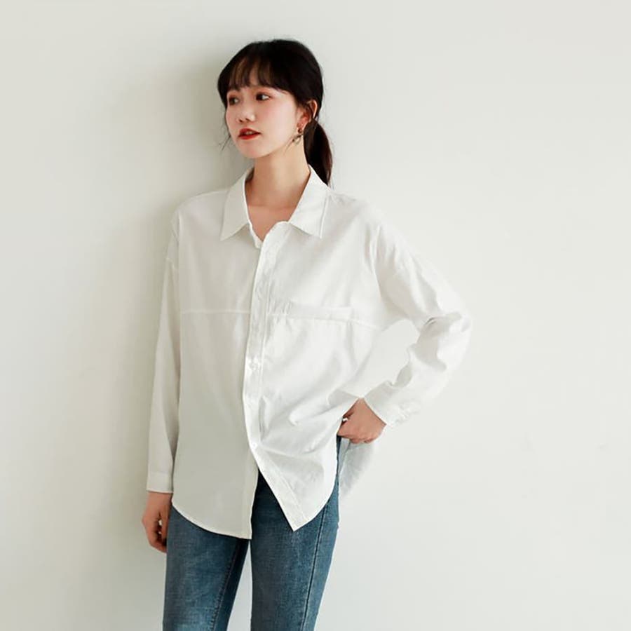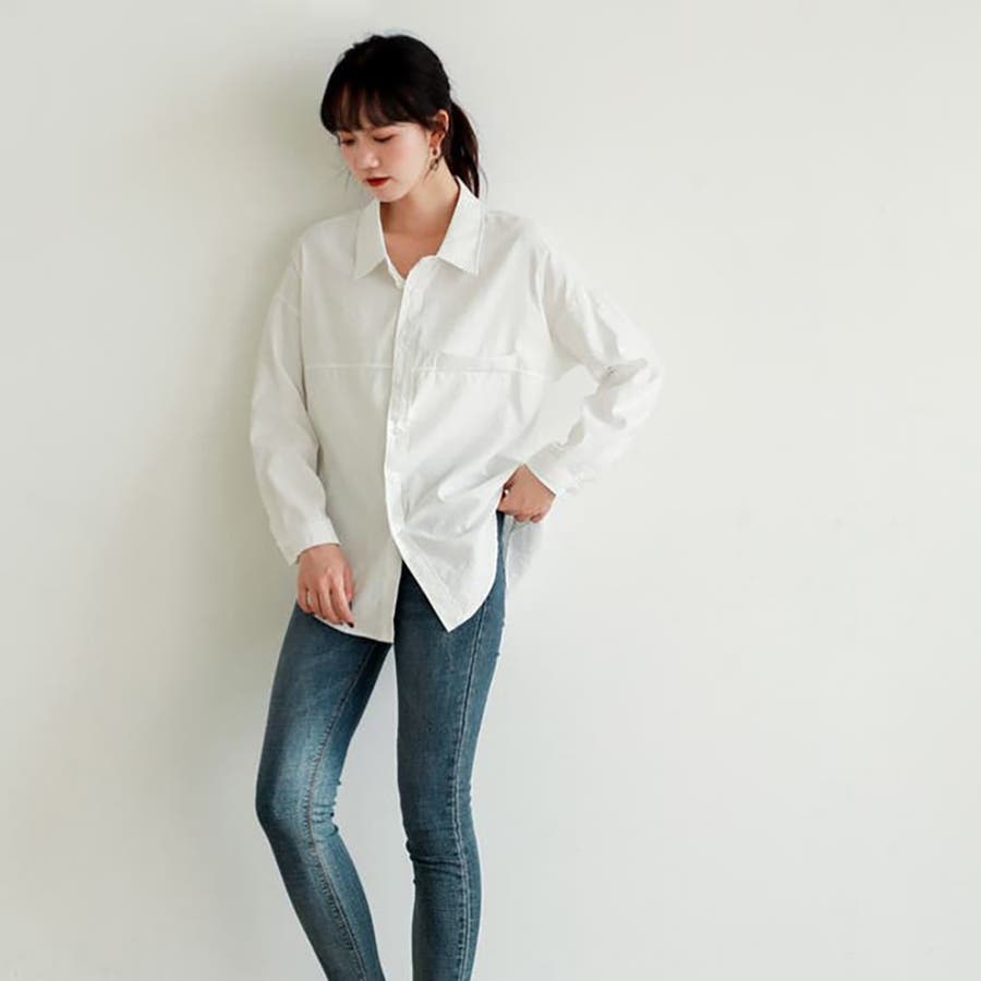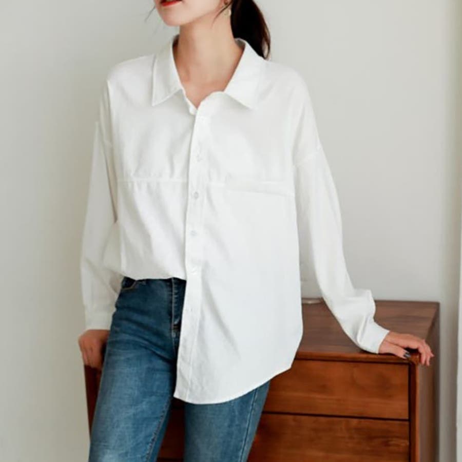 切り替えデザインドロップショルダーカジュアルシャツ【韓国ファッション】