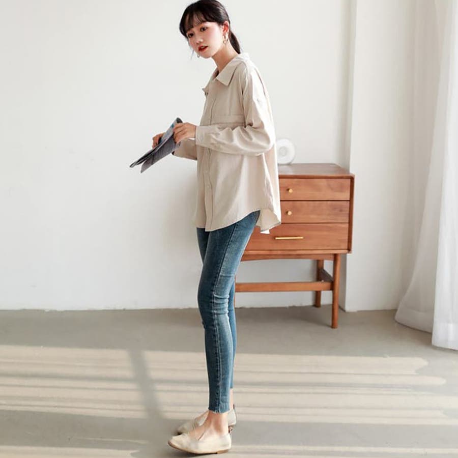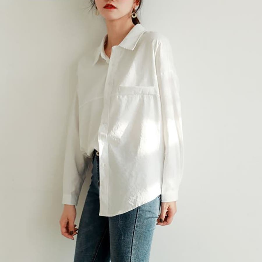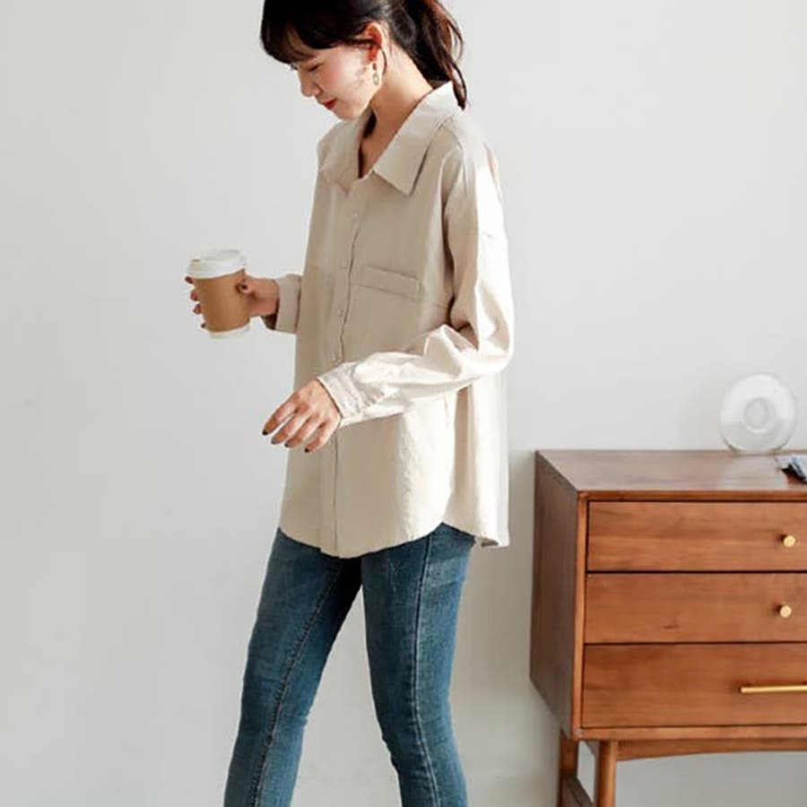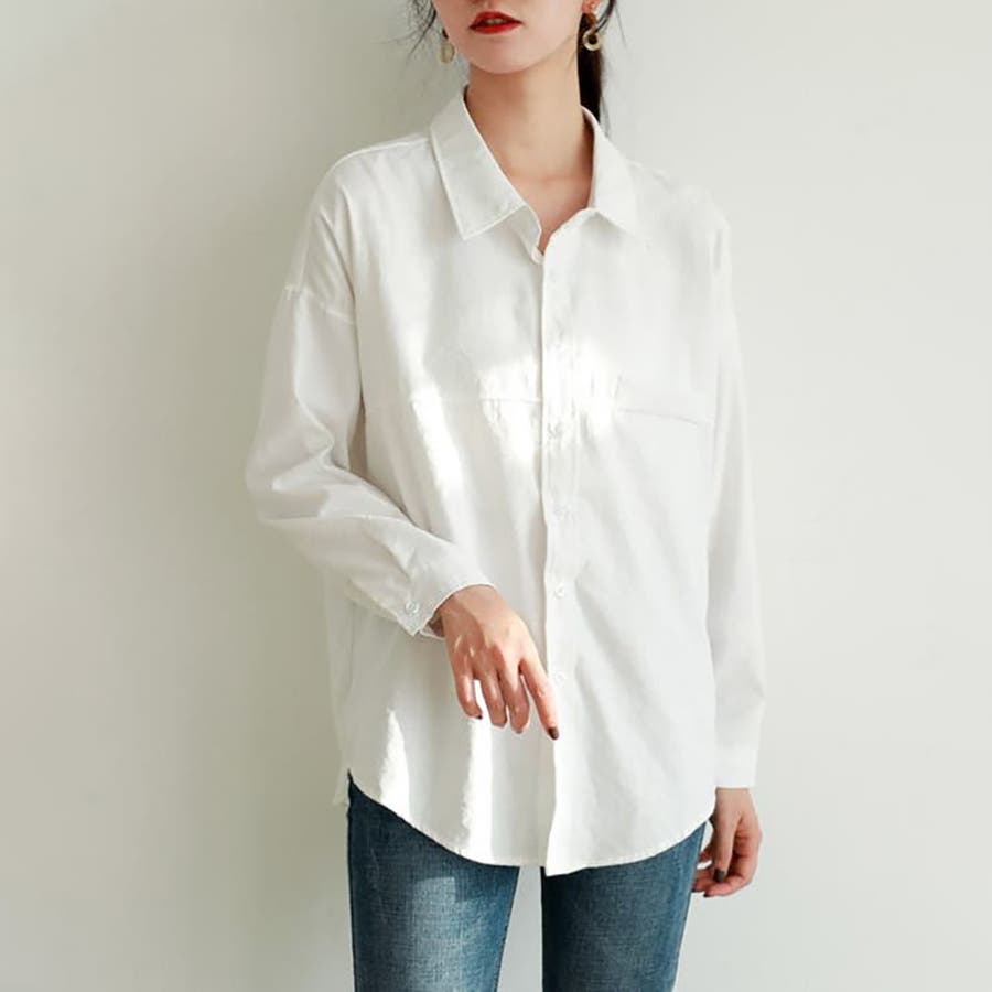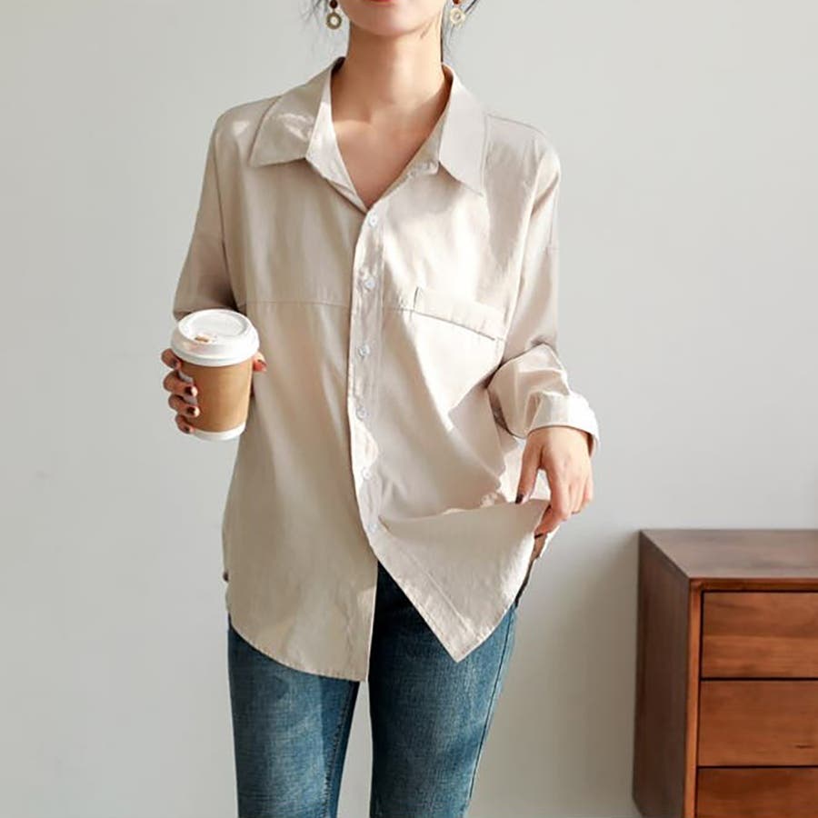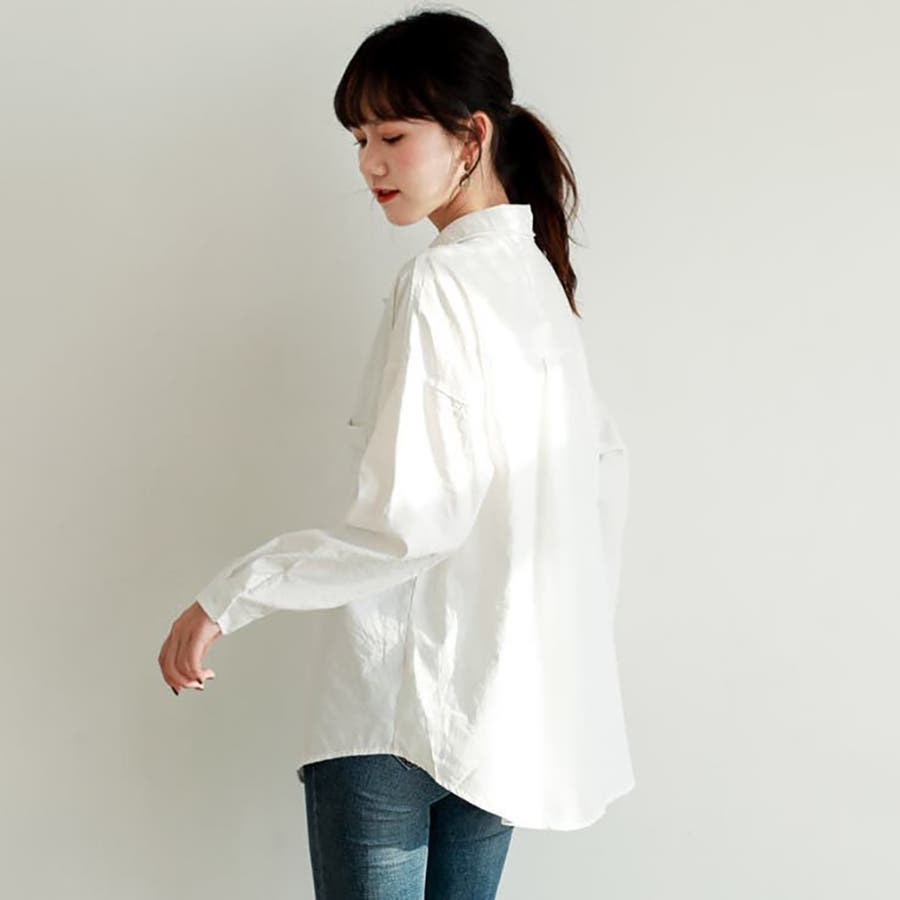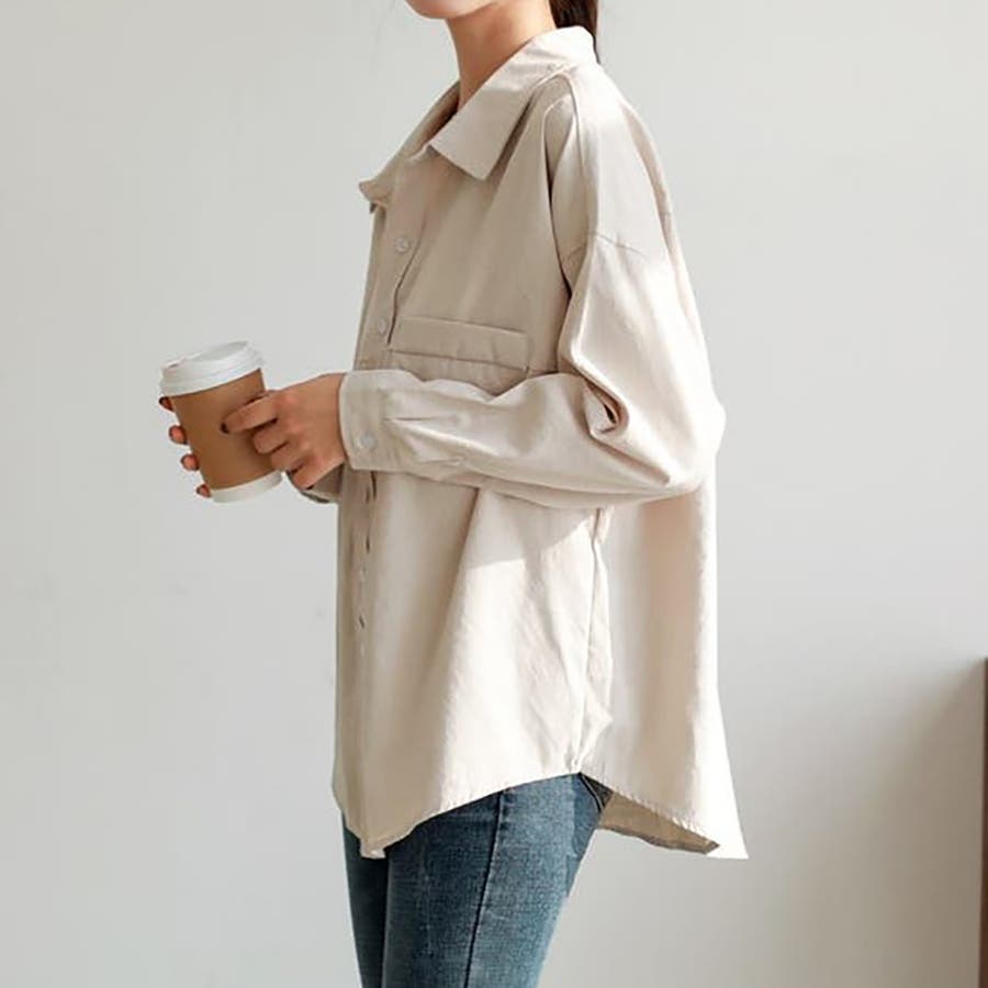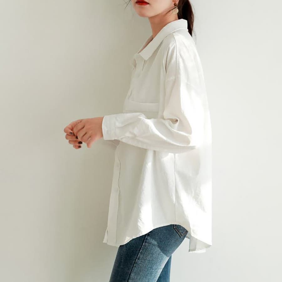 切り替えデザインドロップショルダーカジュアルシャツ【韓国ファッション】