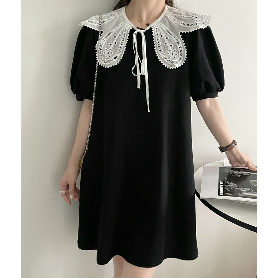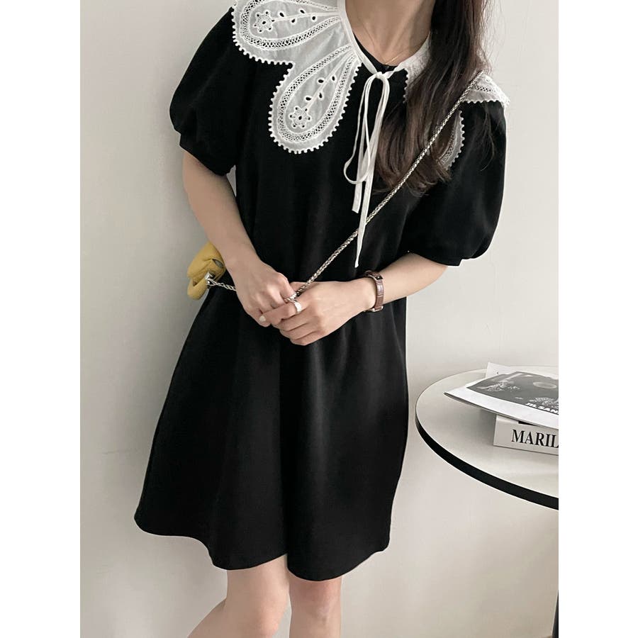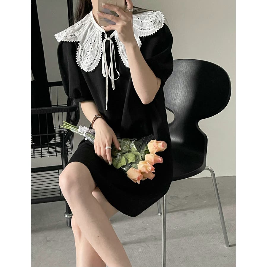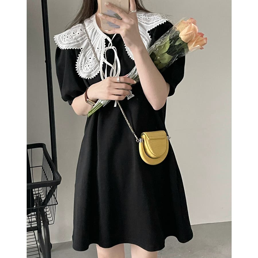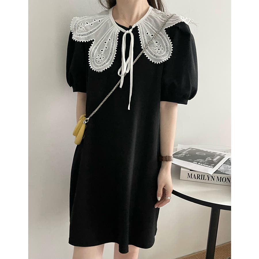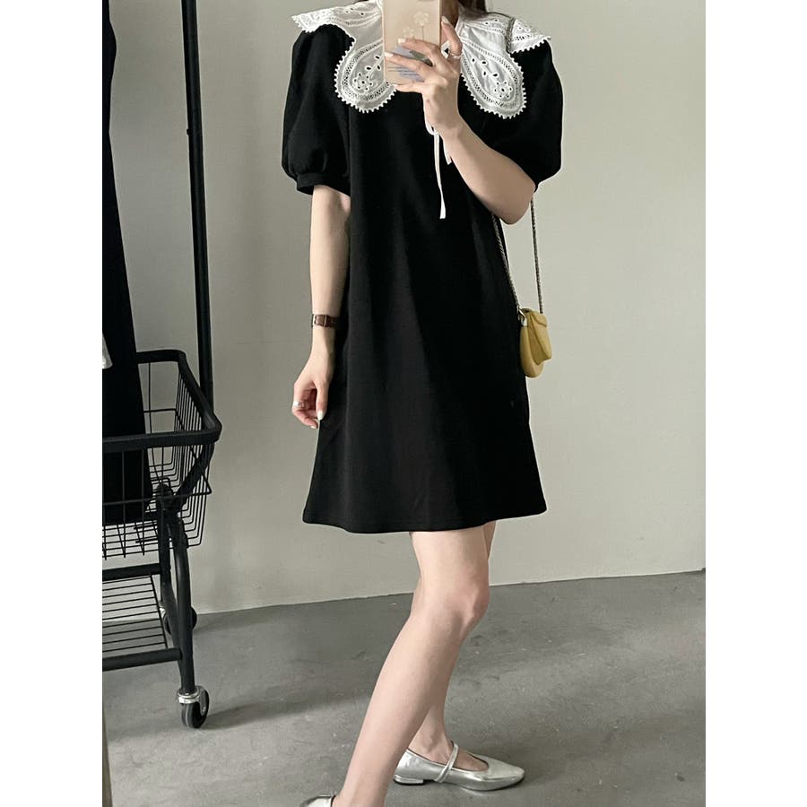 付け衿パフスリーブカットフレアワンピース【韓国ファッション】