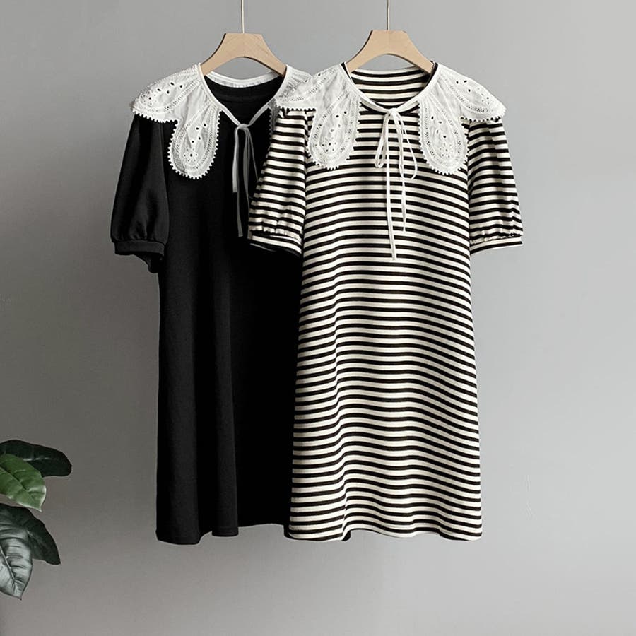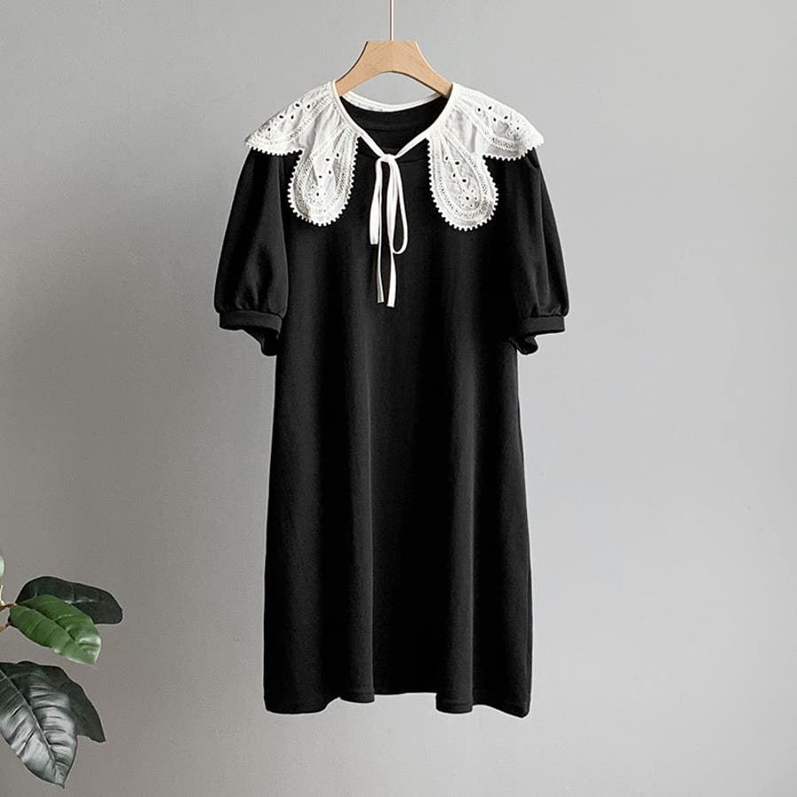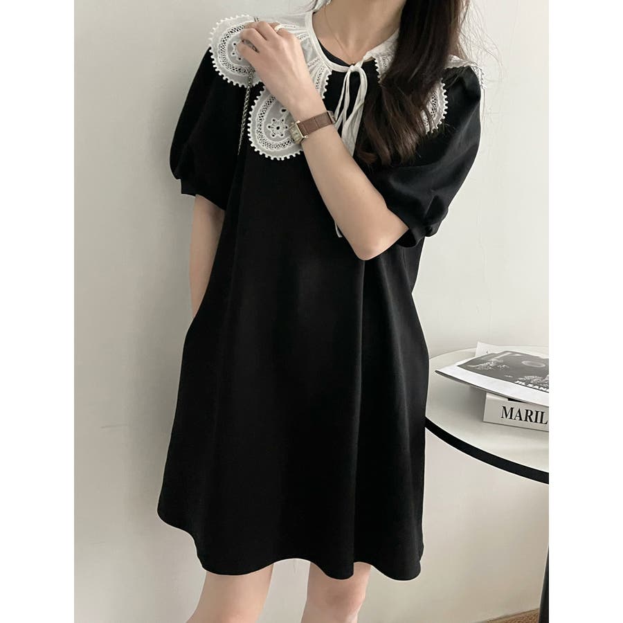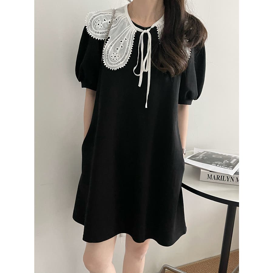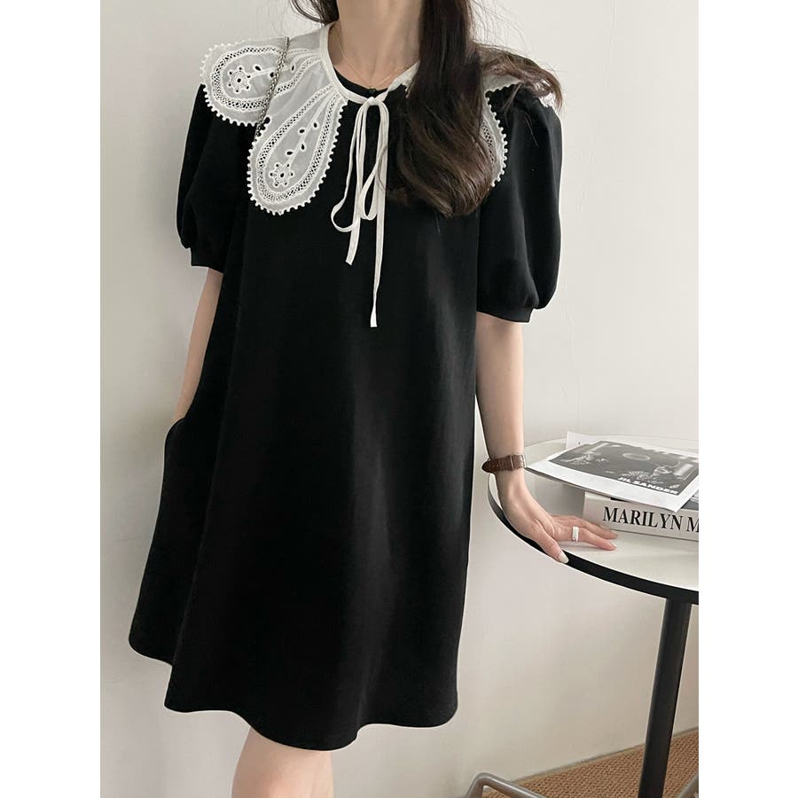 付け衿パフスリーブカットフレアワンピース【韓国ファッション】