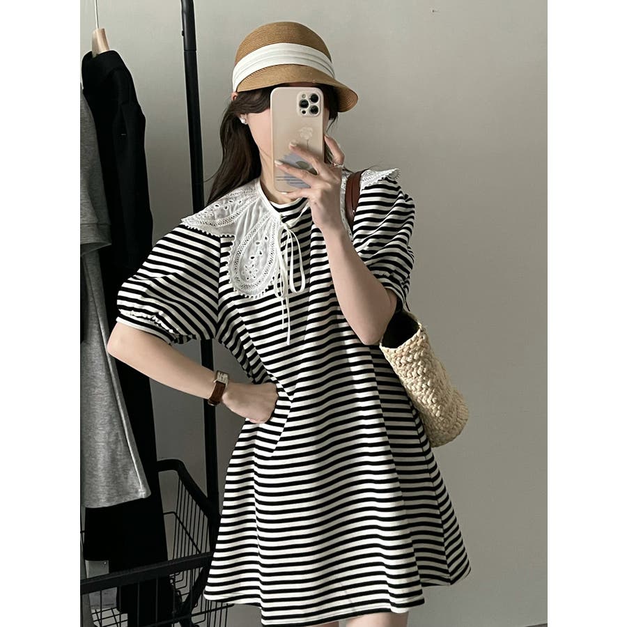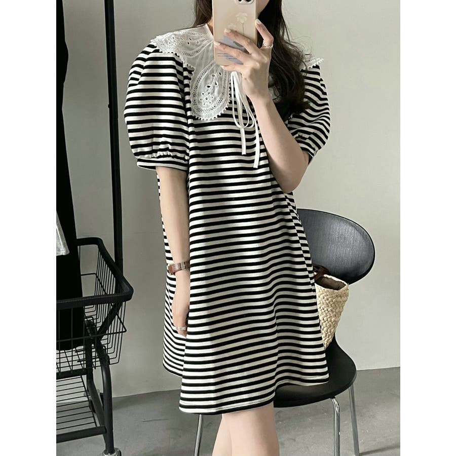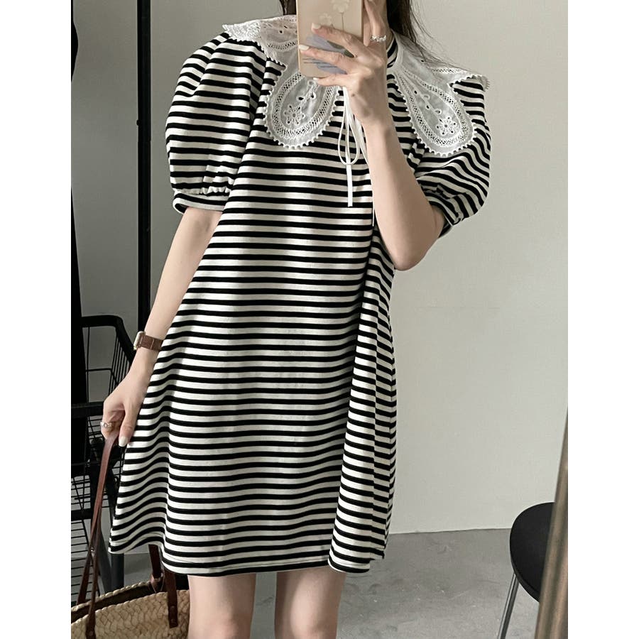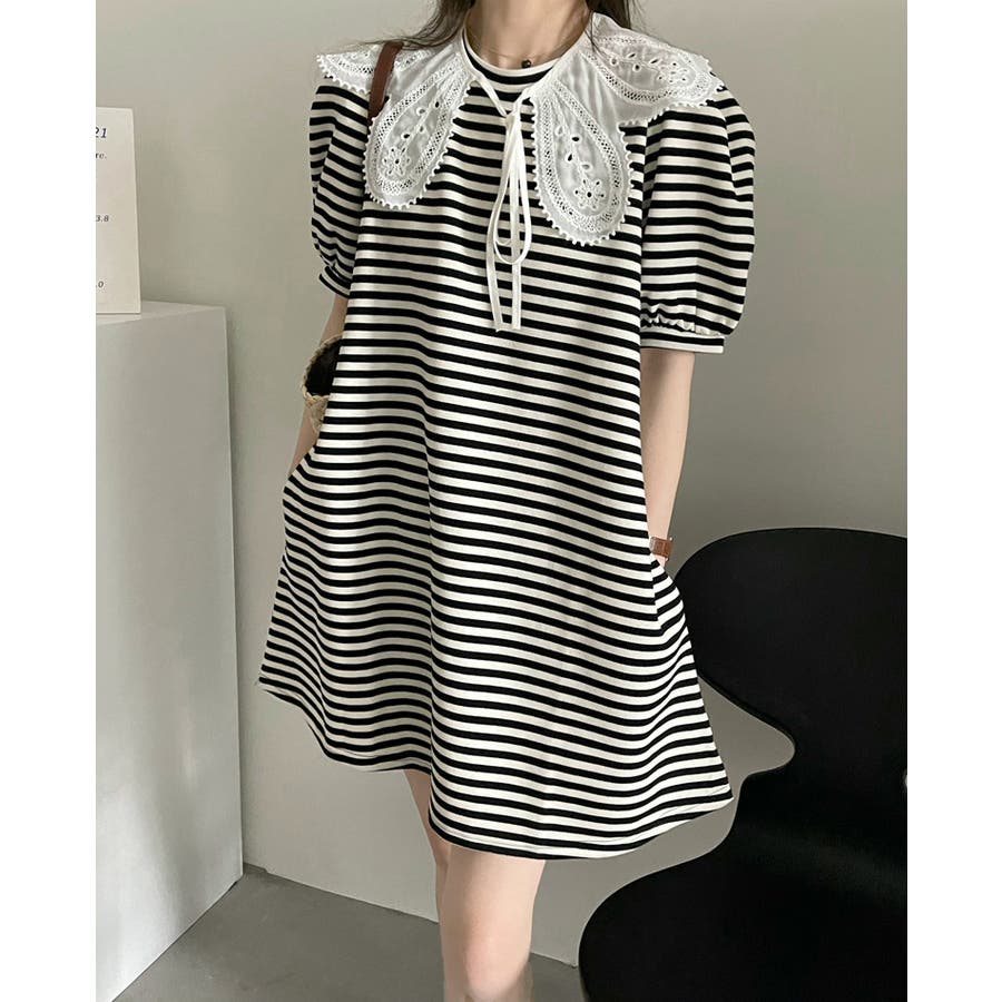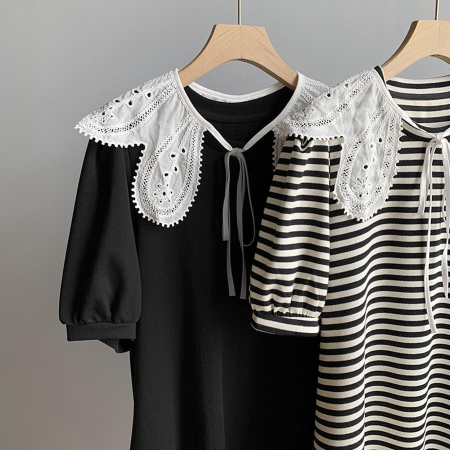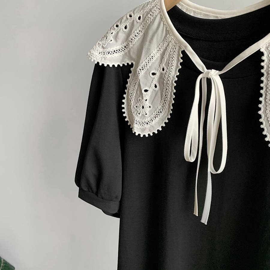 付け衿パフスリーブカットフレアワンピース【韓国ファッション】