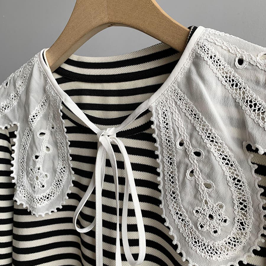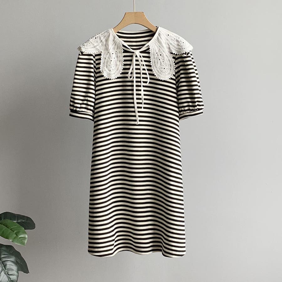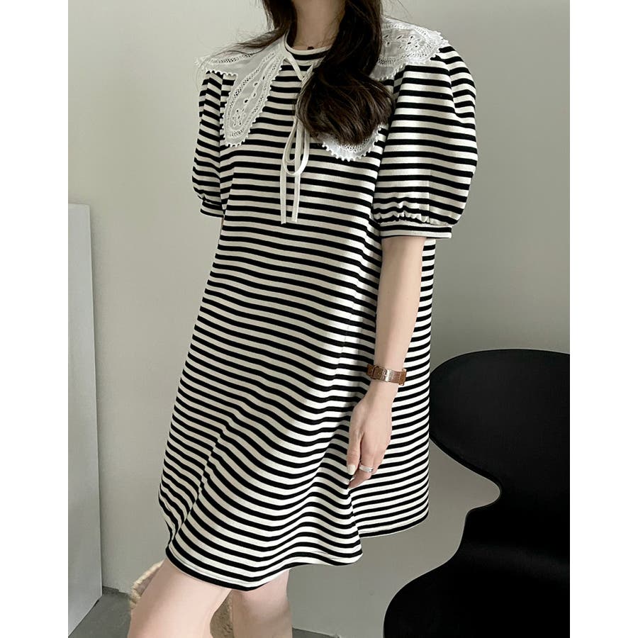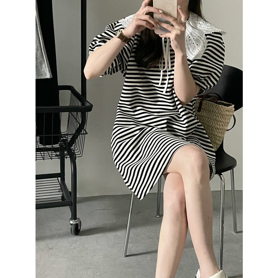 ボーダーカットソーワンピースにつけ襟をつけるだけで、