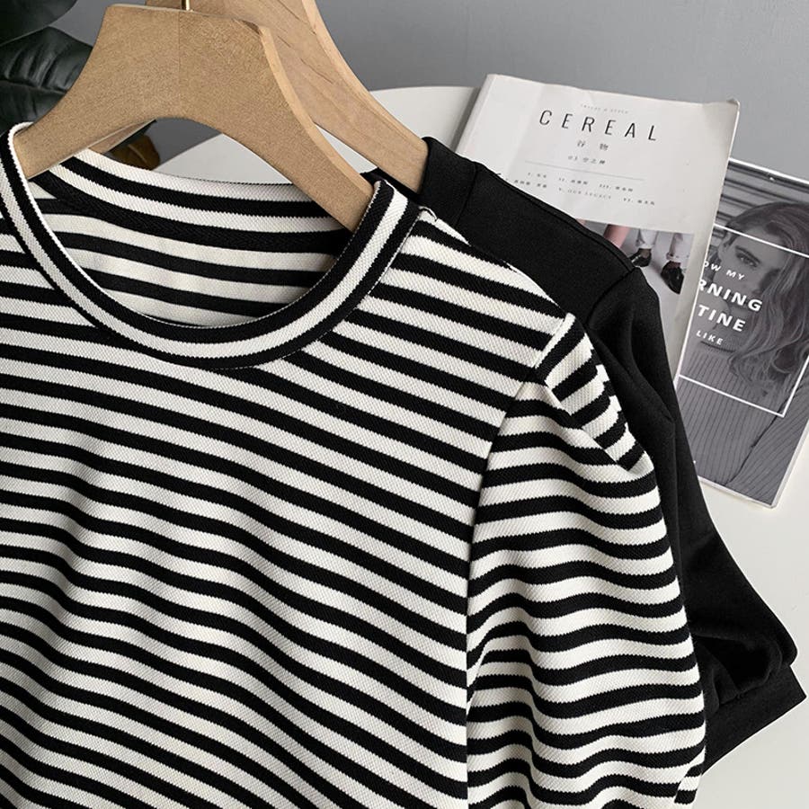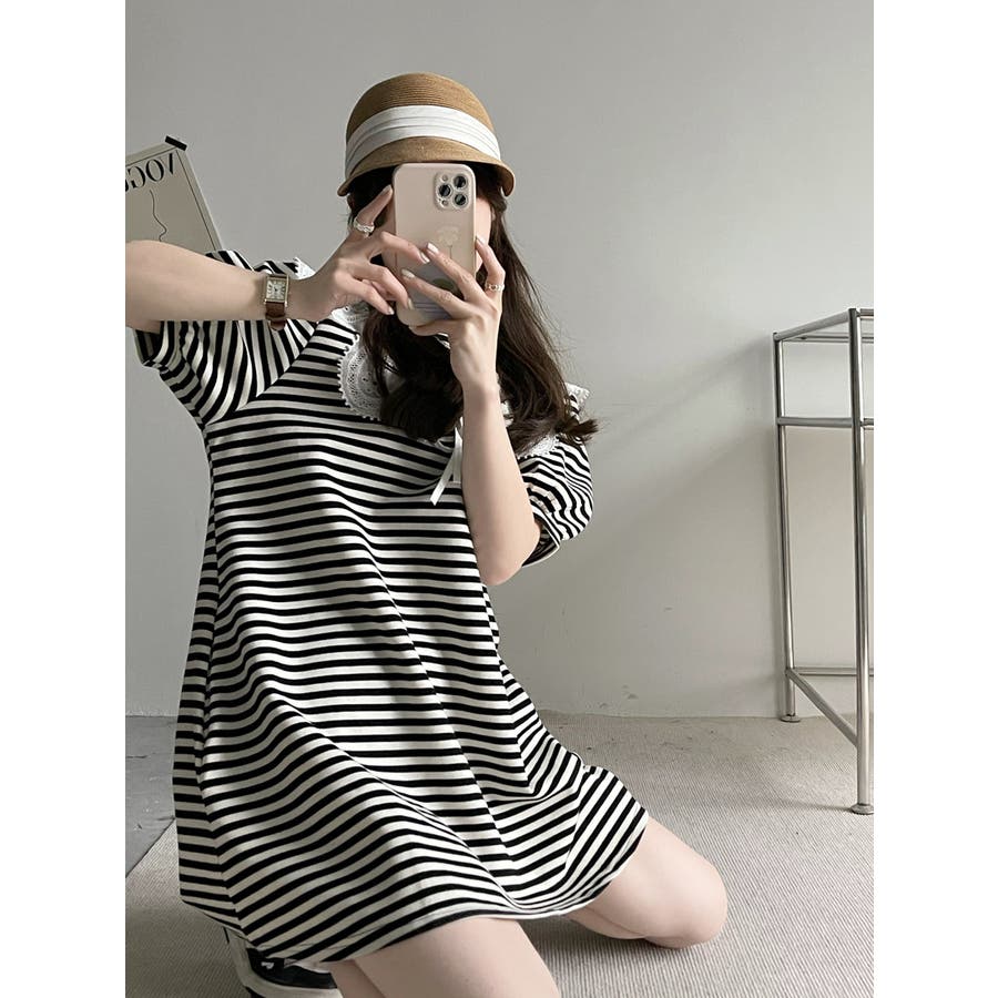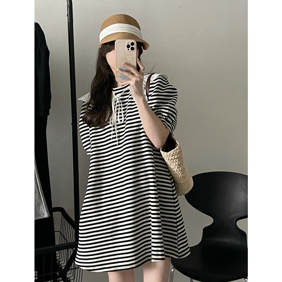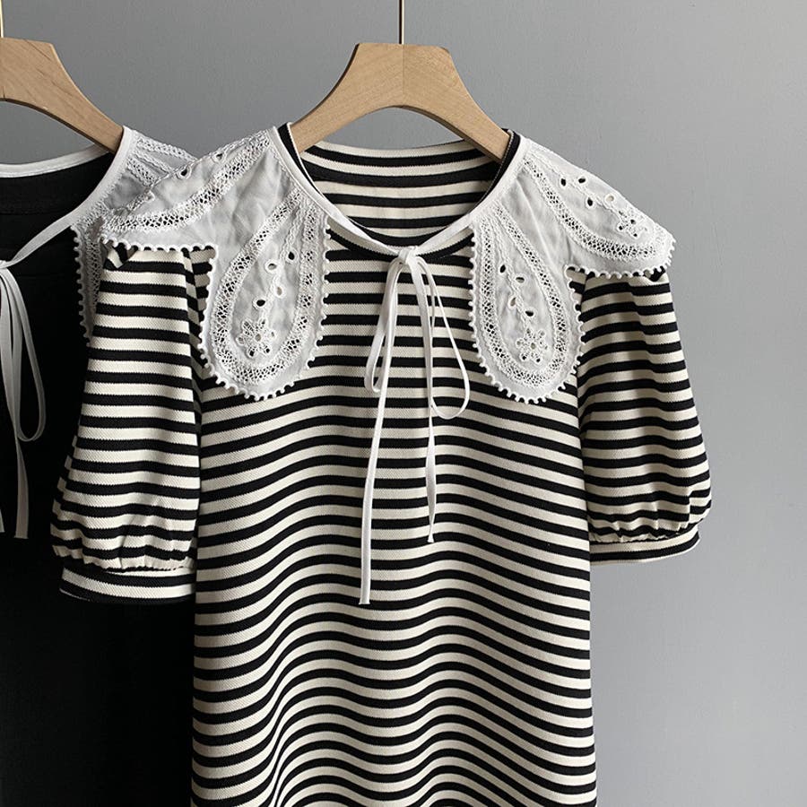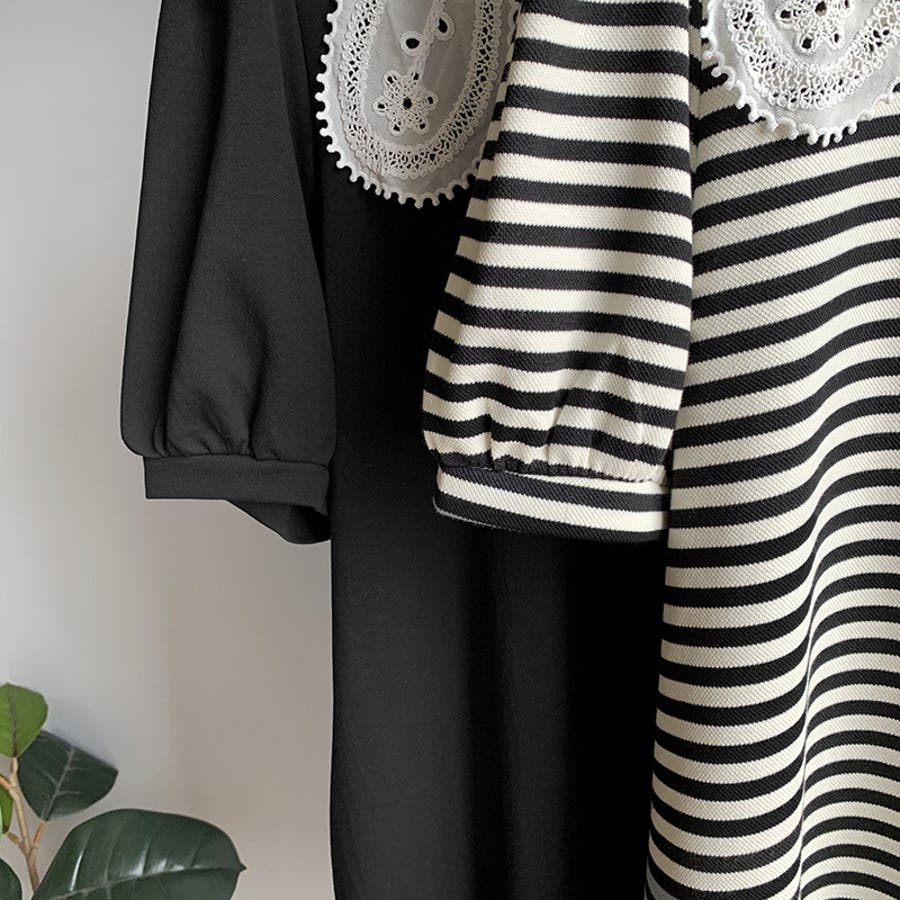 ボーダーカットソーワンピースにつけ襟をつけるだけで、