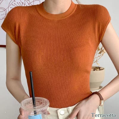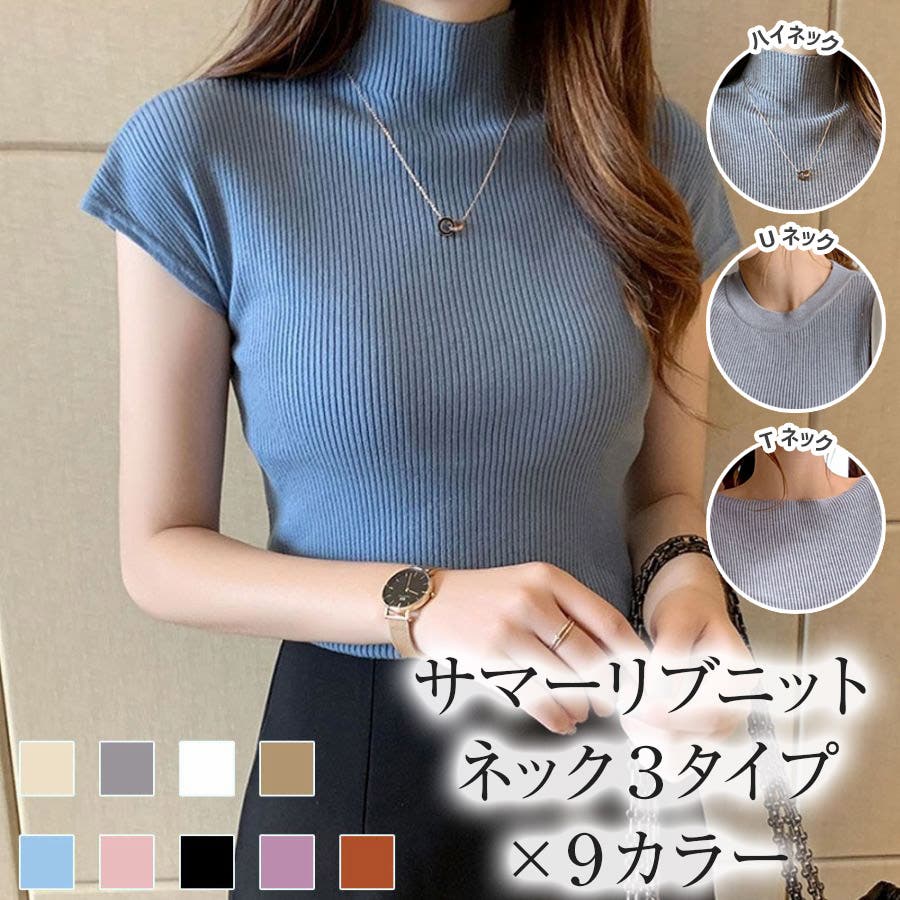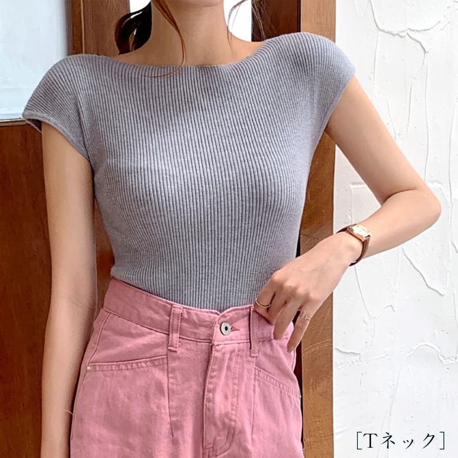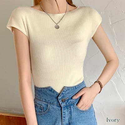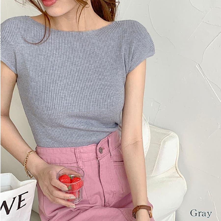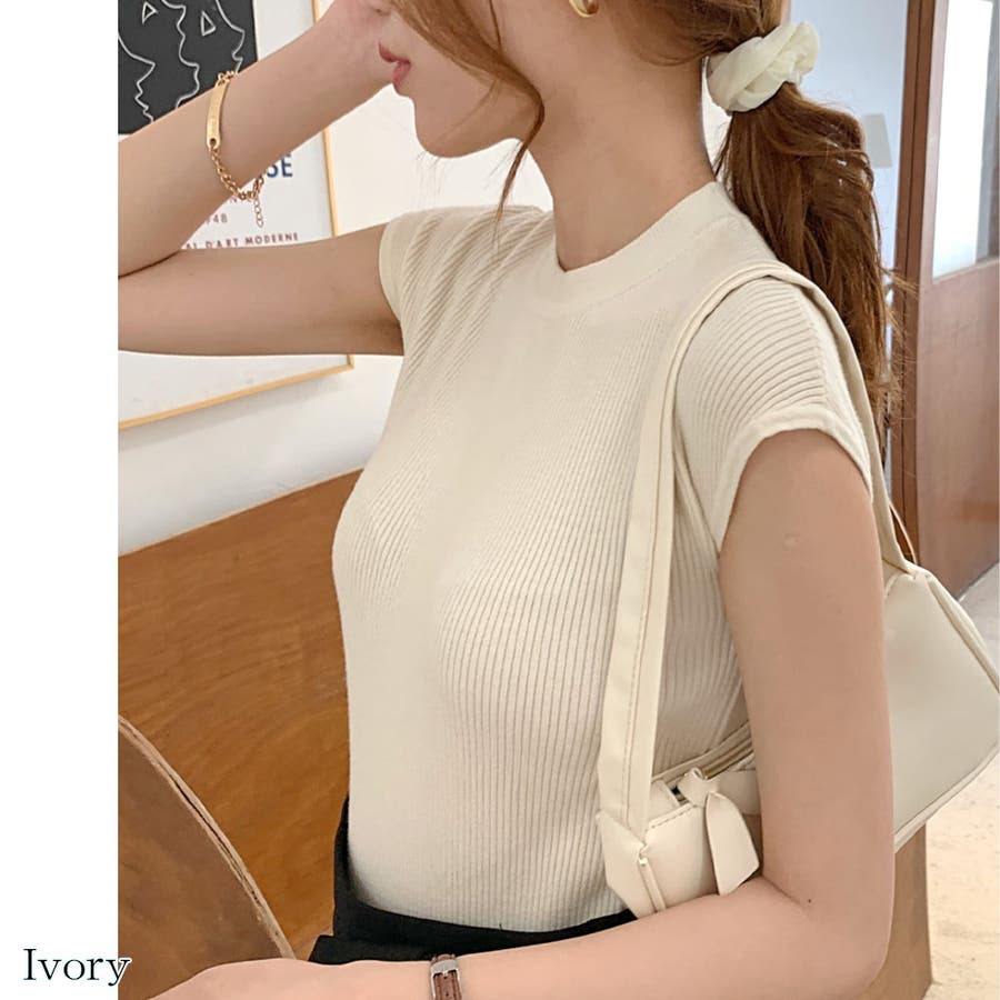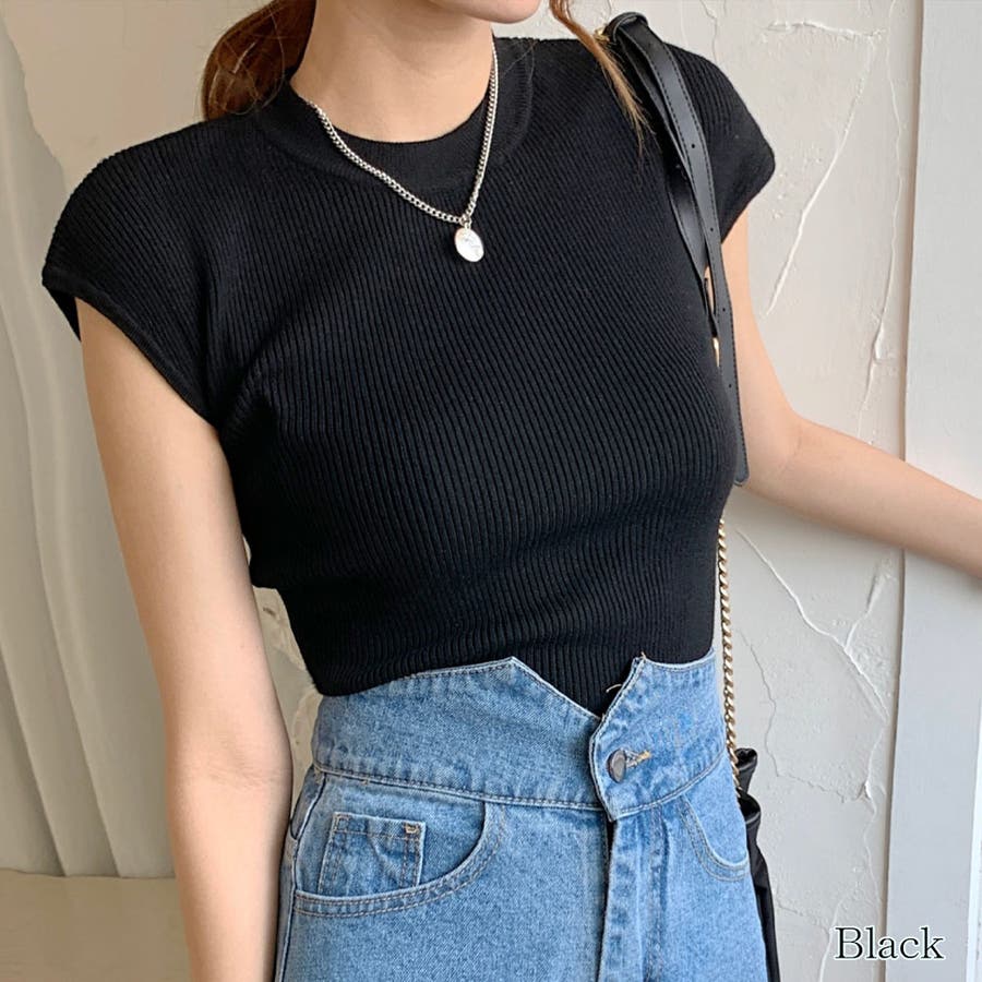 フレンチスリーブサマーリブニットトップス【韓国ファッション】
