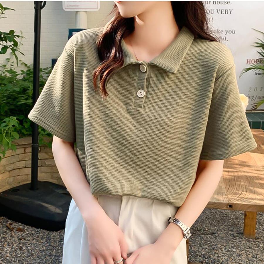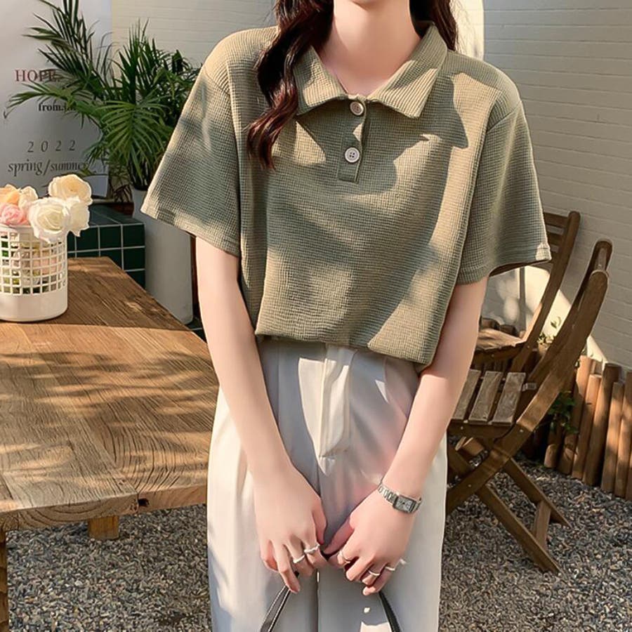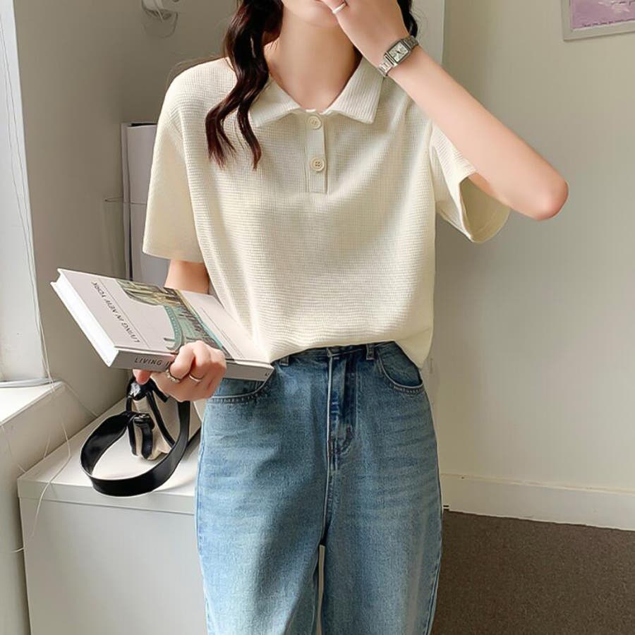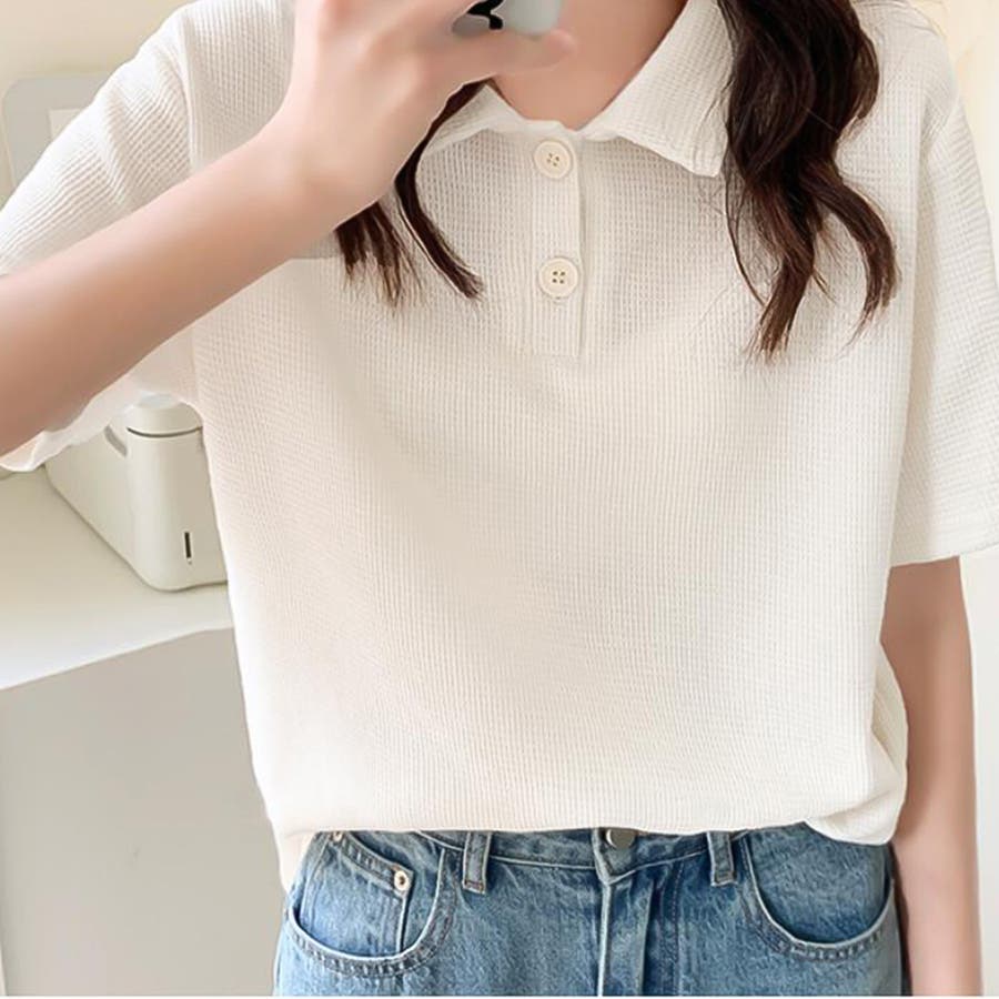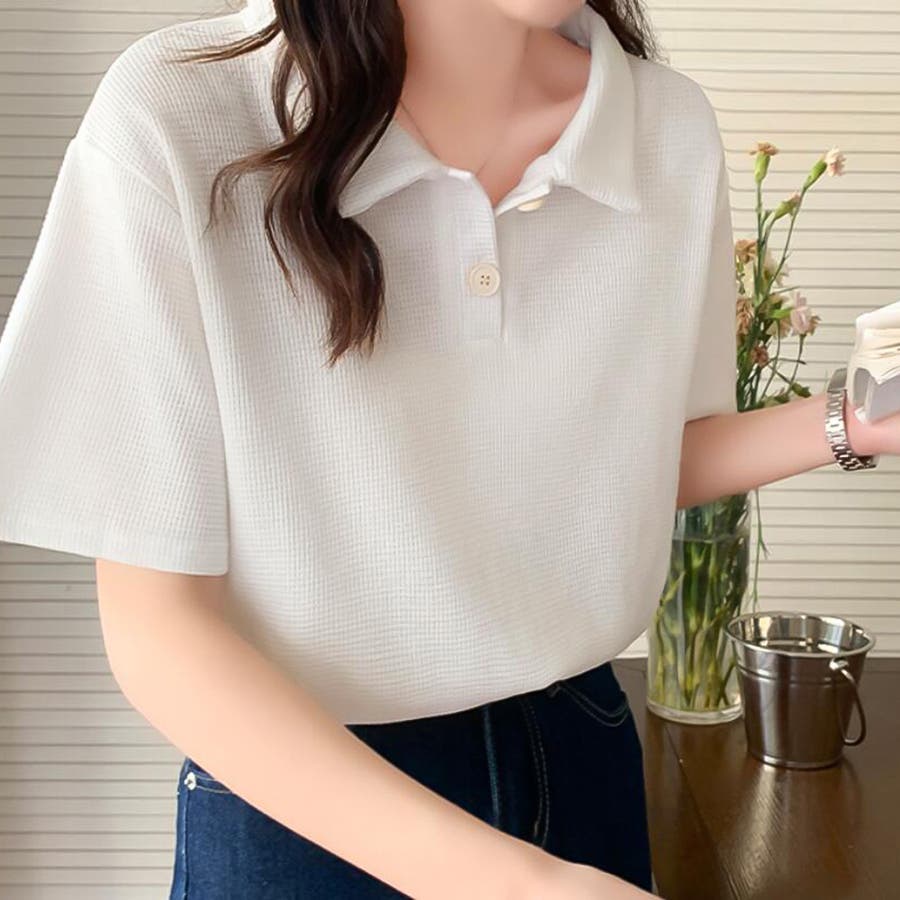 ワッフルポロシャツ【韓国ファッション】