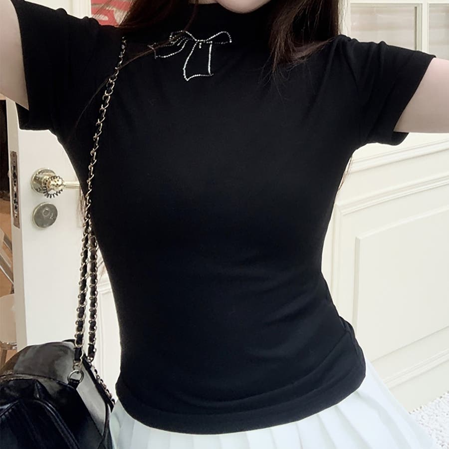 絶妙なバランスのモックネックデザインが上品な印象です。