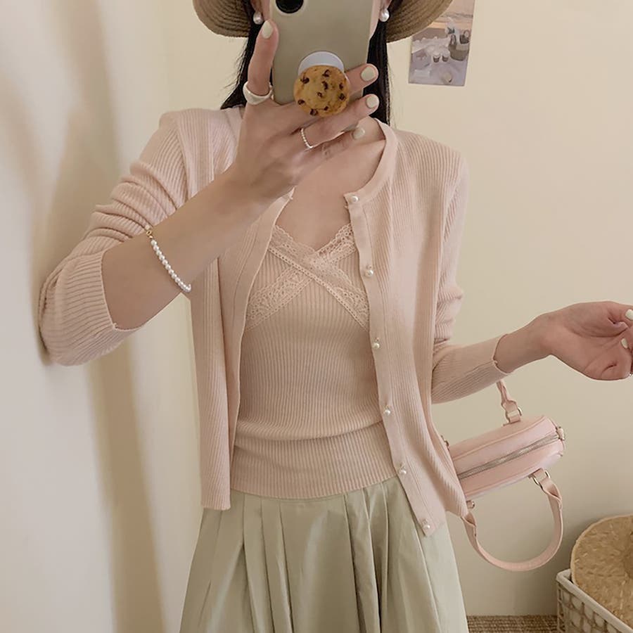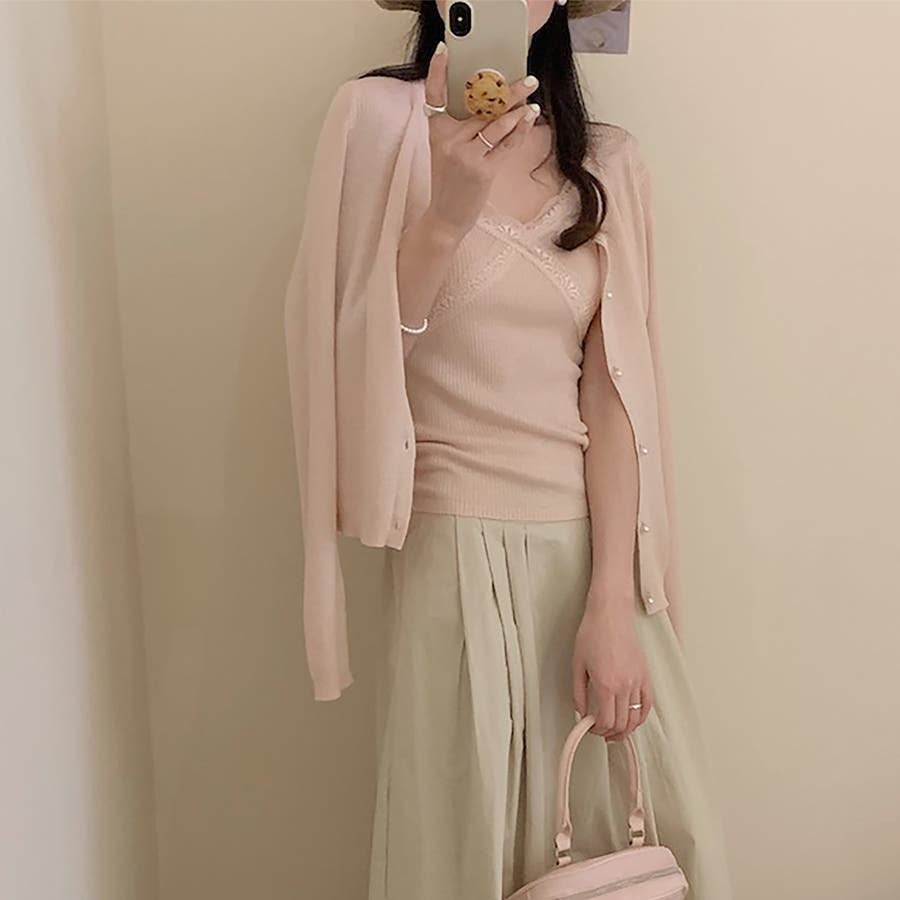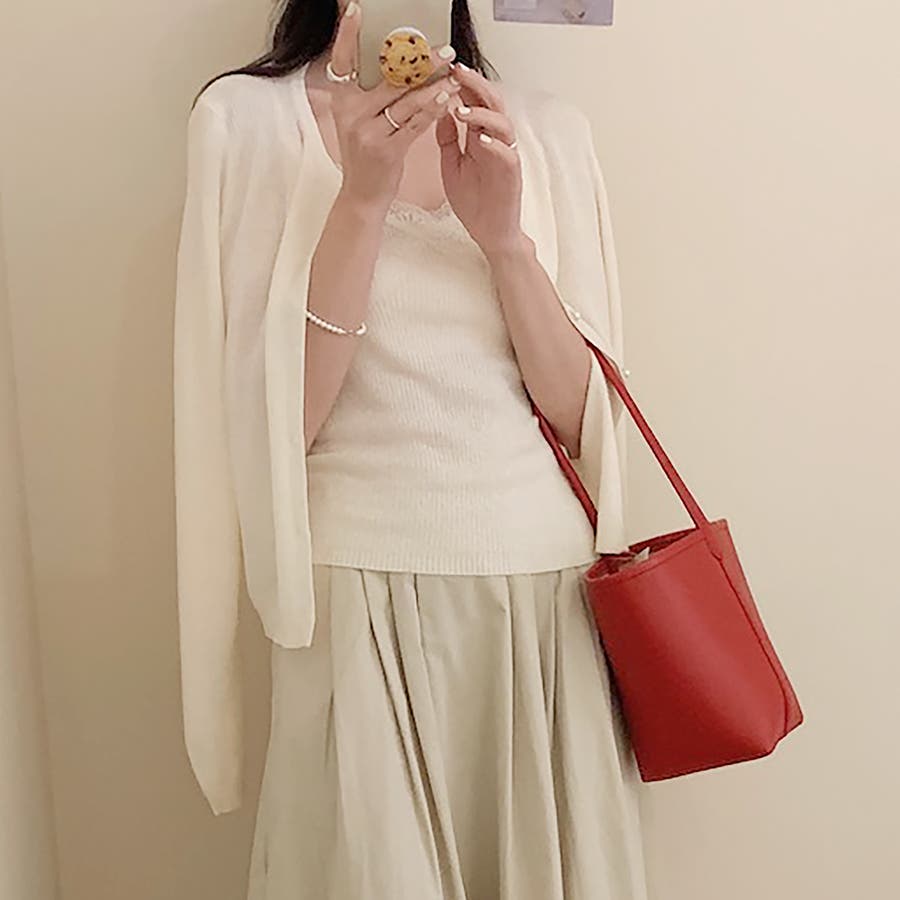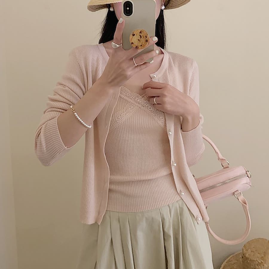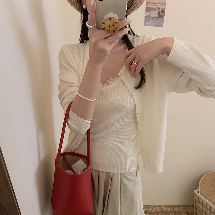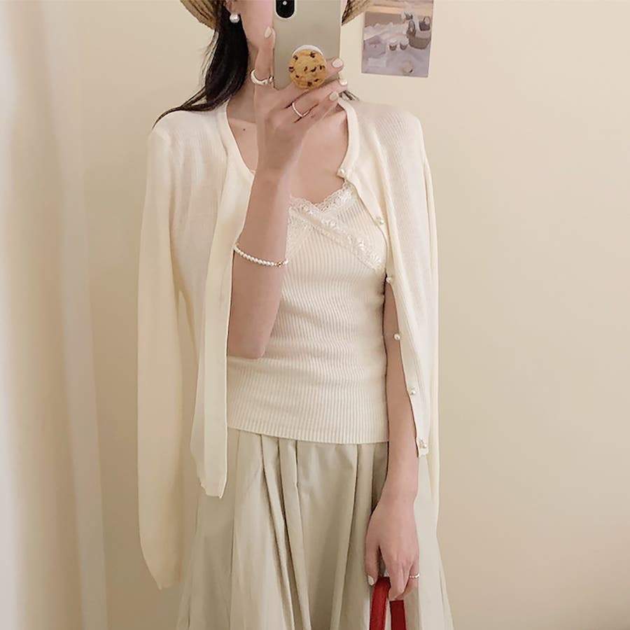 【サイズ詳細】【F】総丈52 バスト88 肩幅35 袖丈64 キャミ着丈46 バスト62