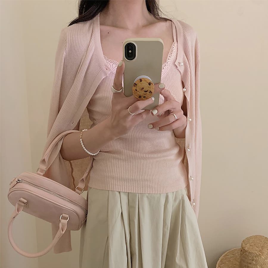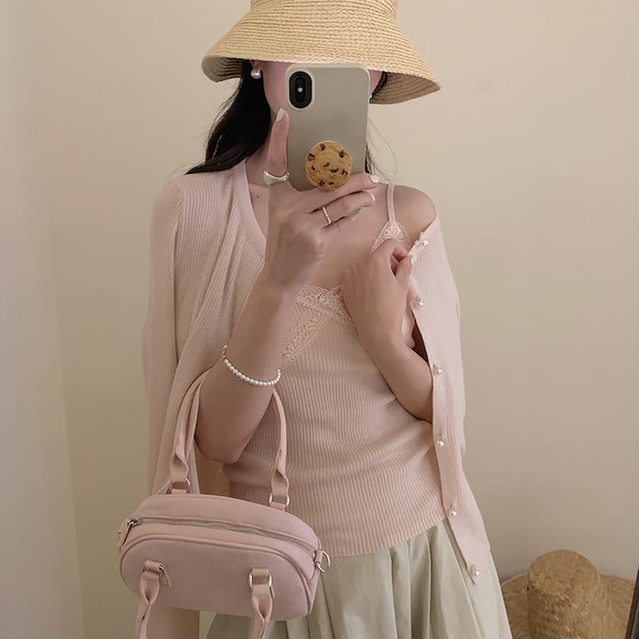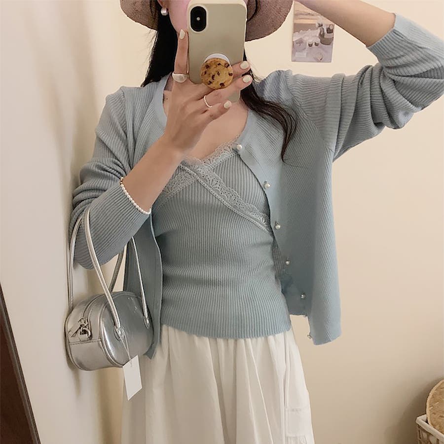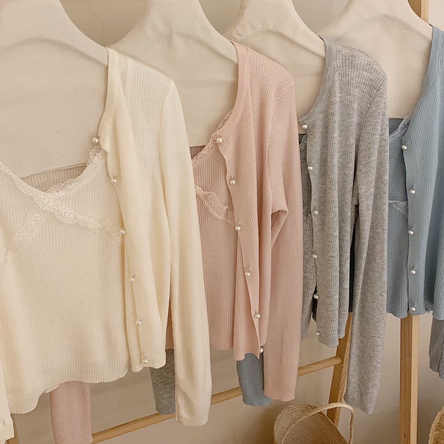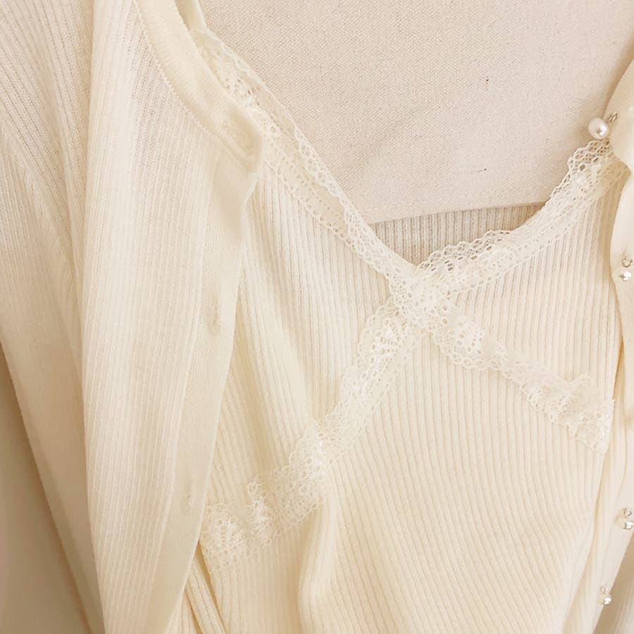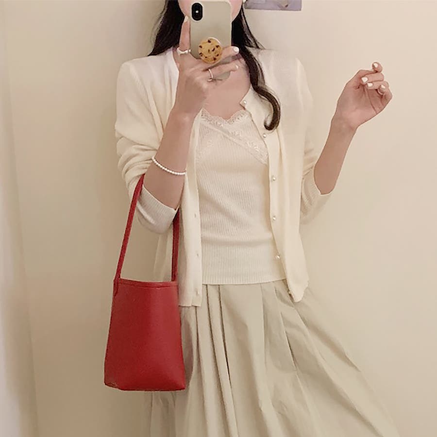 【サイズ詳細】【F】総丈52 バスト88 肩幅35 袖丈64 キャミ着丈46 バスト62