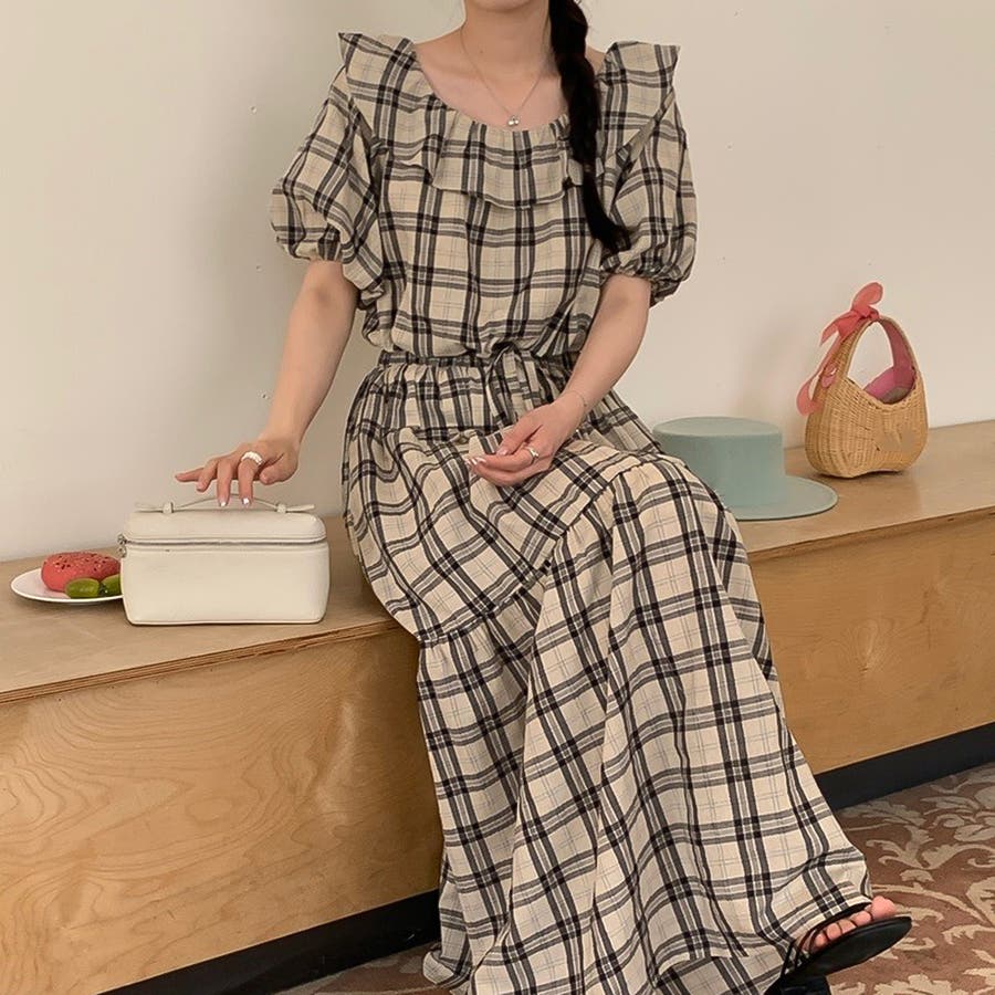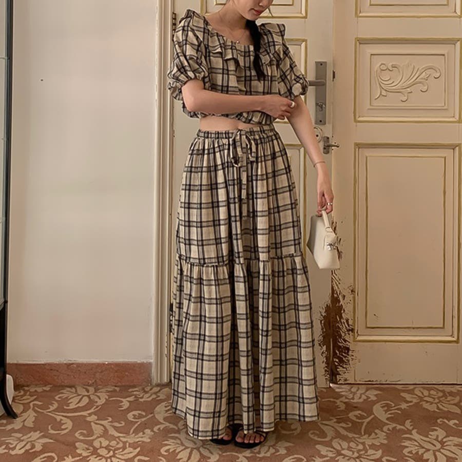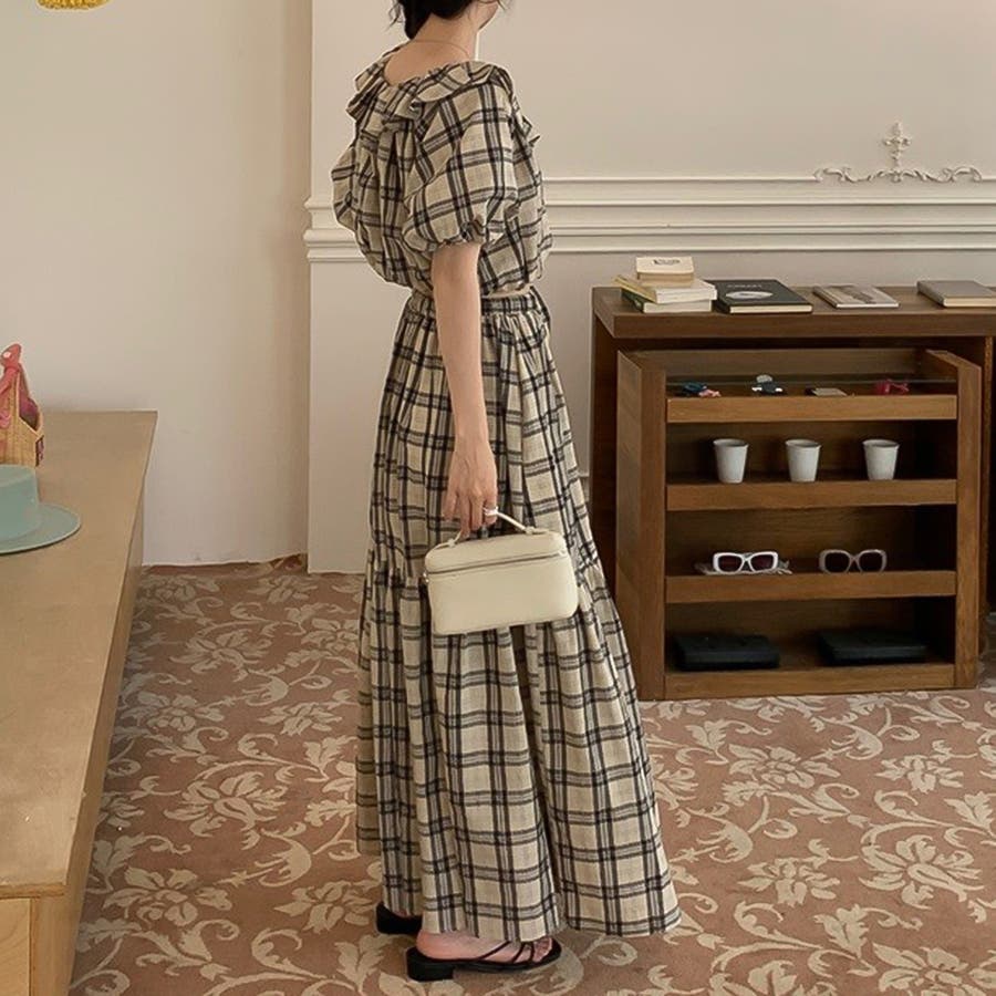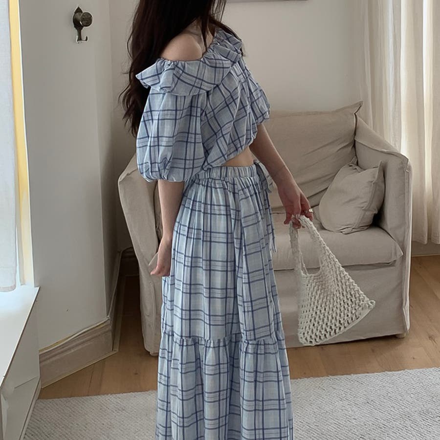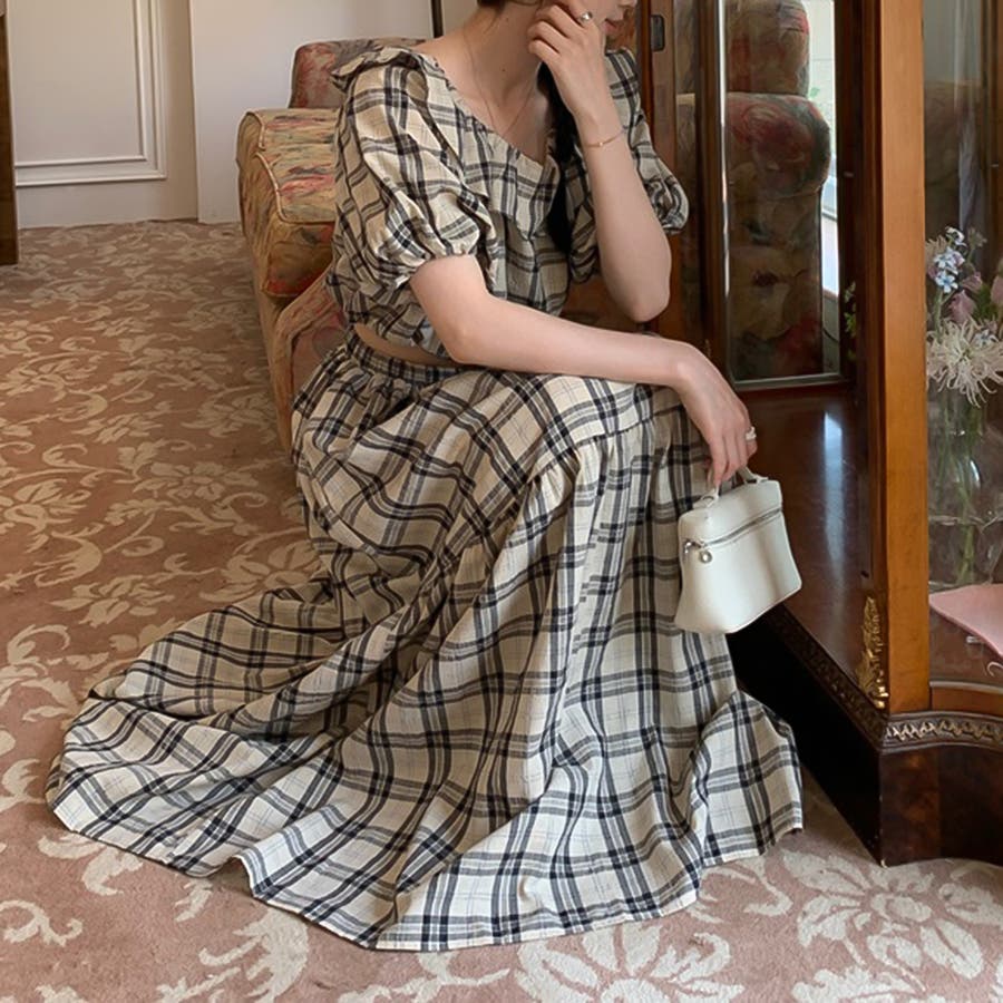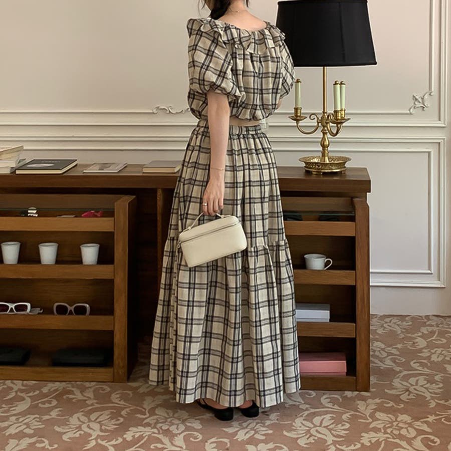 【サイズ詳細】【F】総丈34 バスト100 袖丈30 スカート丈91ウエスト66-100