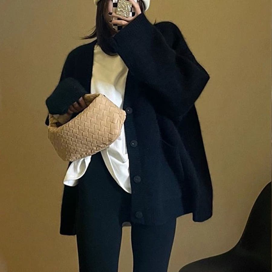韓国ファッション 大人 春 秋 冬 オフィスカジュアル 春服 秋服 冬服 体型カバー 事務服 通勤 シンプル 無地 長袖 ナチュラル 上品 きれいめ ボリューム袖