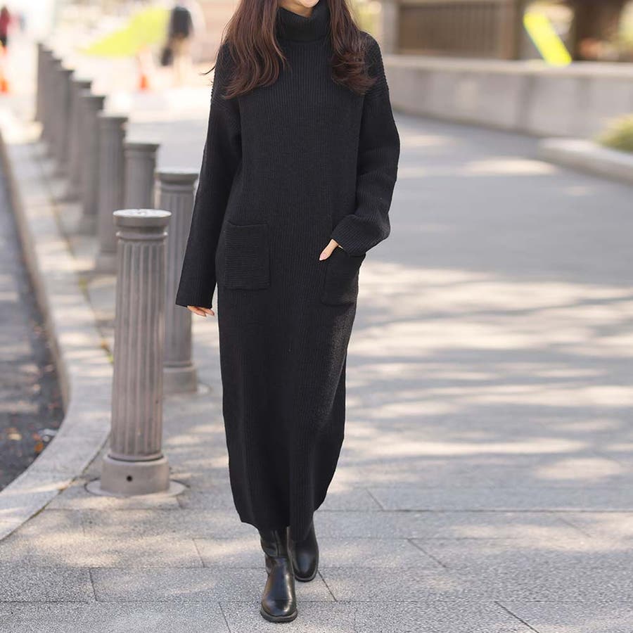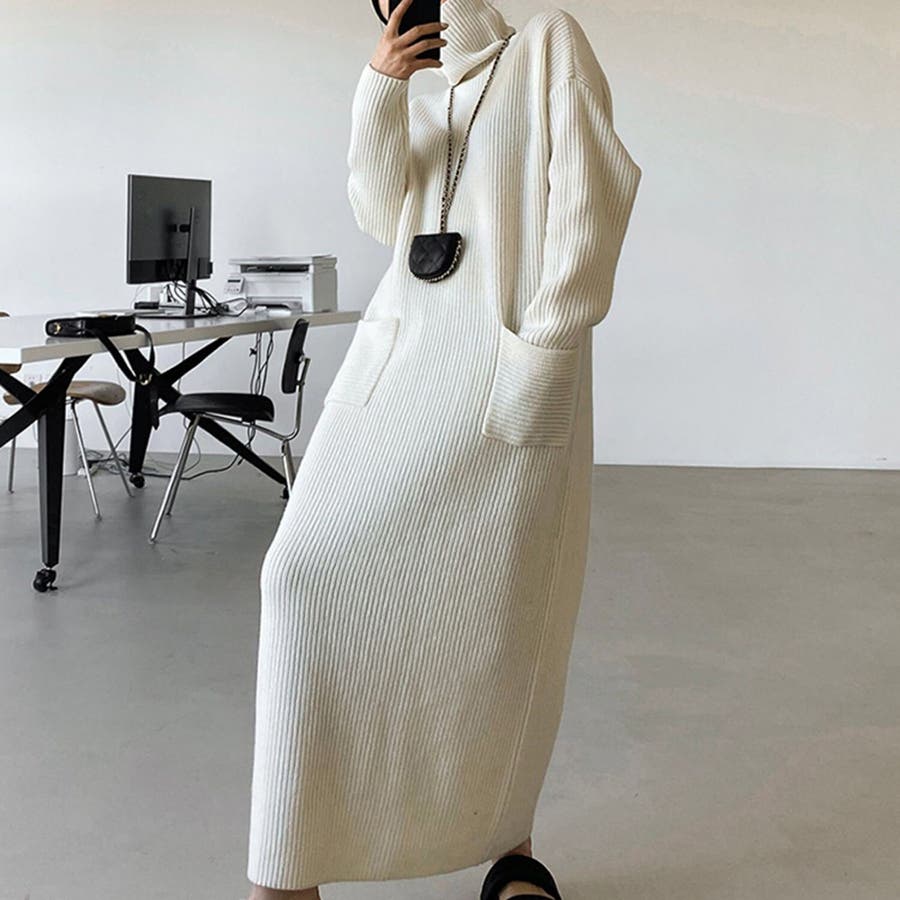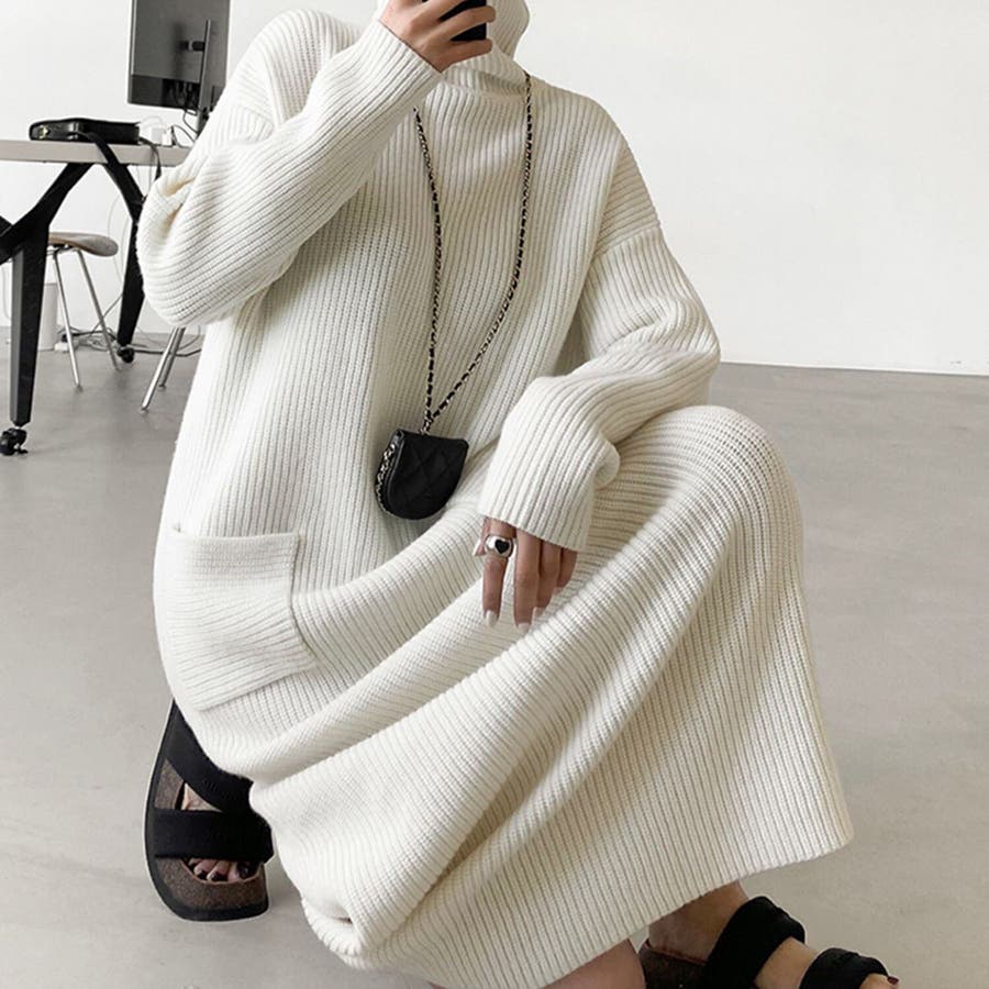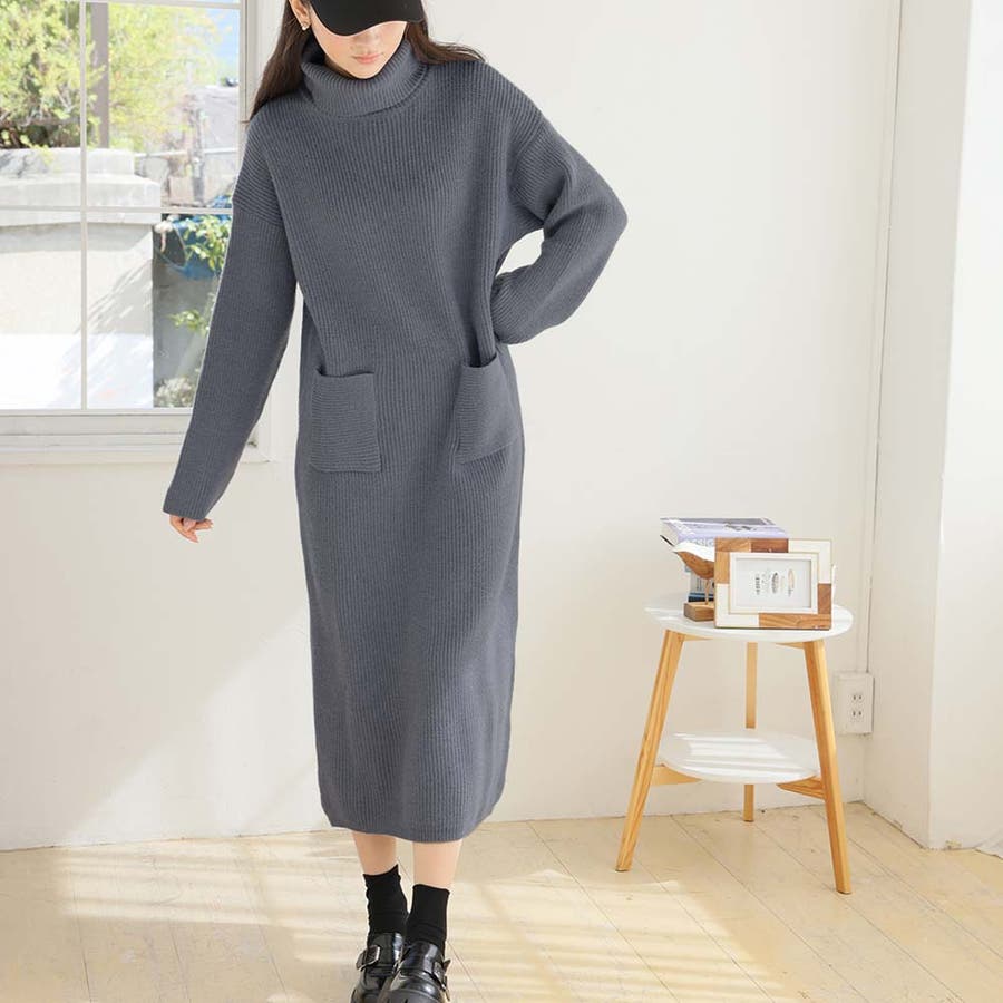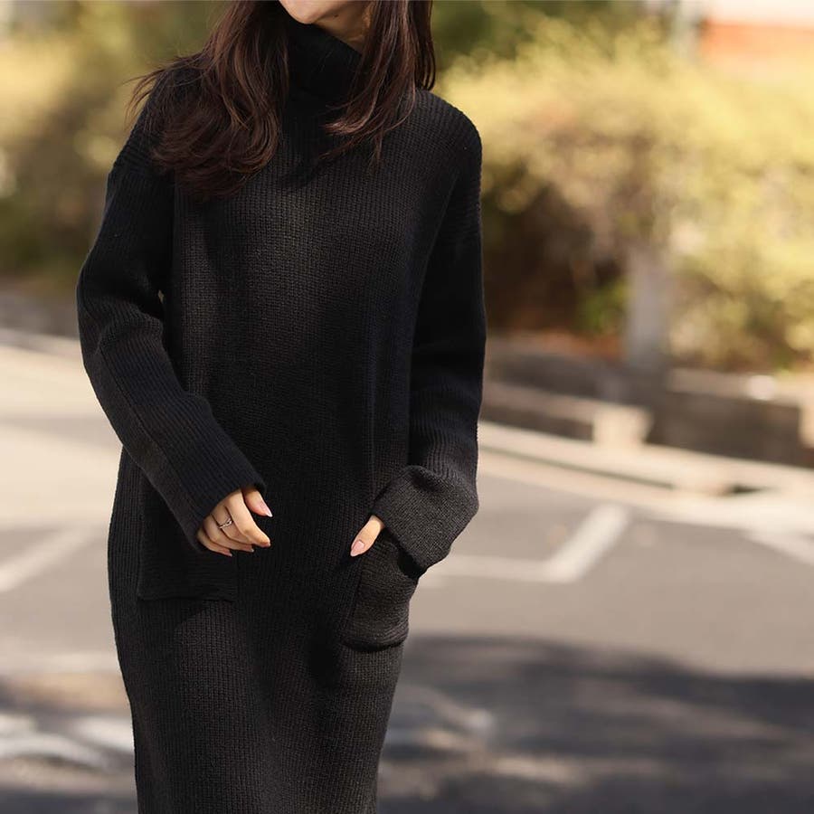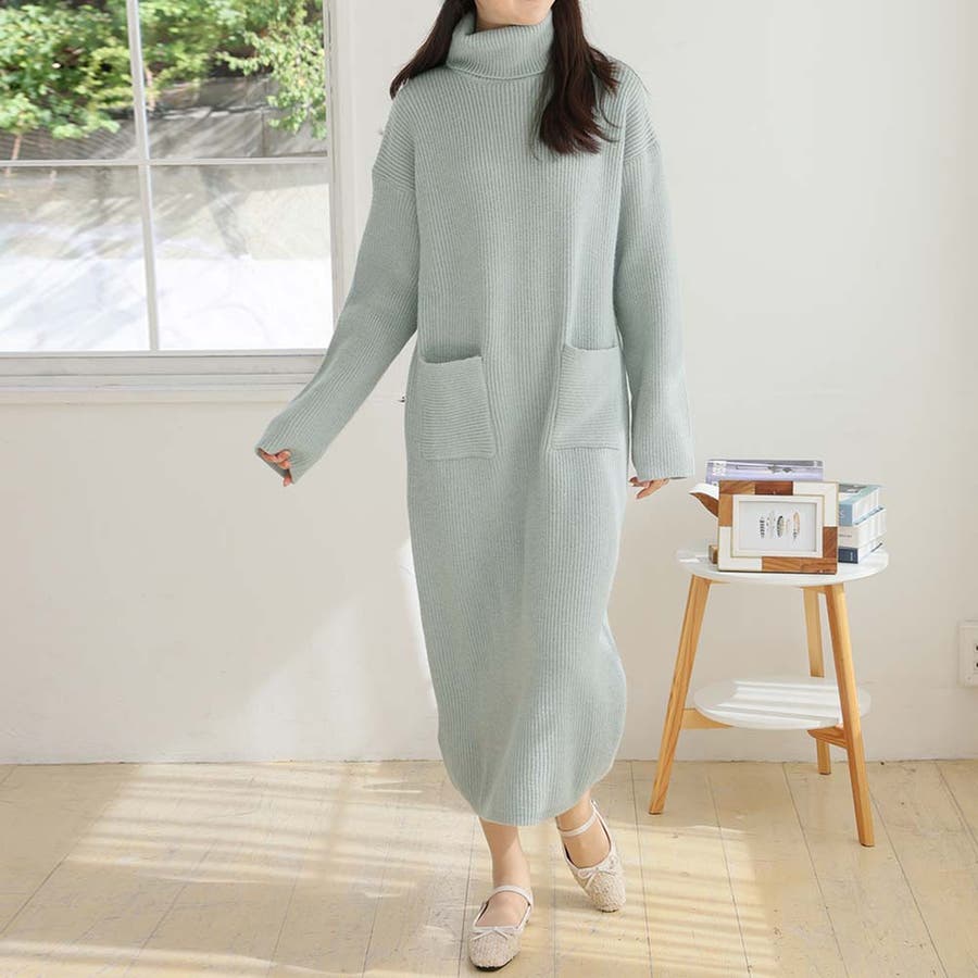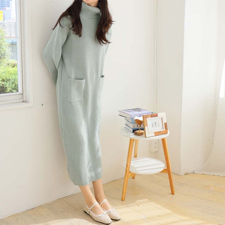 タートルネックロングニットワンピース【韓国ファッション】