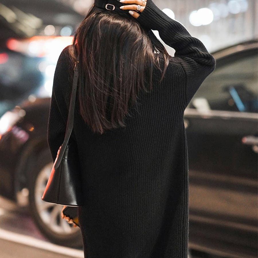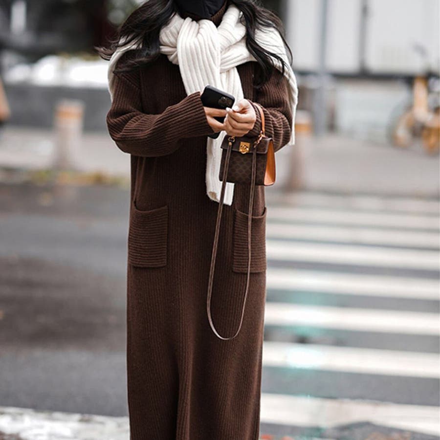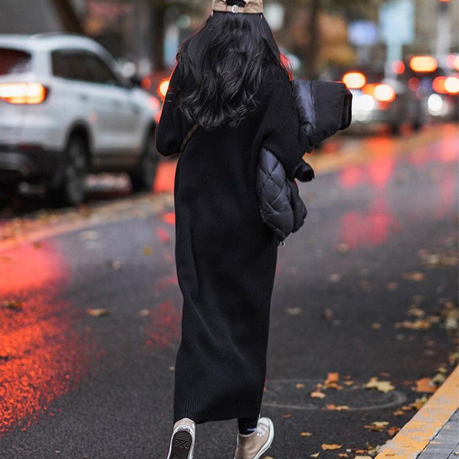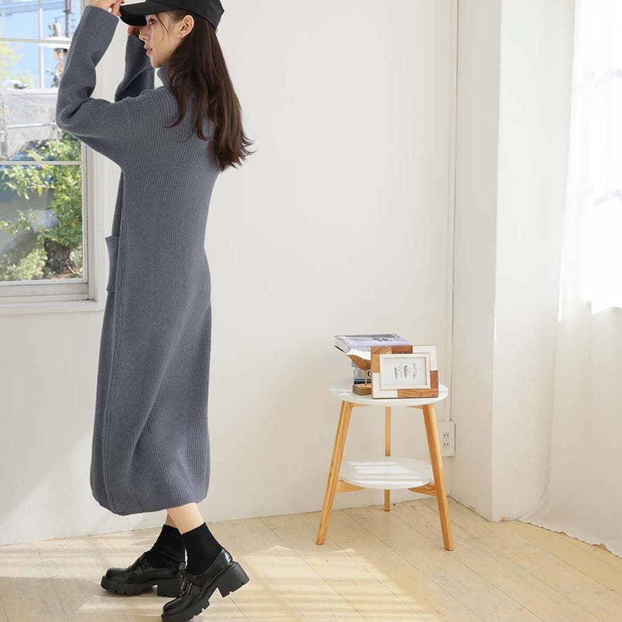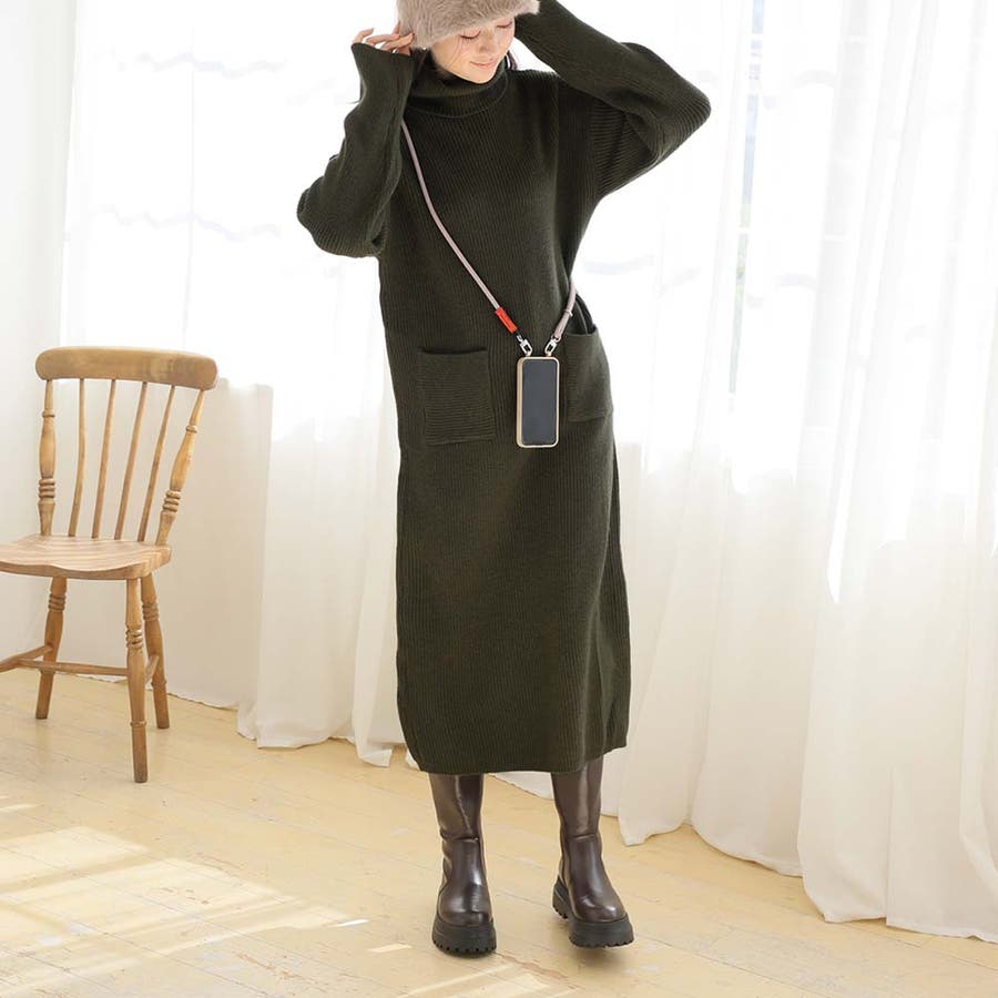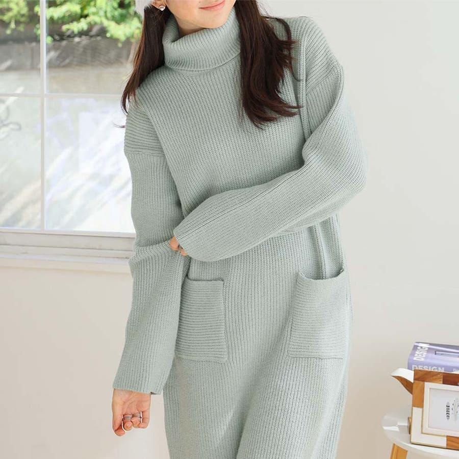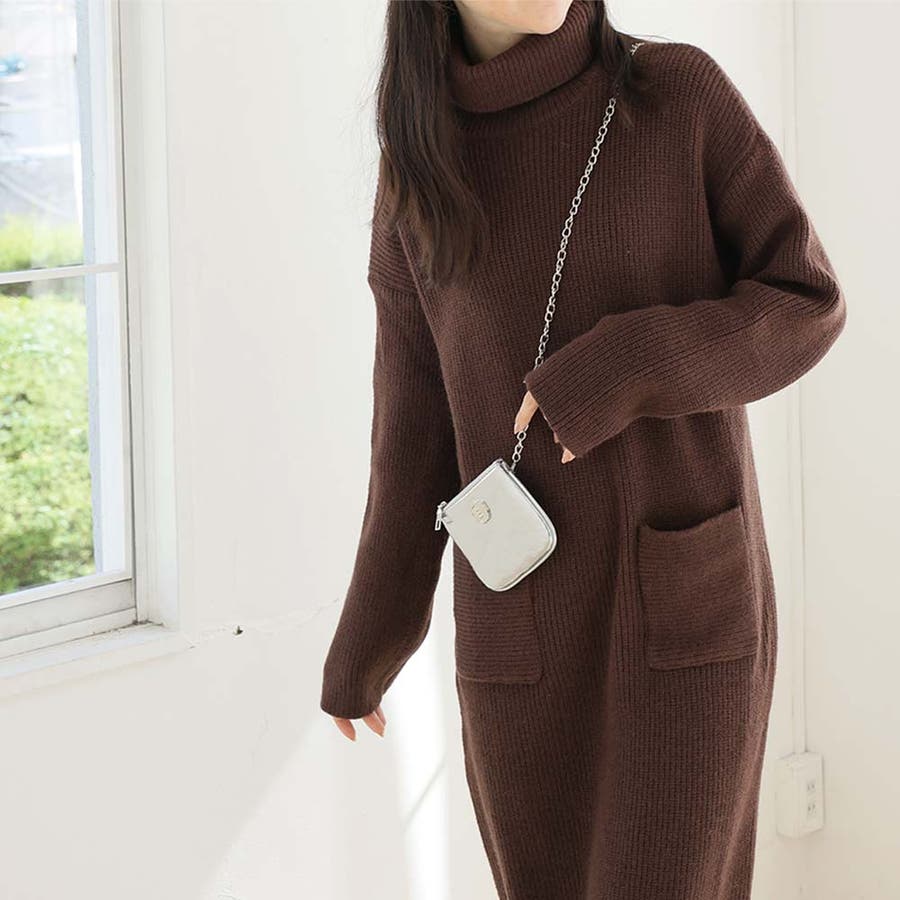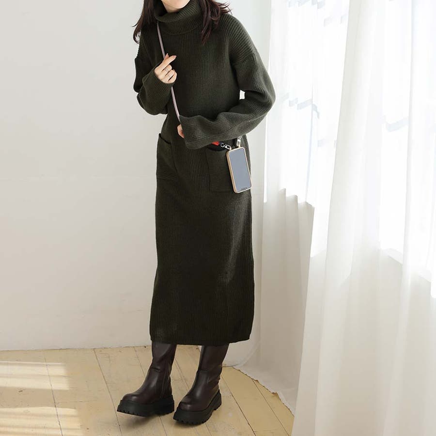 タートルネックロングニットワンピース【韓国ファッション】