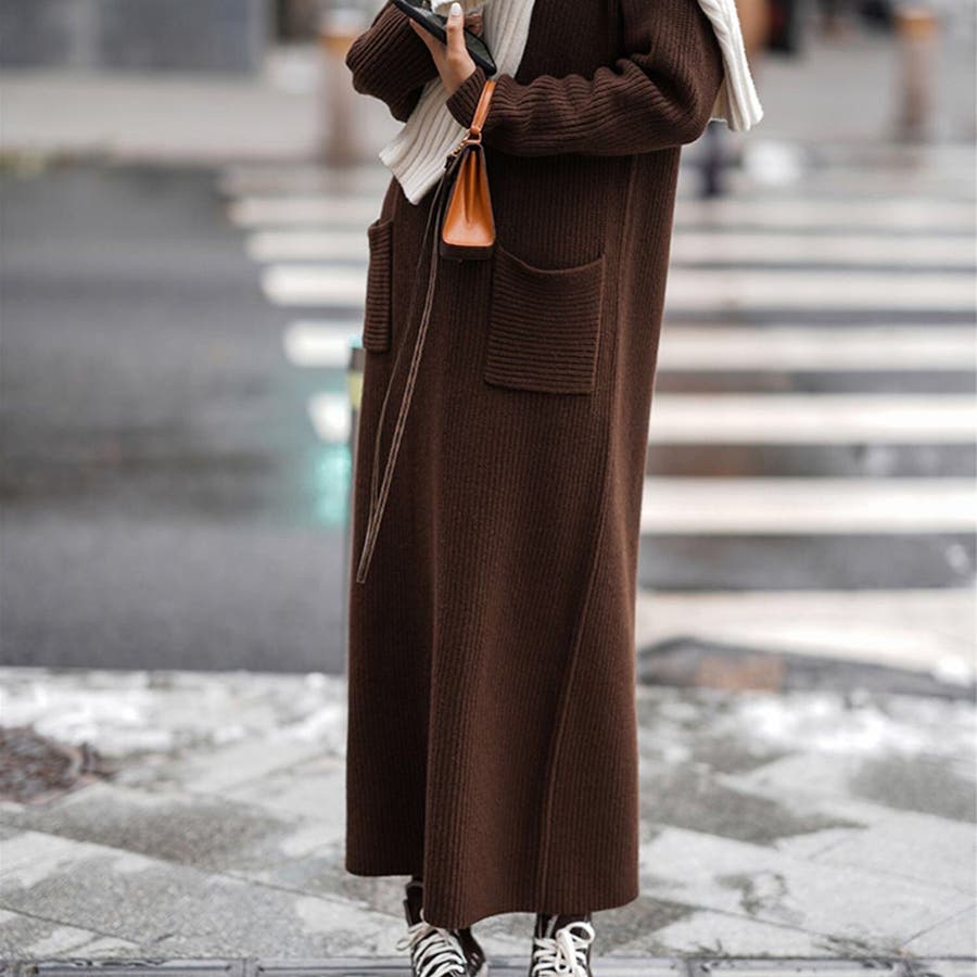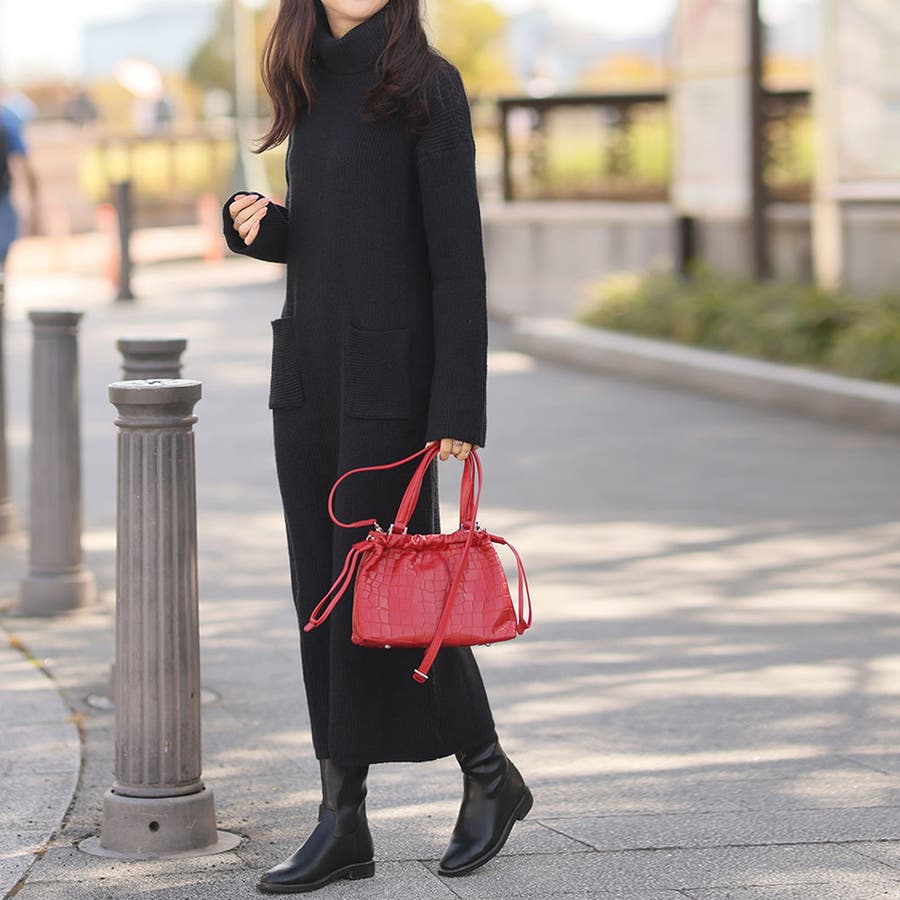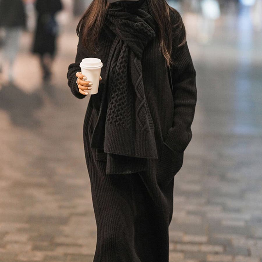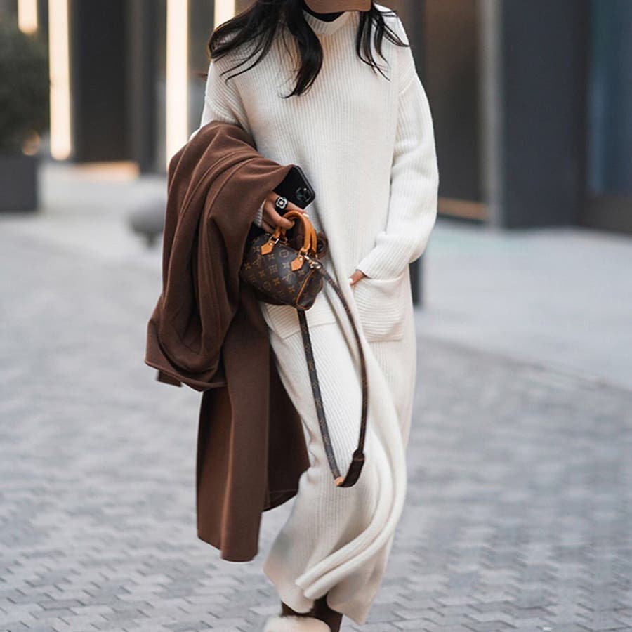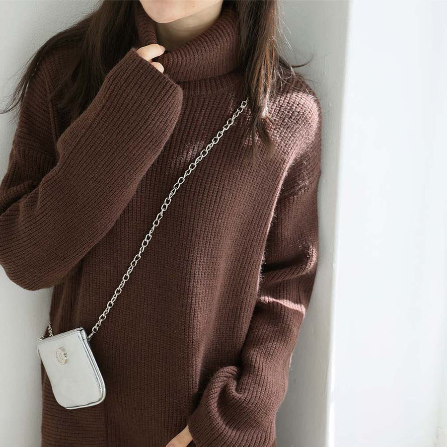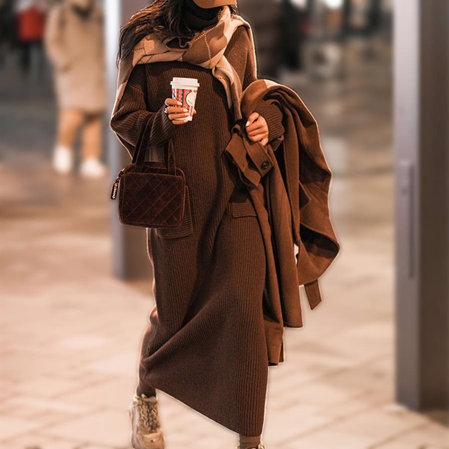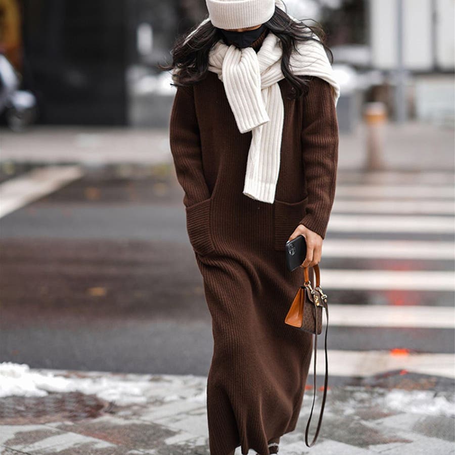 タートルネックロングニットワンピース【韓国ファッション】