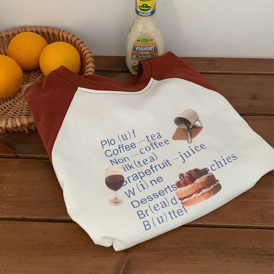 ・ぱっと目に入るフロントにカラーフォントのロゴがプリントされたラグランロンT。