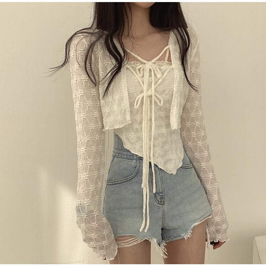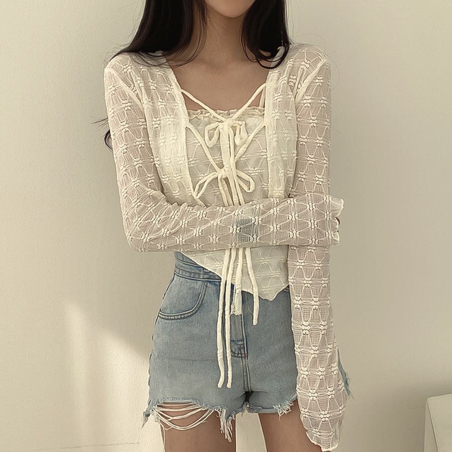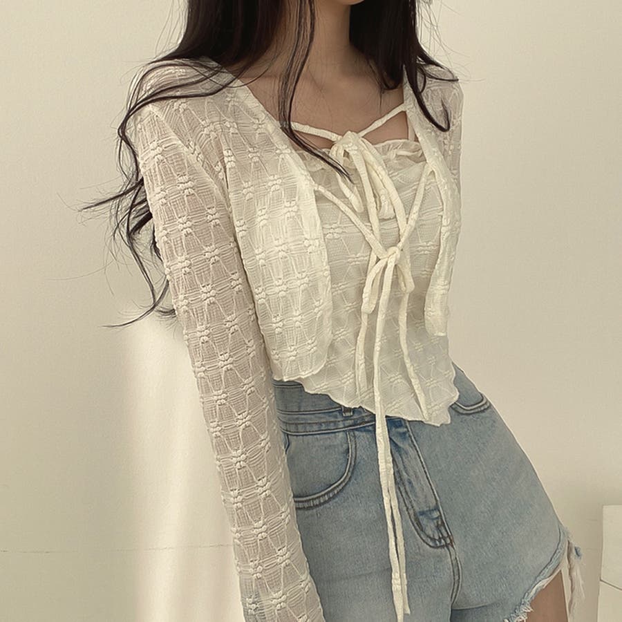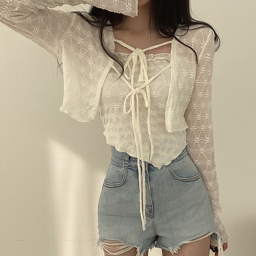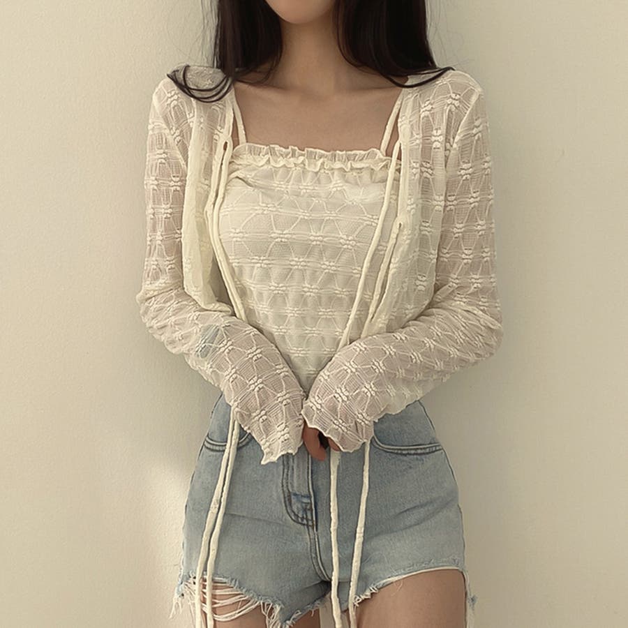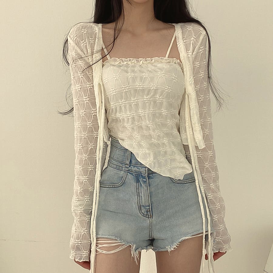 【サイズ詳細】【F】カーディガン:着丈約33cm 身幅約39cm 肩幅約38cm 袖丈約60cm キャミソール:着丈約33cm 身幅約27-41cm