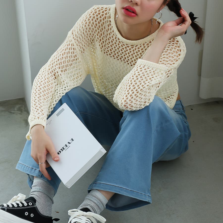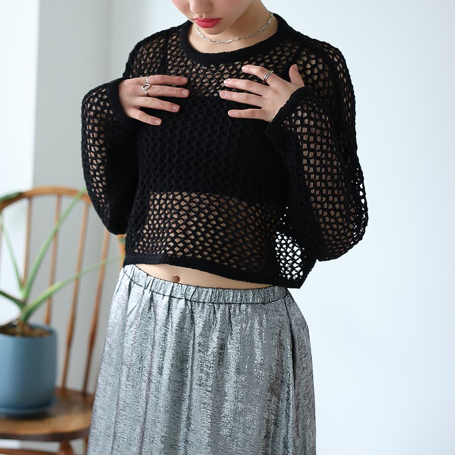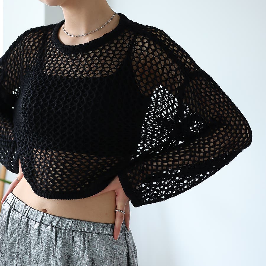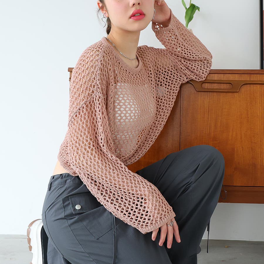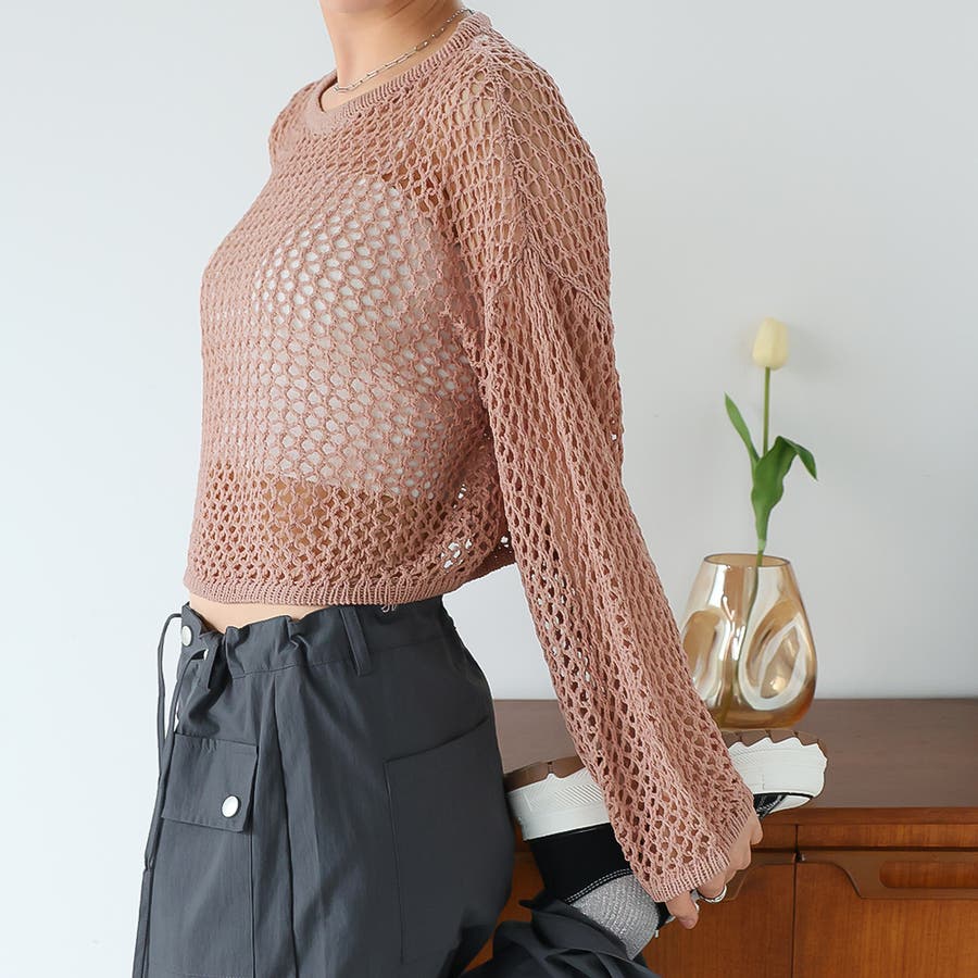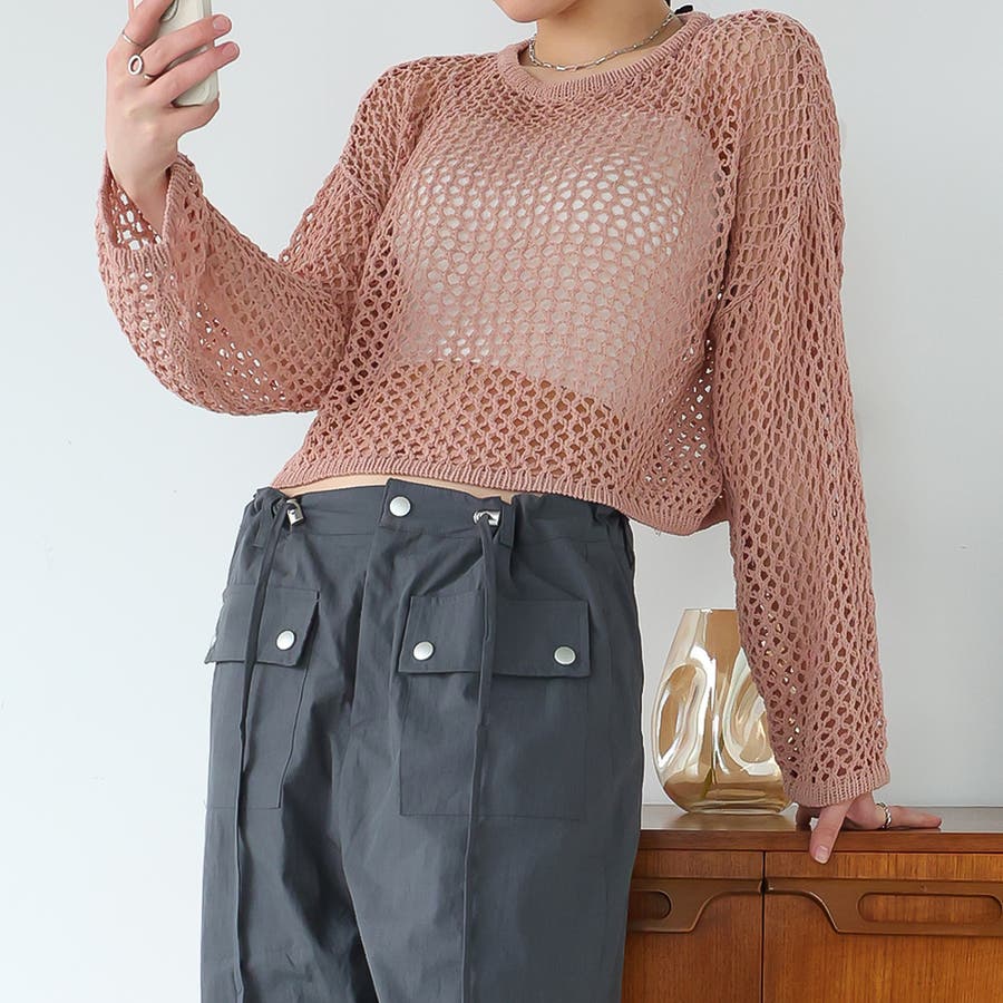 ゆるメッシュ透かし編みプルオーバー