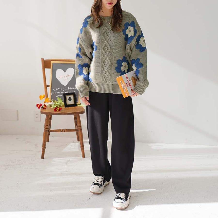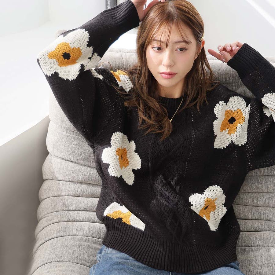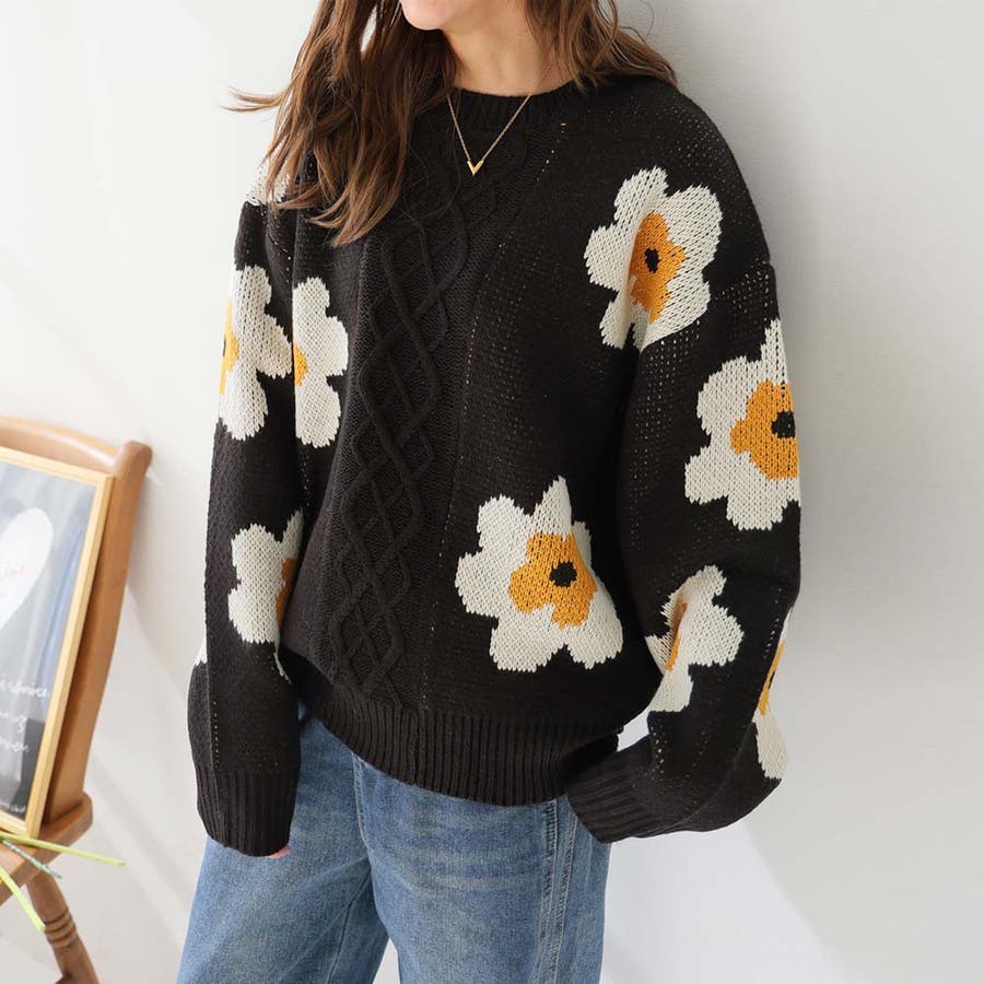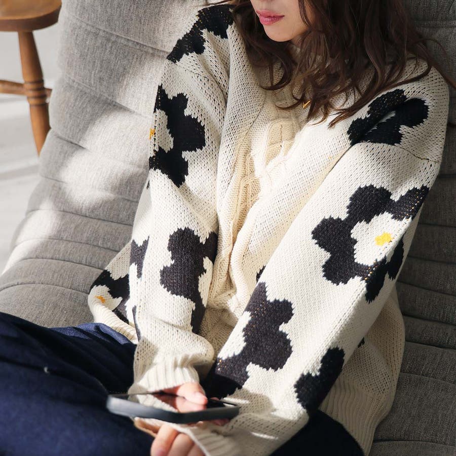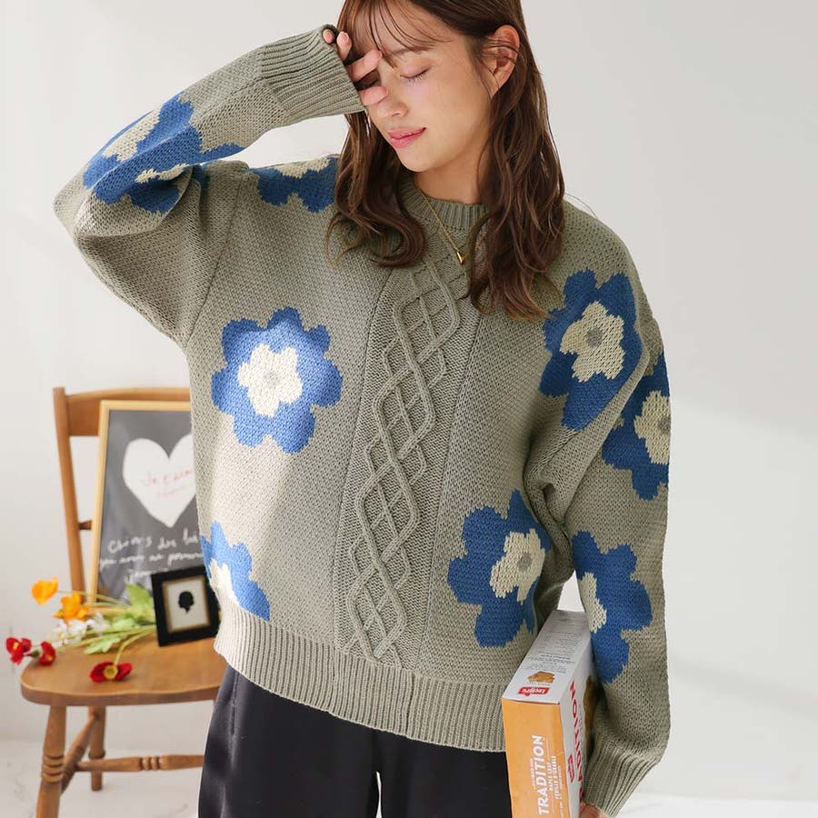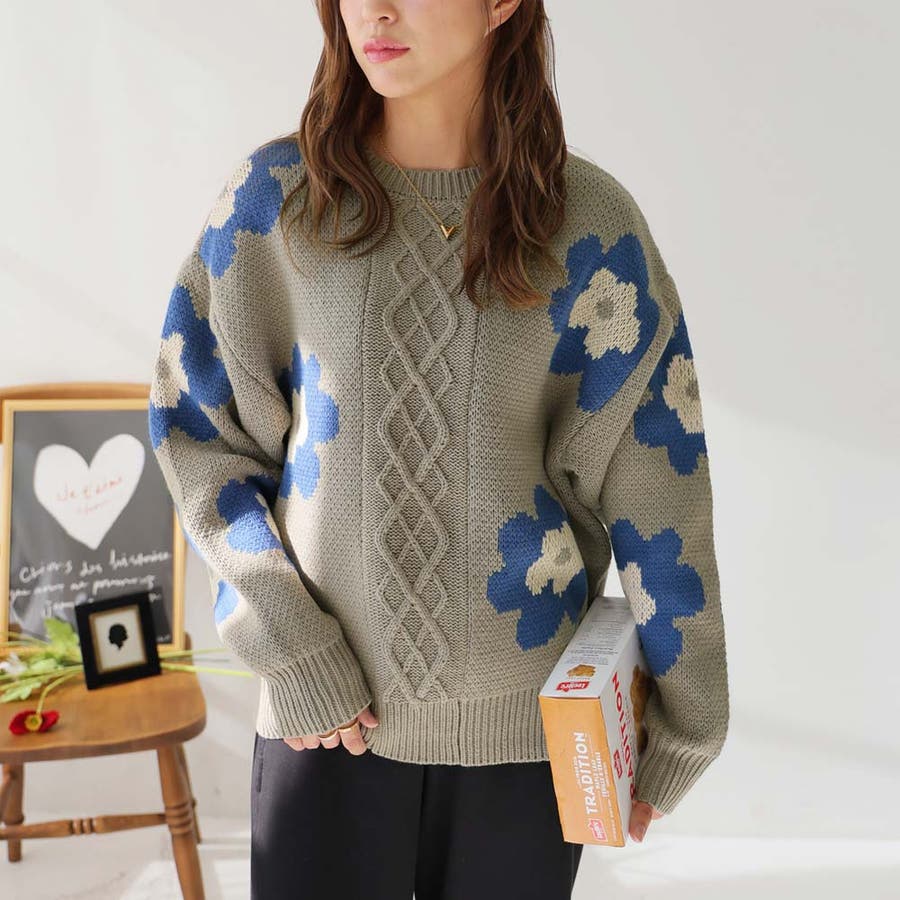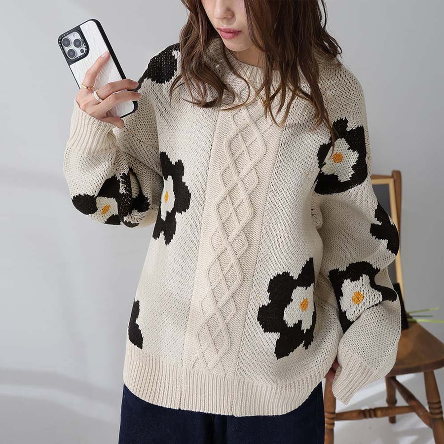 花柄ケーブルニット