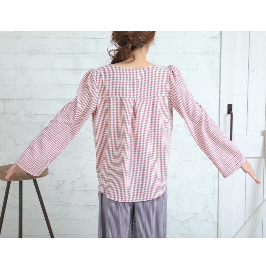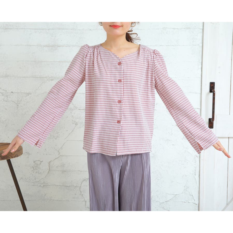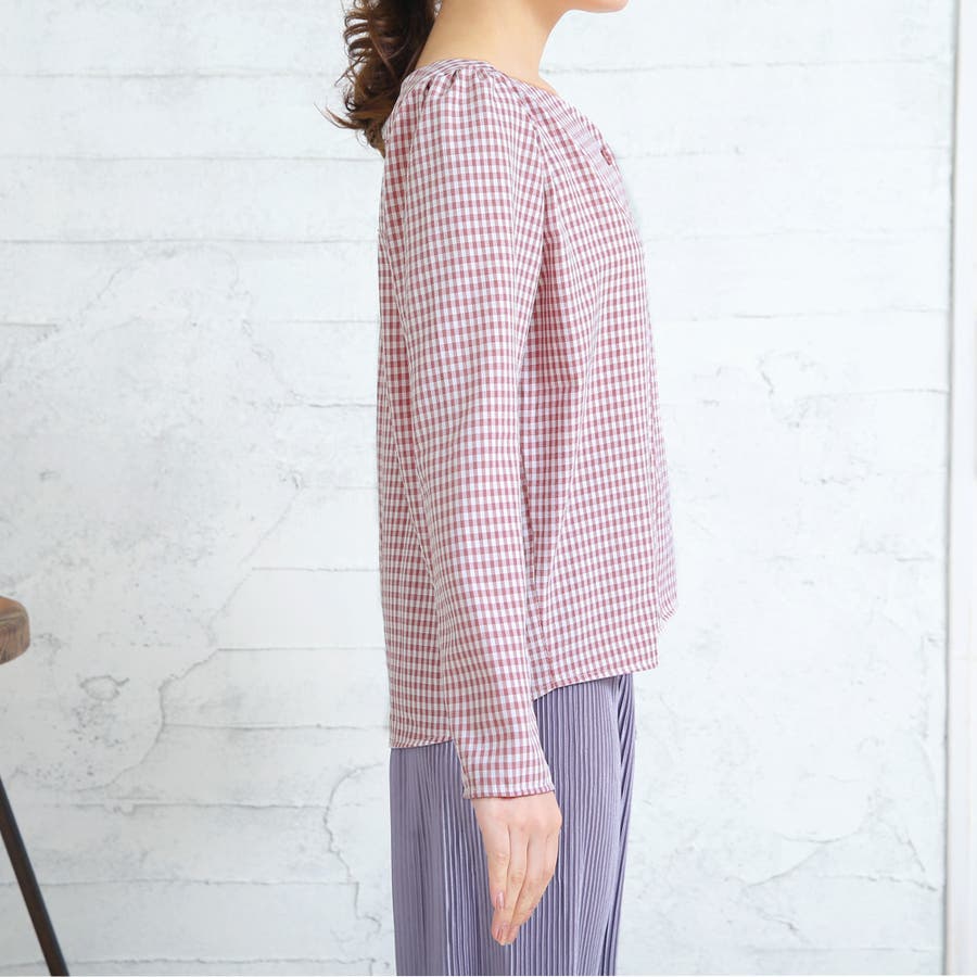 でも肩のラインにギャザーがあってかわいいです。さん (50代以上 / 女性 / 身長150~155cm )購入アイテム:カラー トッド柄×ピンクサイズ fいつものトップスサイズ:Lサイズ感:ぴったり