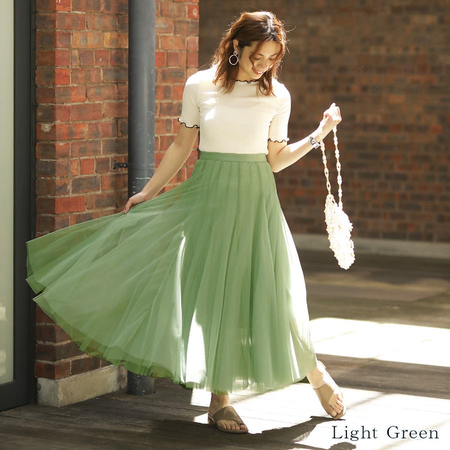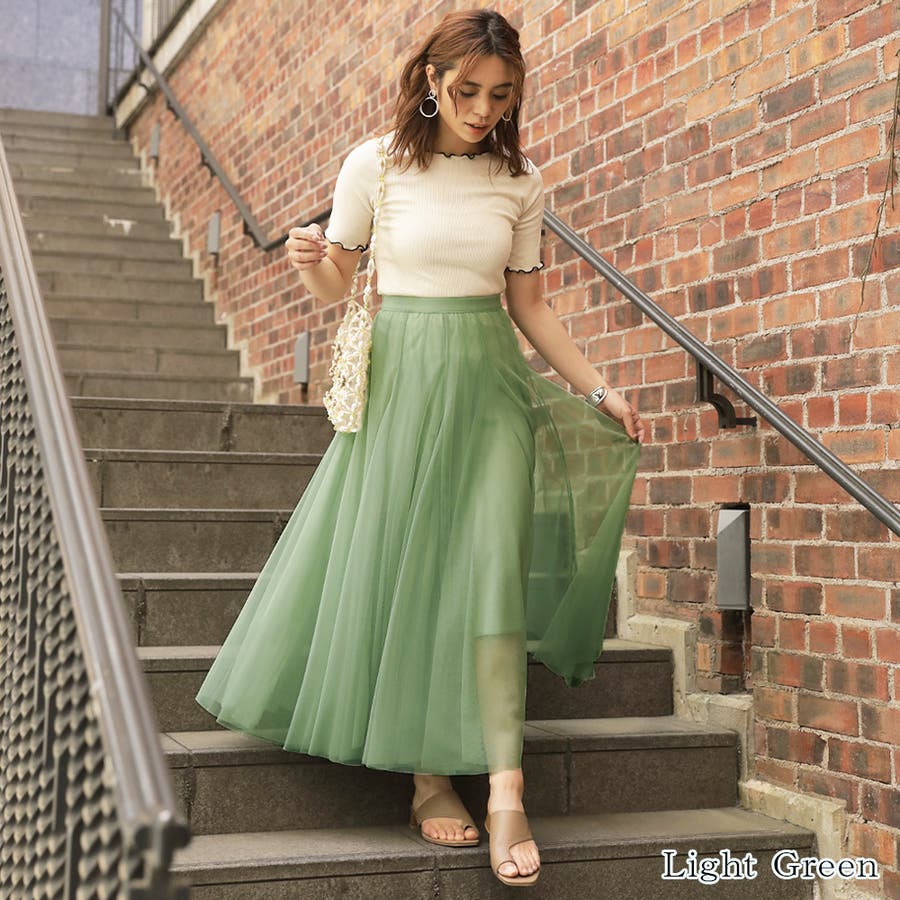 ふんわりと広がるので気になる腰回りもしっかりと体系カバーもしてくれるチュールスカート◎ニットやスウェットなどのゆったりとしているアイテムを合わせても、ブラウスなどの綺麗目なアイテムでも春らしくなるスカートは要チェックです★