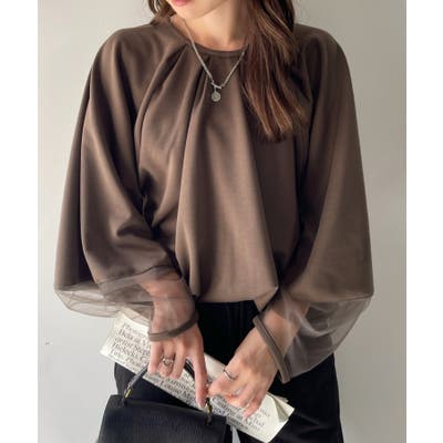 【Eclat one】シアー ドッキング ランタンスリーブ ブラウス