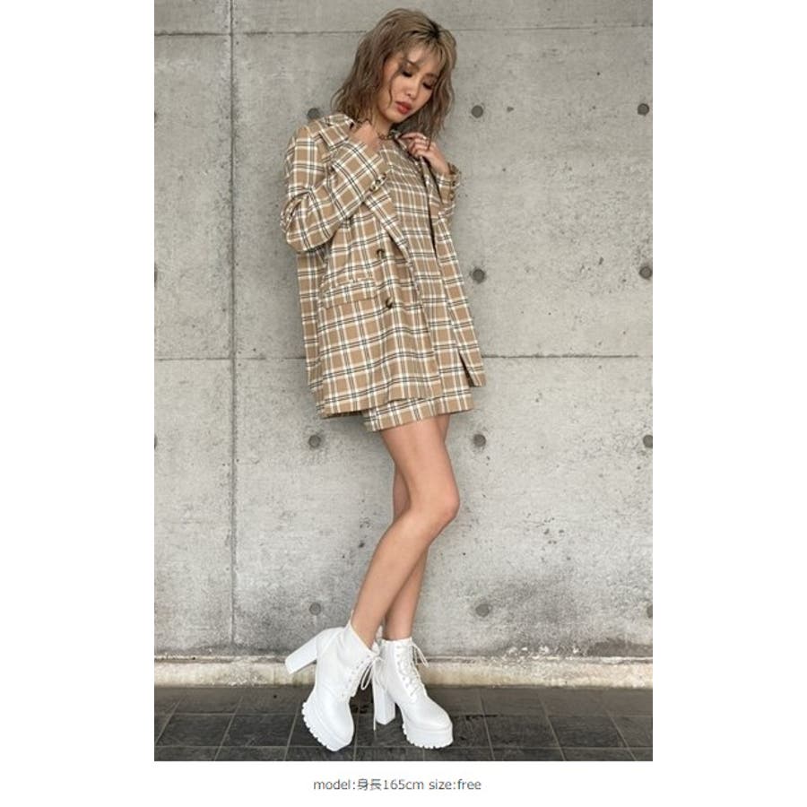 オーバーチェック柄ダブルジャケット(品番:12201711100)とSETで着用して頂けます。