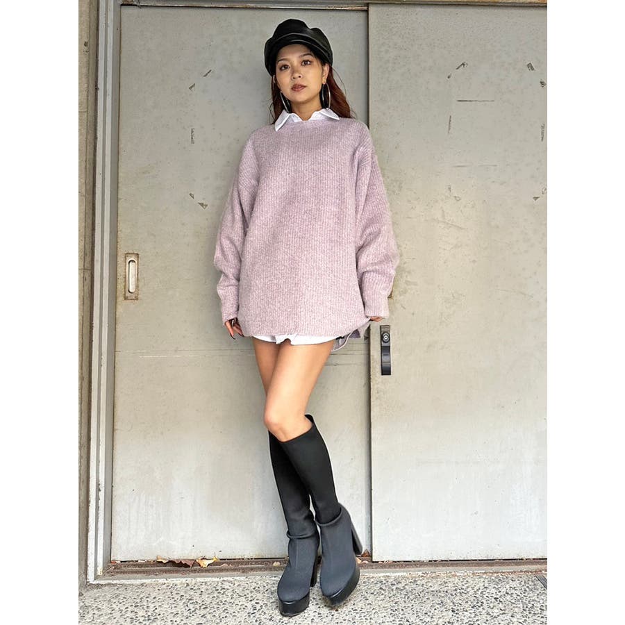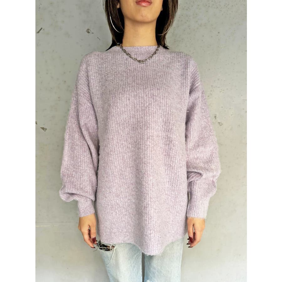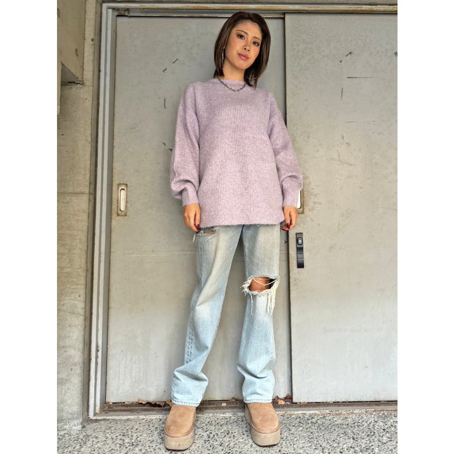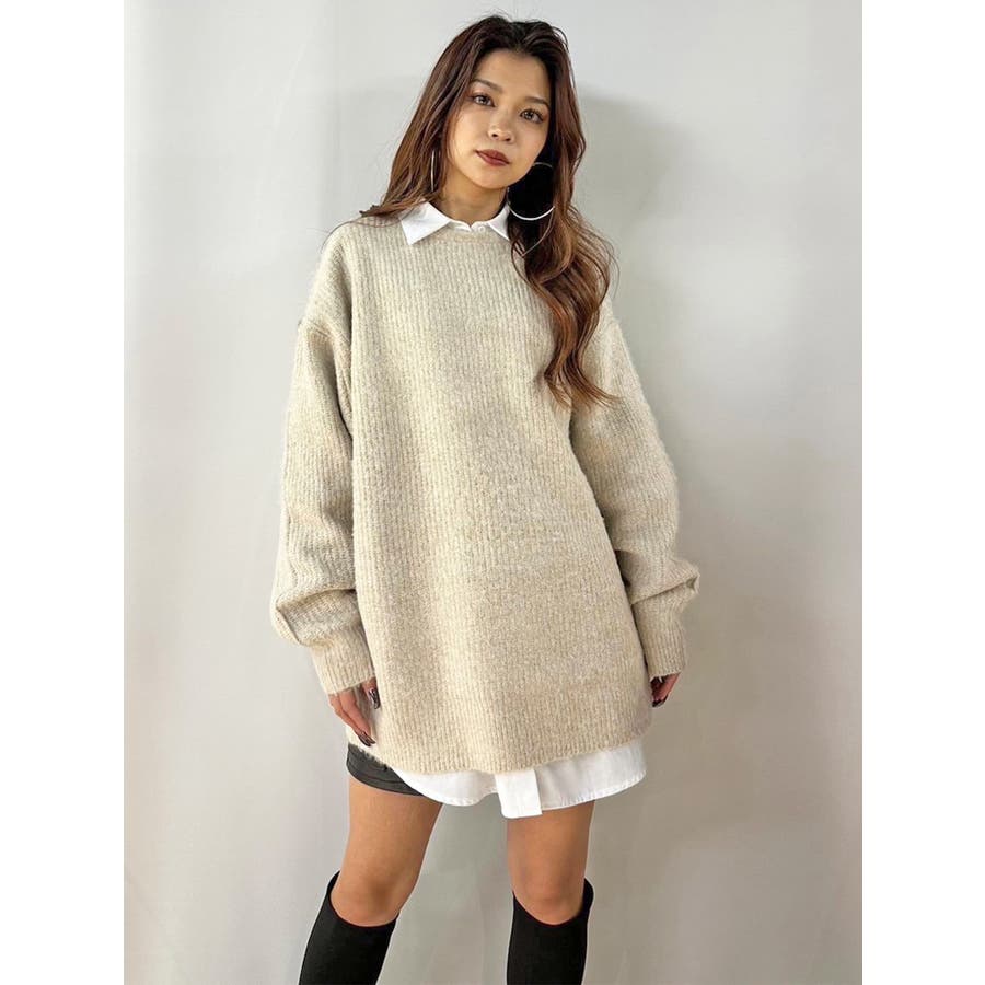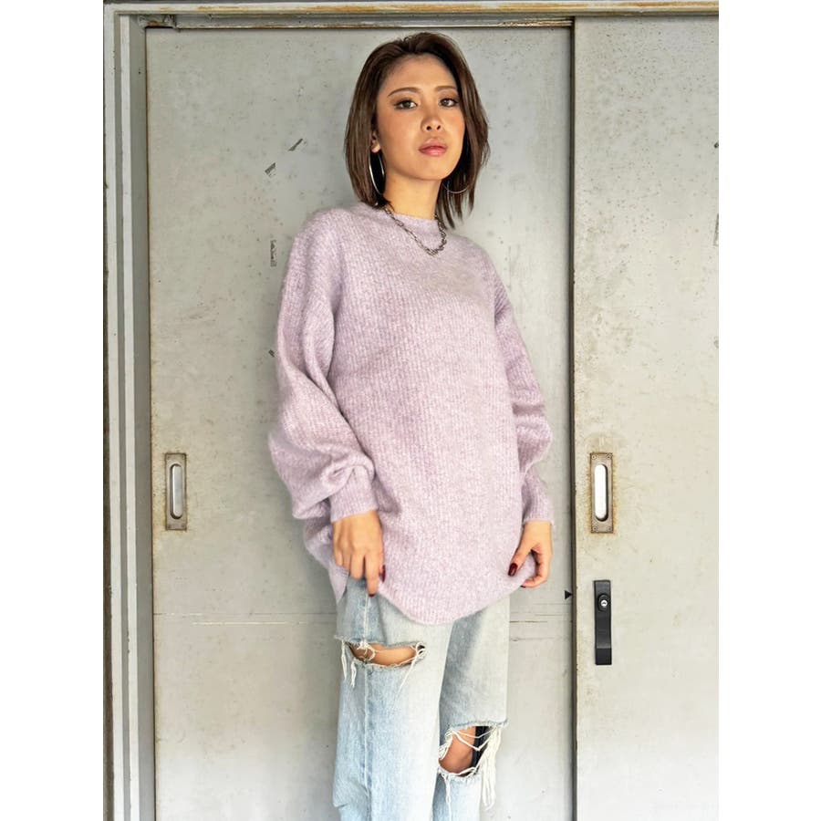 トレンドの毛足が長いシャギーニットを使用したクルーネックのBIGニットトップス。柔らかい肌触りとふんわりとした風合いが魅力的です。タートルネックやロンT、シャツなどをレイヤードして着るのもおススメ。ヒップが隠れる着丈なのでレギンスやスキニーPTといったタイトなボトムスとの合わせも◎。ボディをすっぽり覆うビッグシルエットは華奢見せ効果と体型カバーにも役立つデザインです。コーデの主役になるロングシャギーニットのアイテムは今季マストハブ。