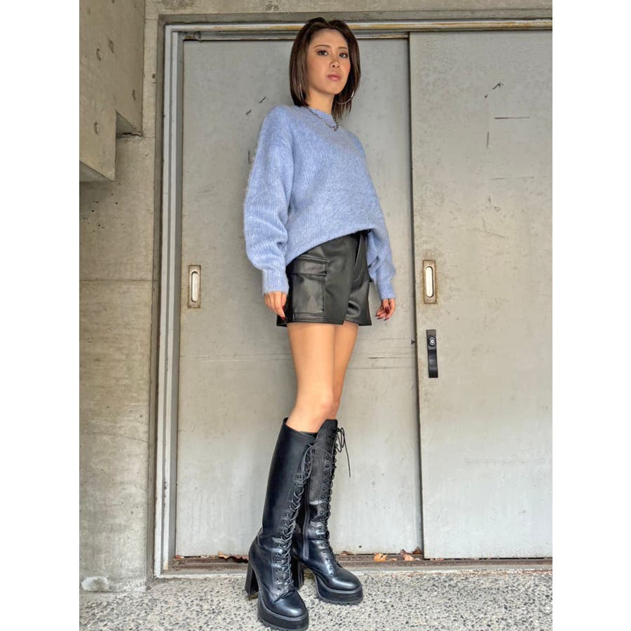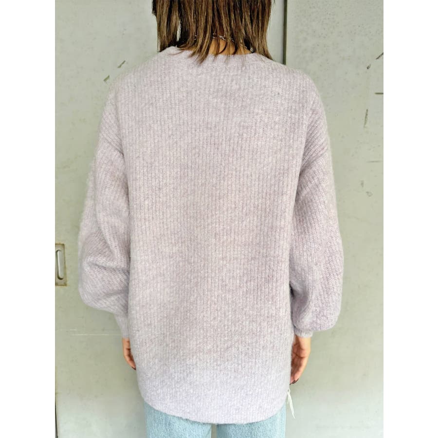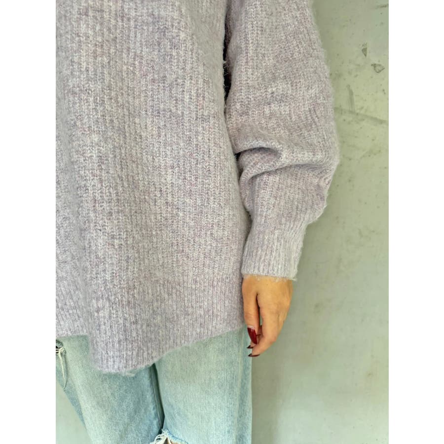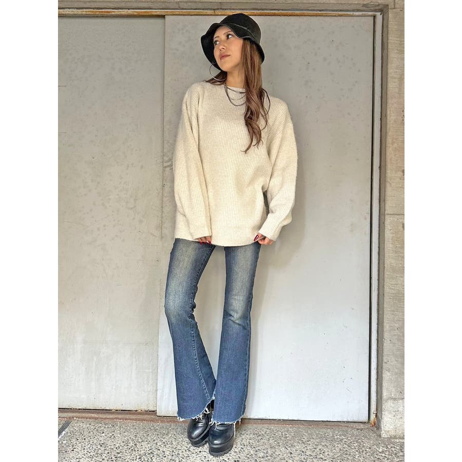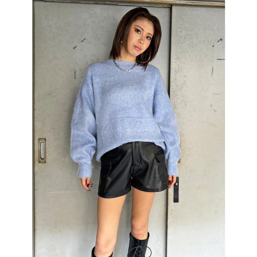 トレンドの毛足が長いシャギーニットを使用したクルーネックのBIGニットトップス。柔らかい肌触りとふんわりとした風合いが魅力的です。タートルネックやロンT、シャツなどをレイヤードして着るのもおススメ。ヒップが隠れる着丈なのでレギンスやスキニーPTといったタイトなボトムスとの合わせも◎。ボディをすっぽり覆うビッグシルエットは華奢見せ効果と体型カバーにも役立つデザインです。コーデの主役になるロングシャギーニットのアイテムは今季マストハブ。