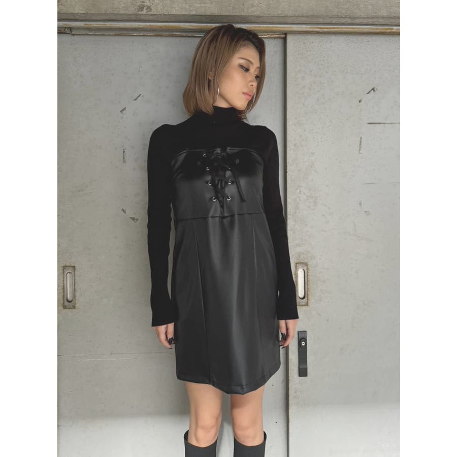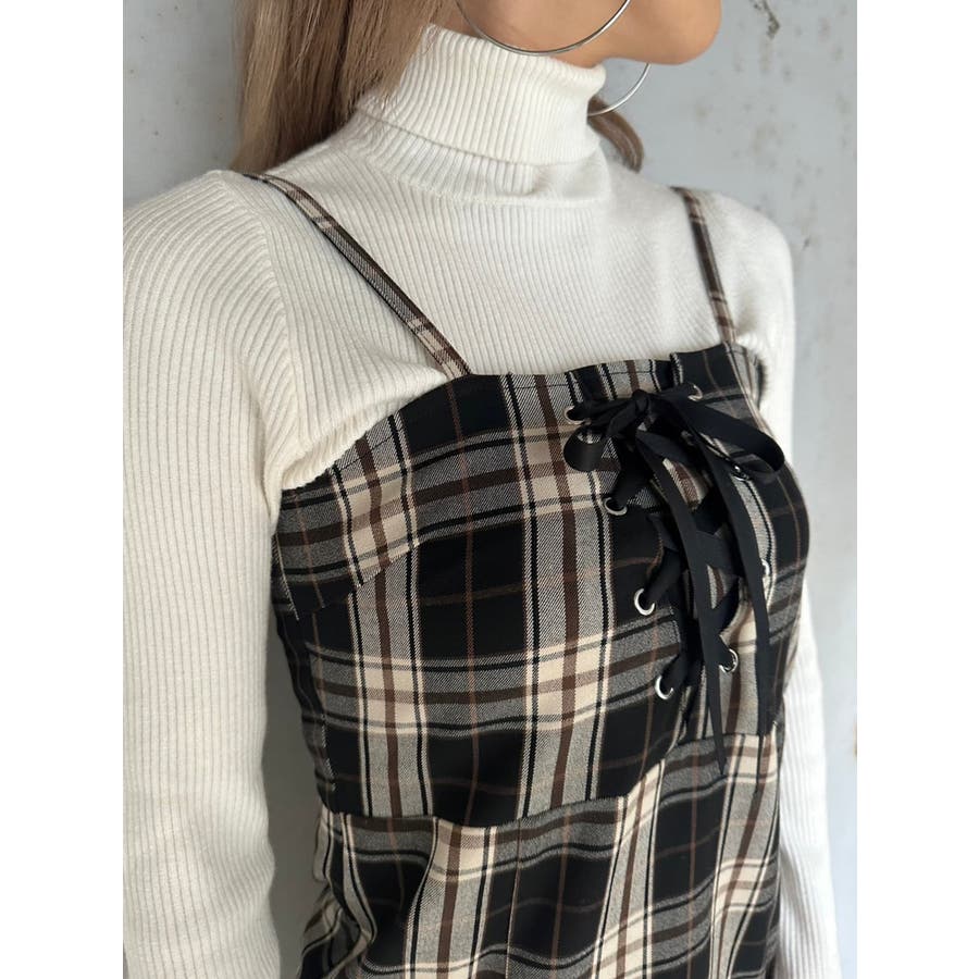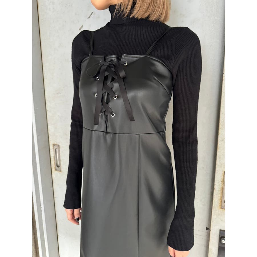 レースアップスリムキャミワンピース