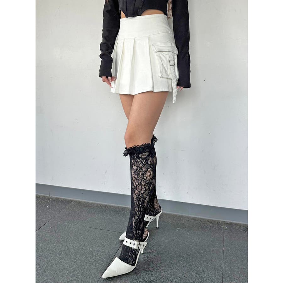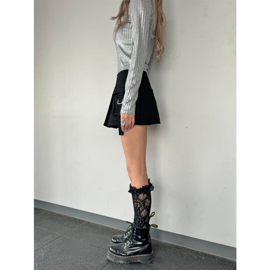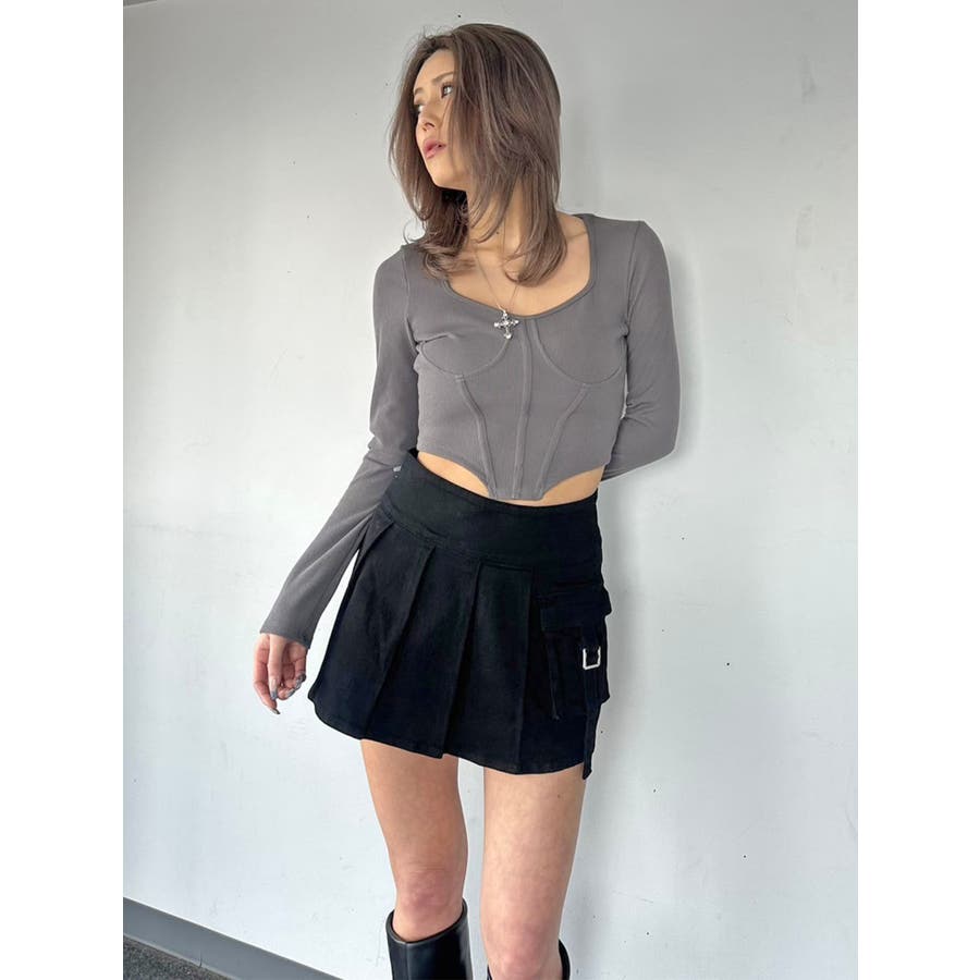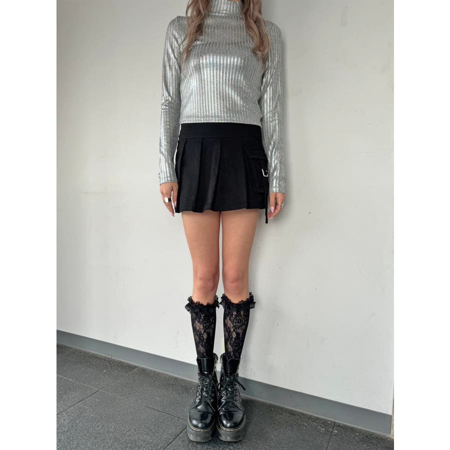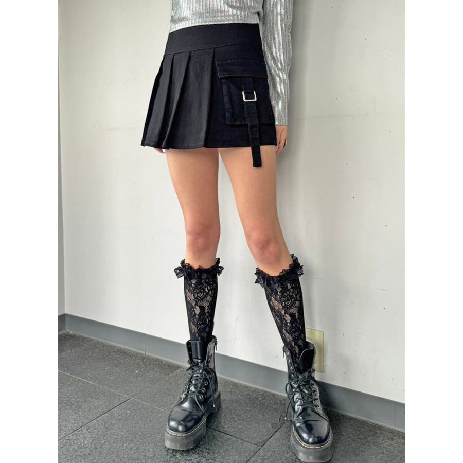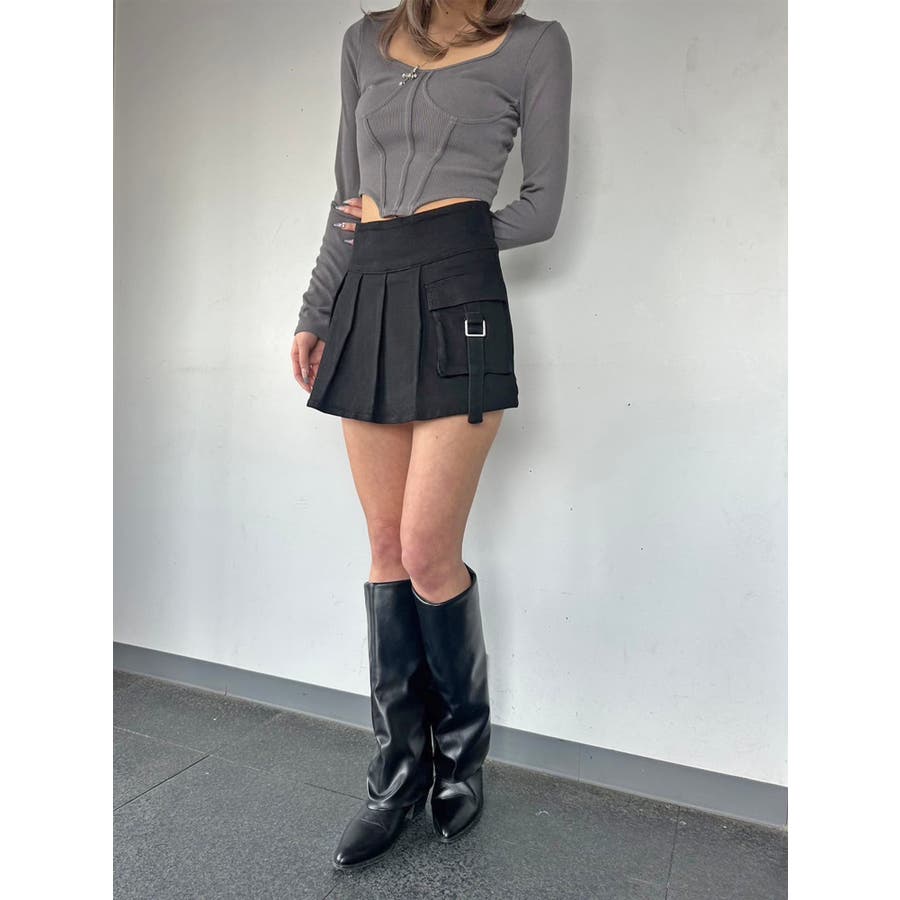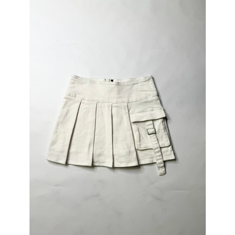 人気のカーゴポケットプリーツスカートが再登場。エッジの効いたBIGカーゴポケットが印象的な、ツイル生地のプリーツスカートです。ポケットに取り付けた紐はあえて裾からはみ出るよう長めに設定。見た目のインパクトに加え、マチがある大容量のポケットは利便性も優れています。フロントのみに入れたプリーツは幅を広く設定する事で可愛くなり過ぎないデザインに仕上げました。共地のインナーショートパンツ付きなので裾が広がるプリーツでも安心して着用可能です。太めのウエスト切替がY2K感漂う一枚になっています。