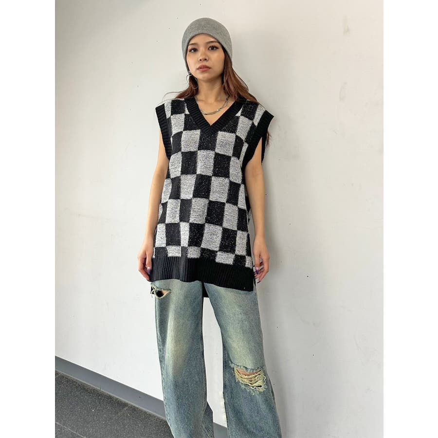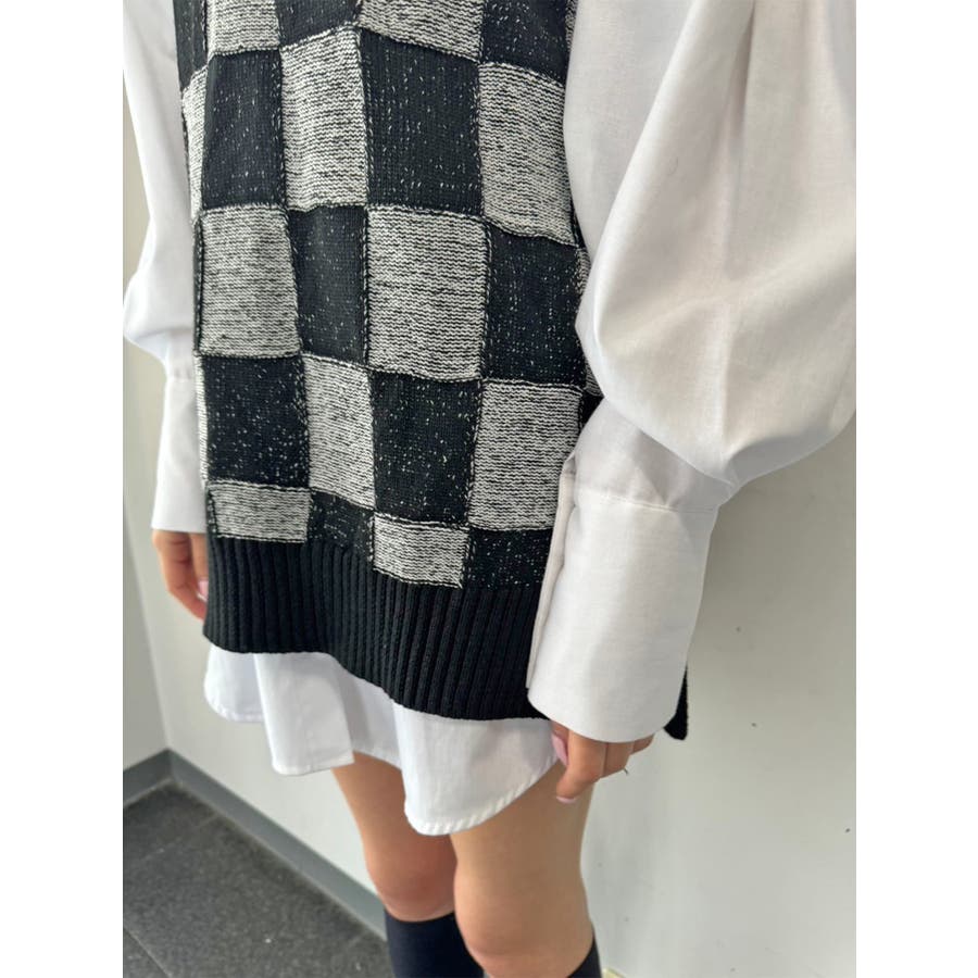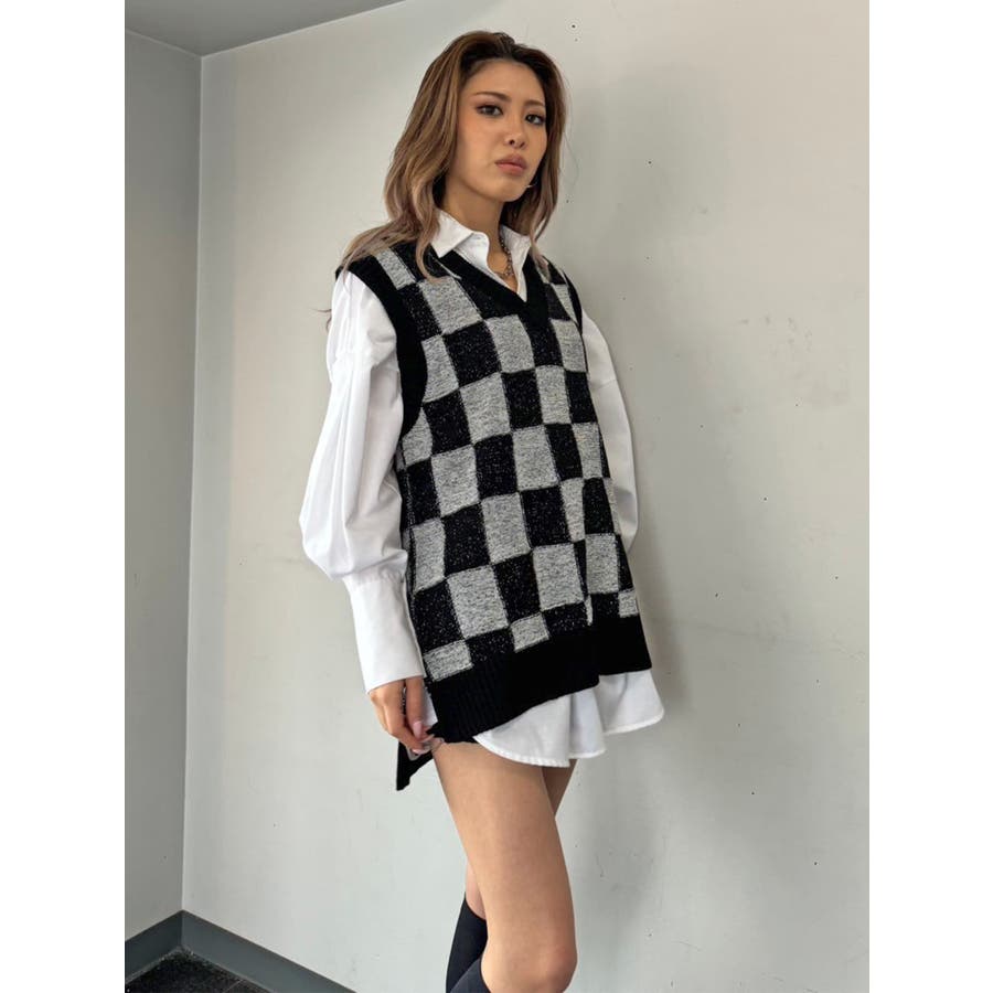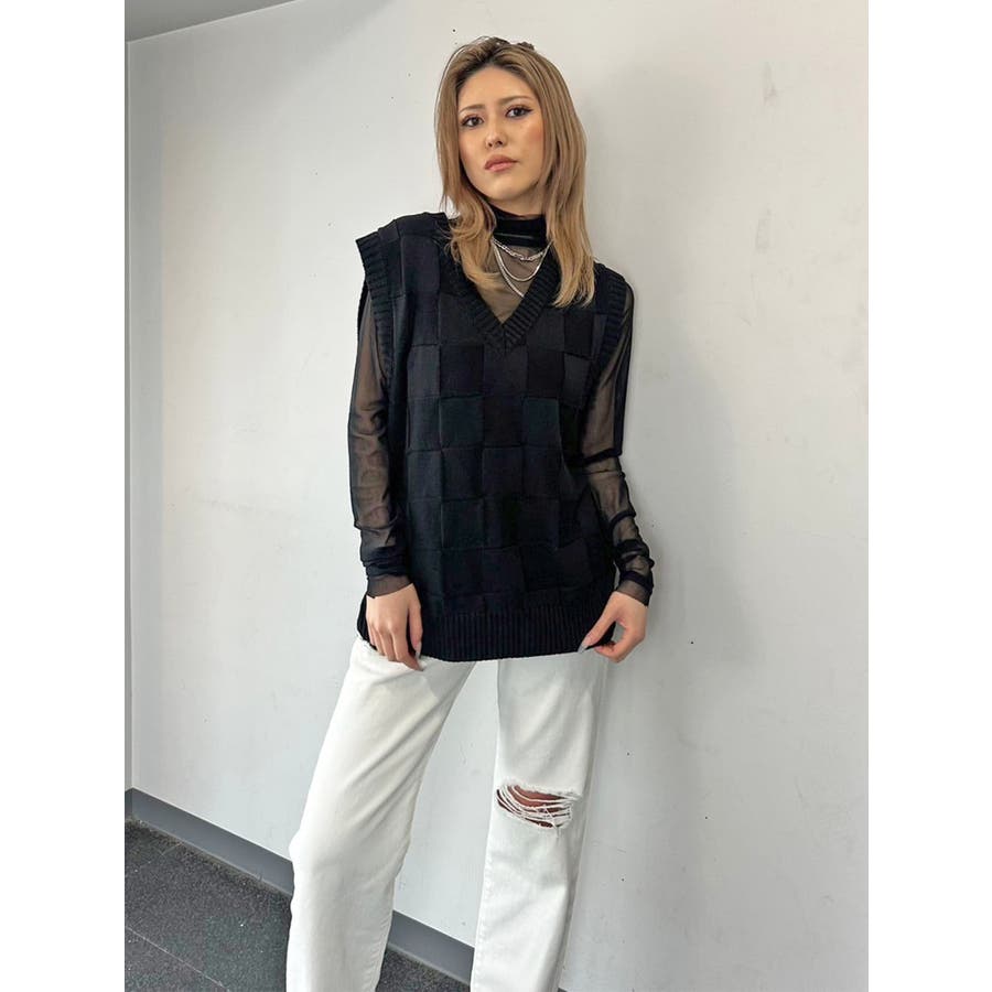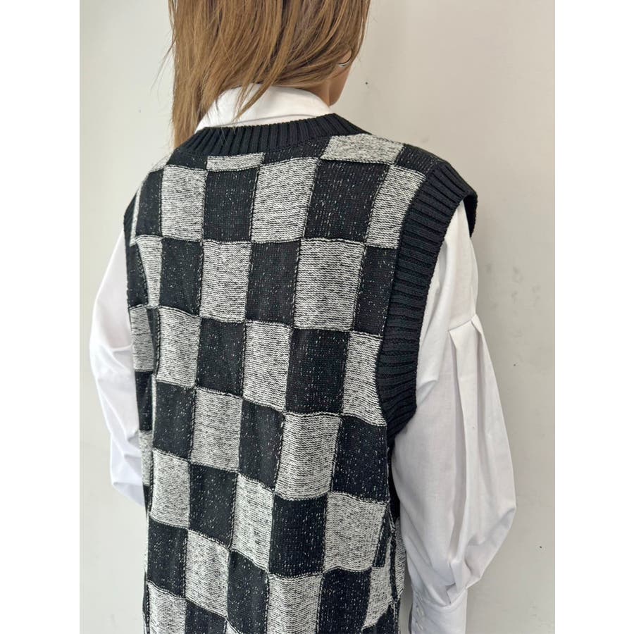 生地を表裏交互に編み立てブロックチェックを表現した存在感のあるニットベスト。着丈は前後差を付け、後ろはヒップが隠れる設定にしています。ゆったりなサイジングにアームホールを広くし、サイドにはスリットを入れて程良い抜け感のあるシルエットに仕上げました。ベストが主役となるのでシンプルなシャツやカットソーとのレイヤードコーデがおススメ。スウェットボトムスとも相性抜群です。MIXカラーはモードなストリートテイストでオシャレ感UP。