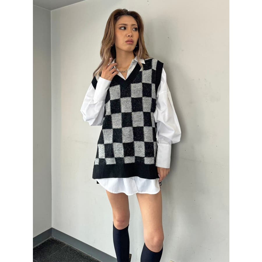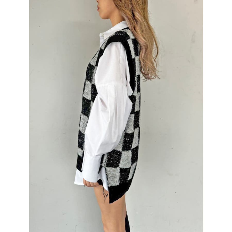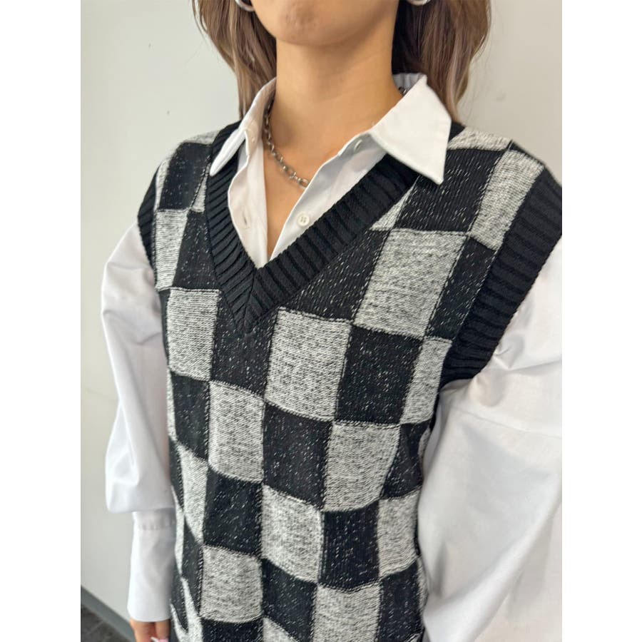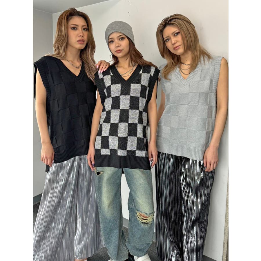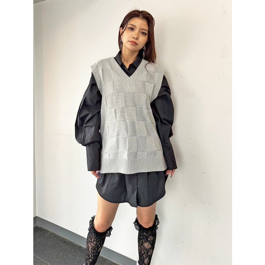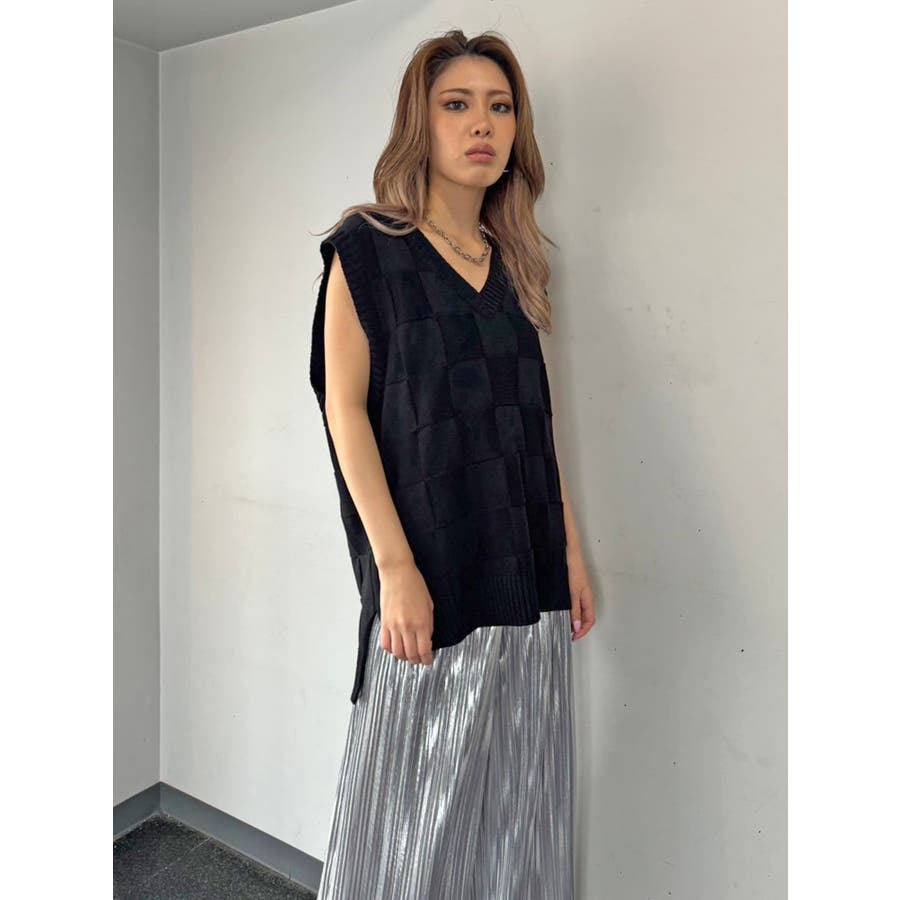 生地を表裏交互に編み立てブロックチェックを表現した存在感のあるニットベスト。着丈は前後差を付け、後ろはヒップが隠れる設定にしています。ゆったりなサイジングにアームホールを広くし、サイドにはスリットを入れて程良い抜け感のあるシルエットに仕上げました。ベストが主役となるのでシンプルなシャツやカットソーとのレイヤードコーデがおススメ。スウェットボトムスとも相性抜群です。MIXカラーはモードなストリートテイストでオシャレ感UP。