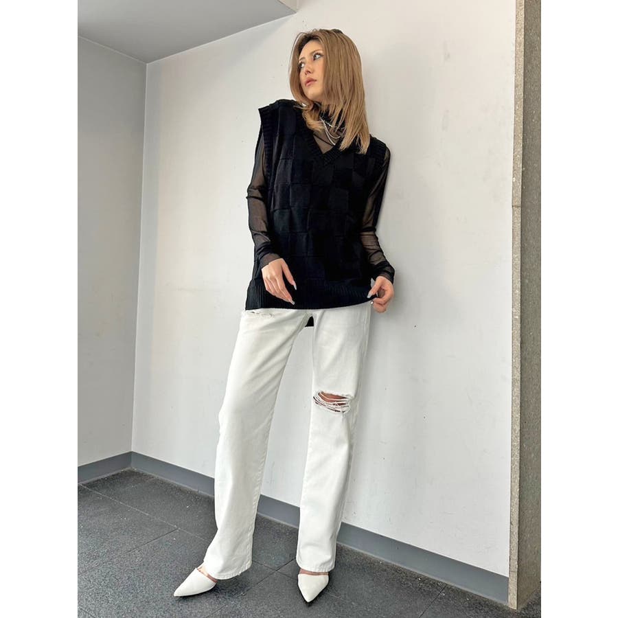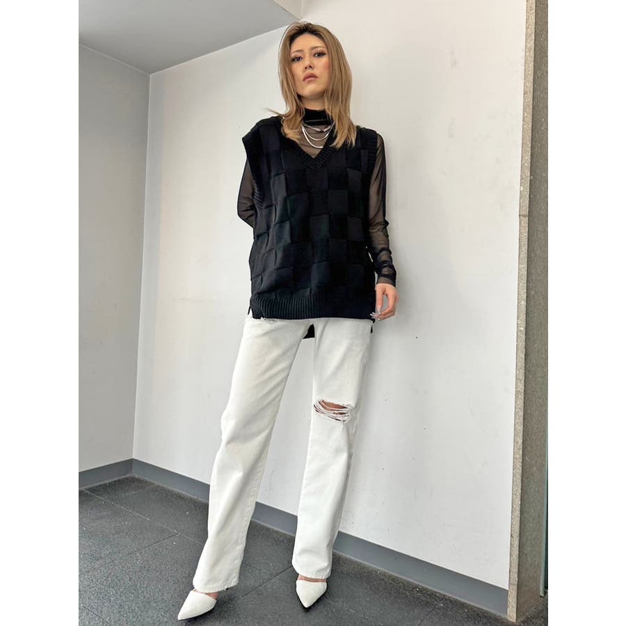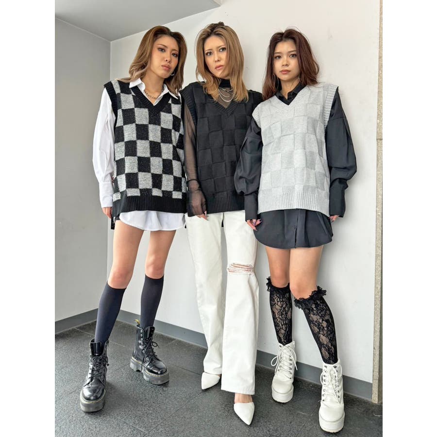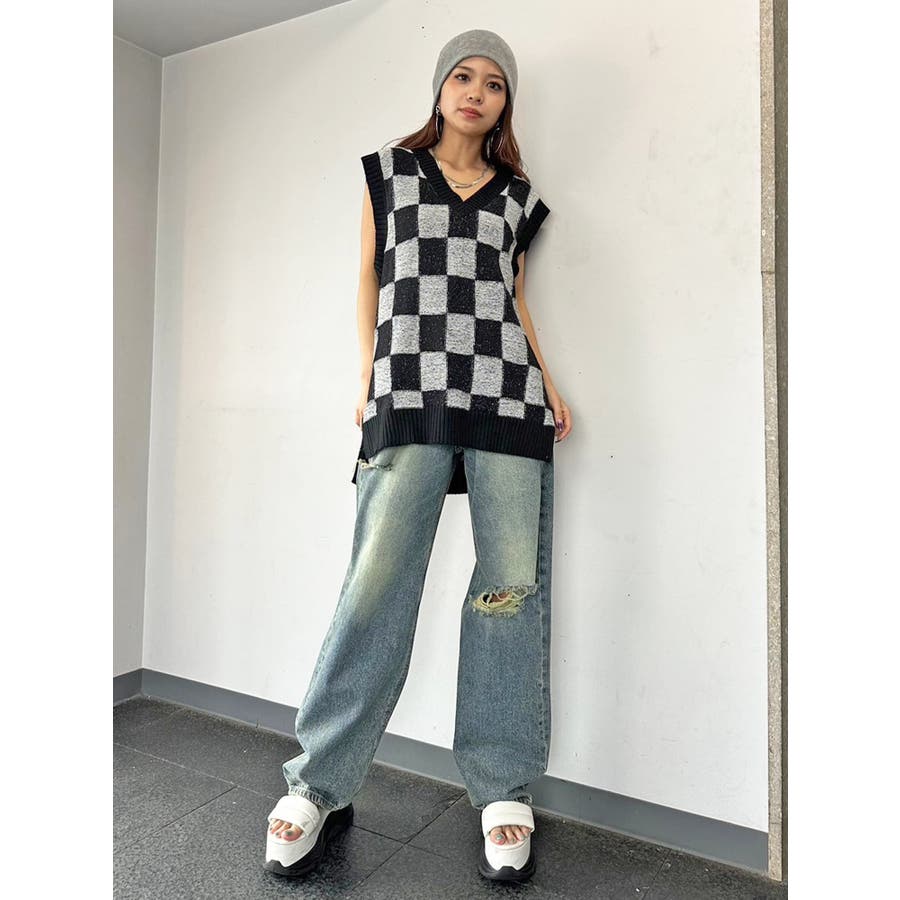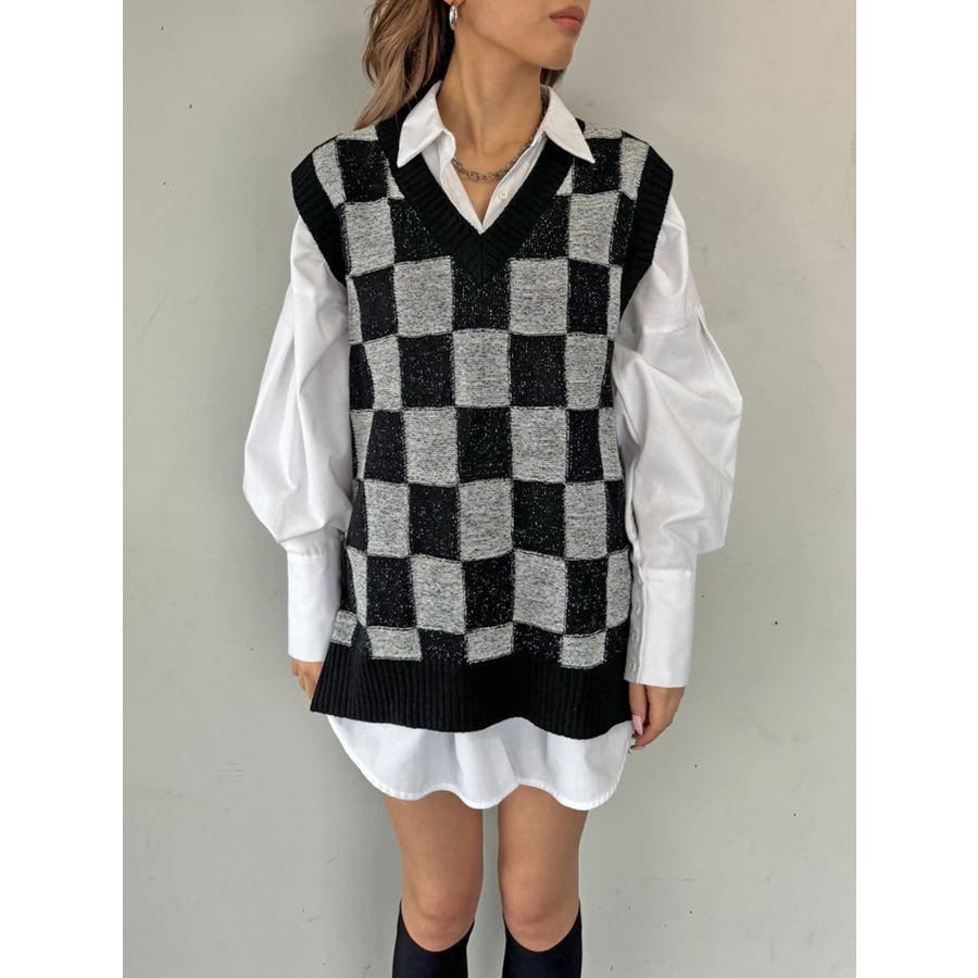 生地を表裏交互に編み立てブロックチェックを表現した存在感のあるニットベスト。着丈は前後差を付け、後ろはヒップが隠れる設定にしています。ゆったりなサイジングにアームホールを広くし、サイドにはスリットを入れて程良い抜け感のあるシルエットに仕上げました。ベストが主役となるのでシンプルなシャツやカットソーとのレイヤードコーデがおススメ。スウェットボトムスとも相性抜群です。MIXカラーはモードなストリートテイストでオシャレ感UP。