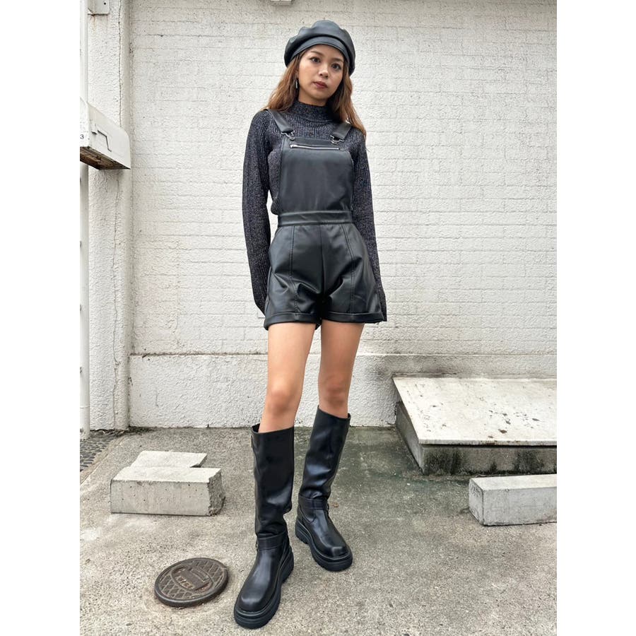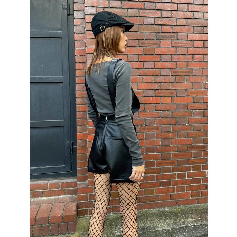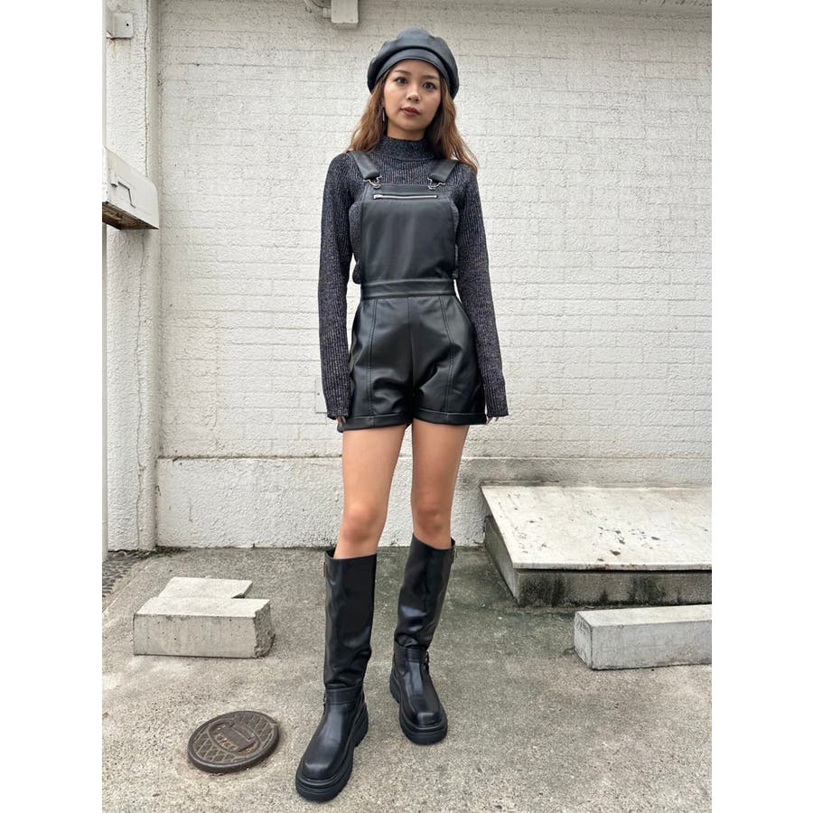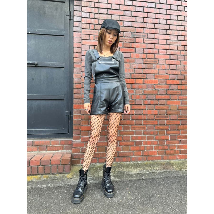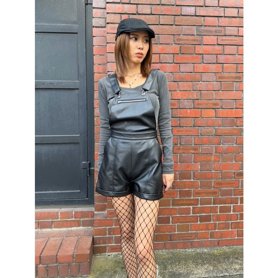 程よい光沢感の合成皮革サロペット。コンパクトなサイジングですが柔らかく伸縮性のある生地を使用しているので着心地も◎カジュアルなサロペットも合成皮革に置き換えることで子供っぽさがなくなりシックな印象に。ニットやカットソーを合わせて様々なレイヤードスタイルを楽しめるのがサロペットの魅力。胸上に施したメタリックのZIPがワンポイントになっています。肩紐は長さ調節できるのでお好みの位置で着用して頂けます。