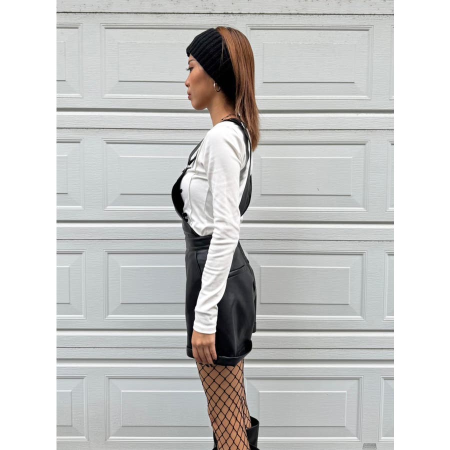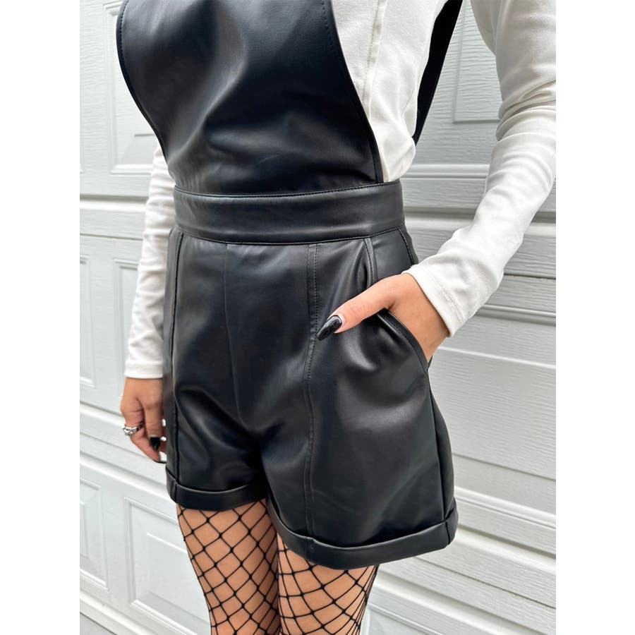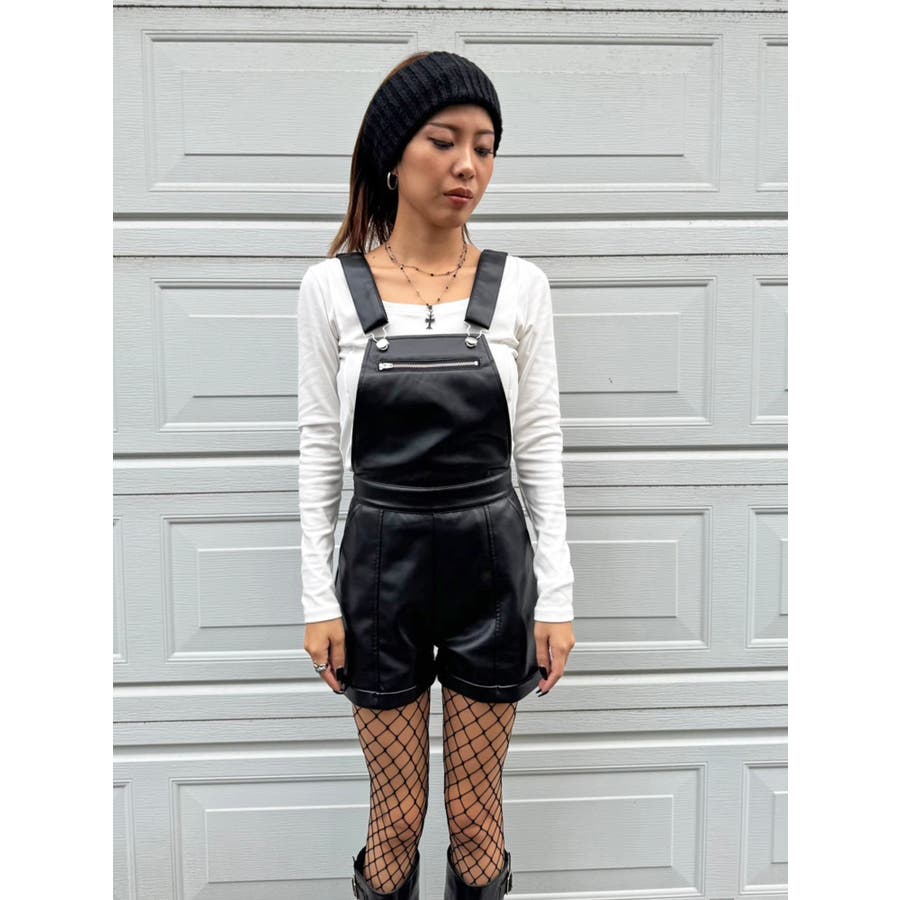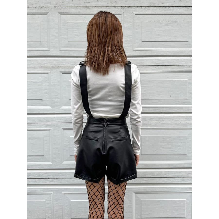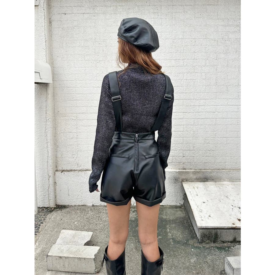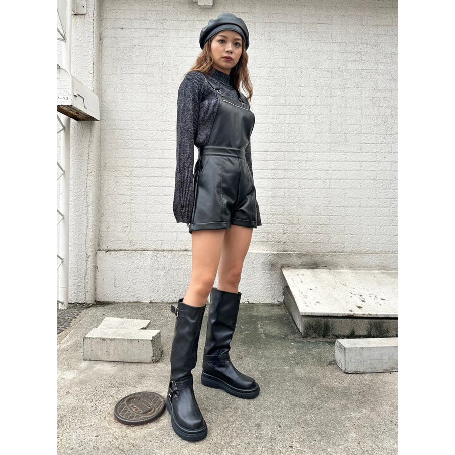 程よい光沢感の合成皮革サロペット。コンパクトなサイジングですが柔らかく伸縮性のある生地を使用しているので着心地も◎カジュアルなサロペットも合成皮革に置き換えることで子供っぽさがなくなりシックな印象に。ニットやカットソーを合わせて様々なレイヤードスタイルを楽しめるのがサロペットの魅力。胸上に施したメタリックのZIPがワンポイントになっています。肩紐は長さ調節できるのでお好みの位置で着用して頂けます。