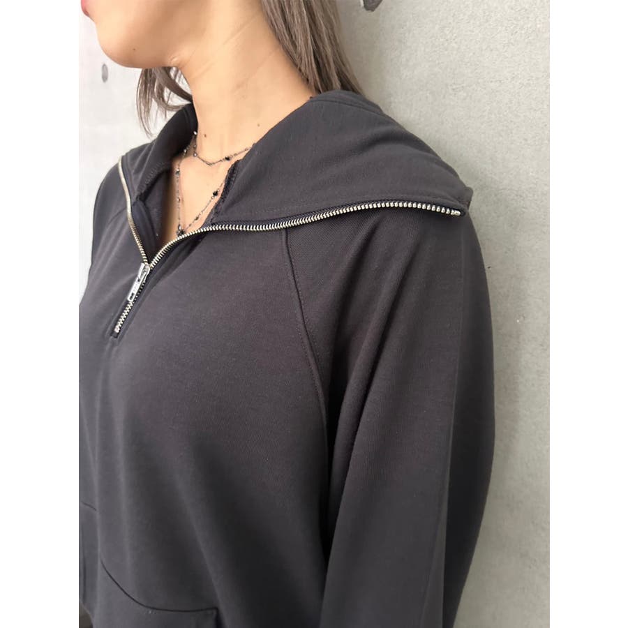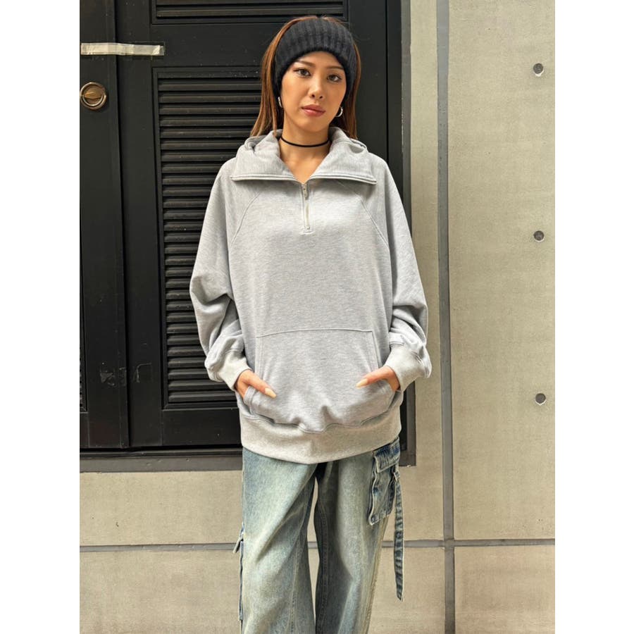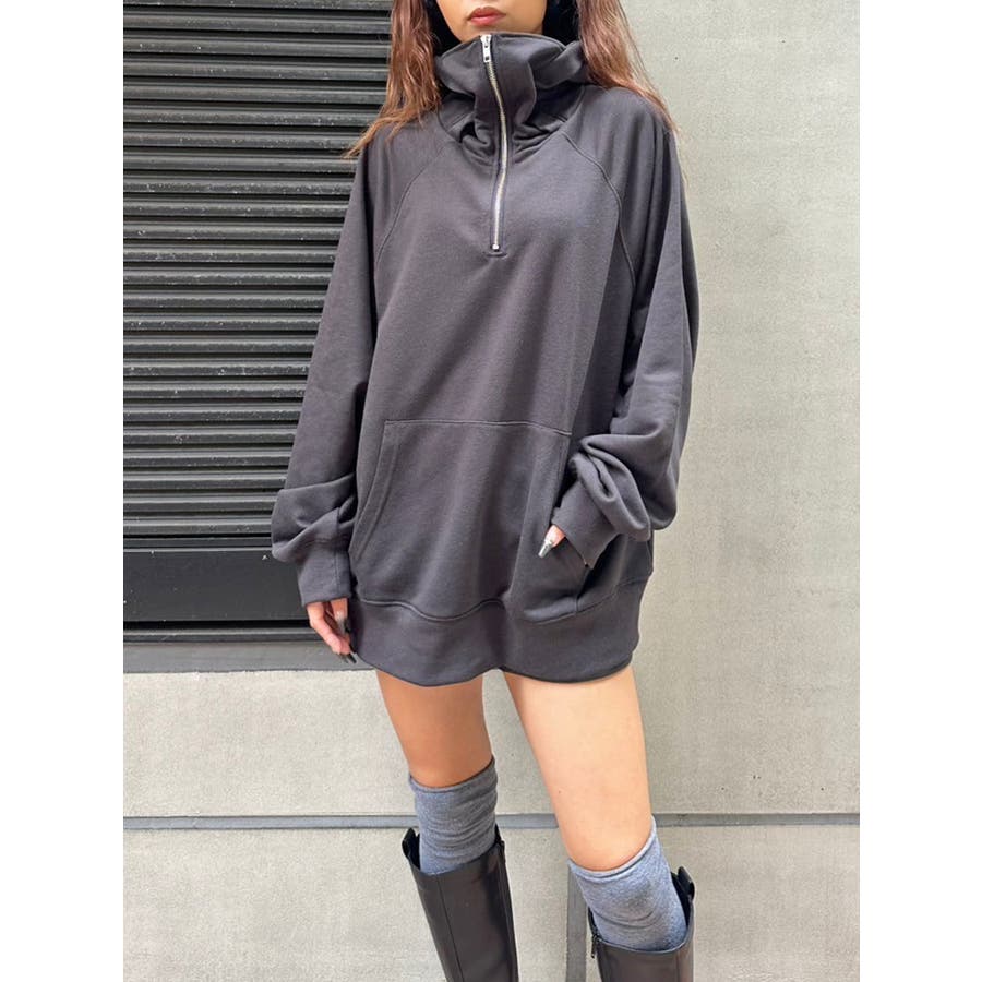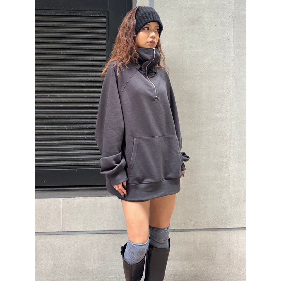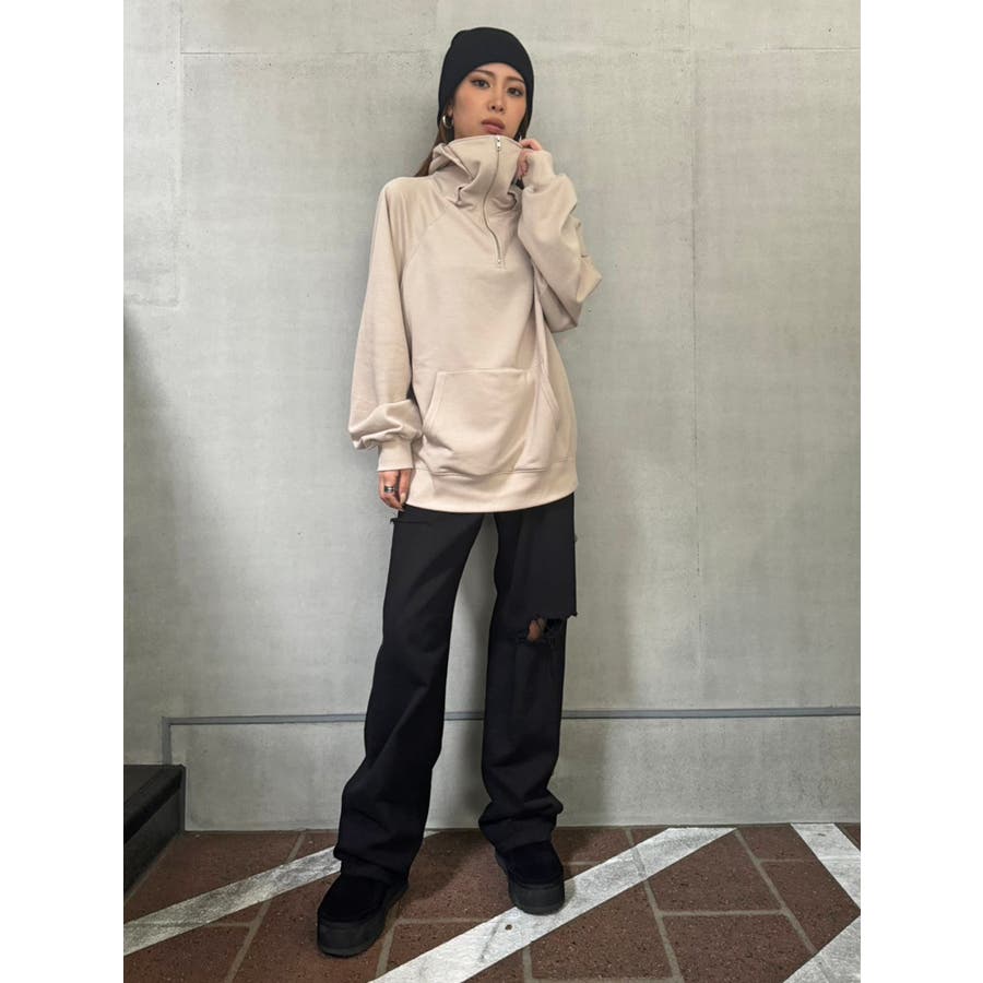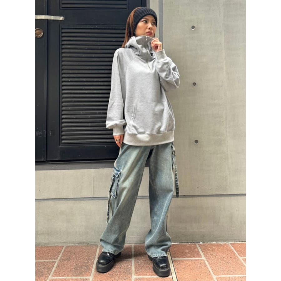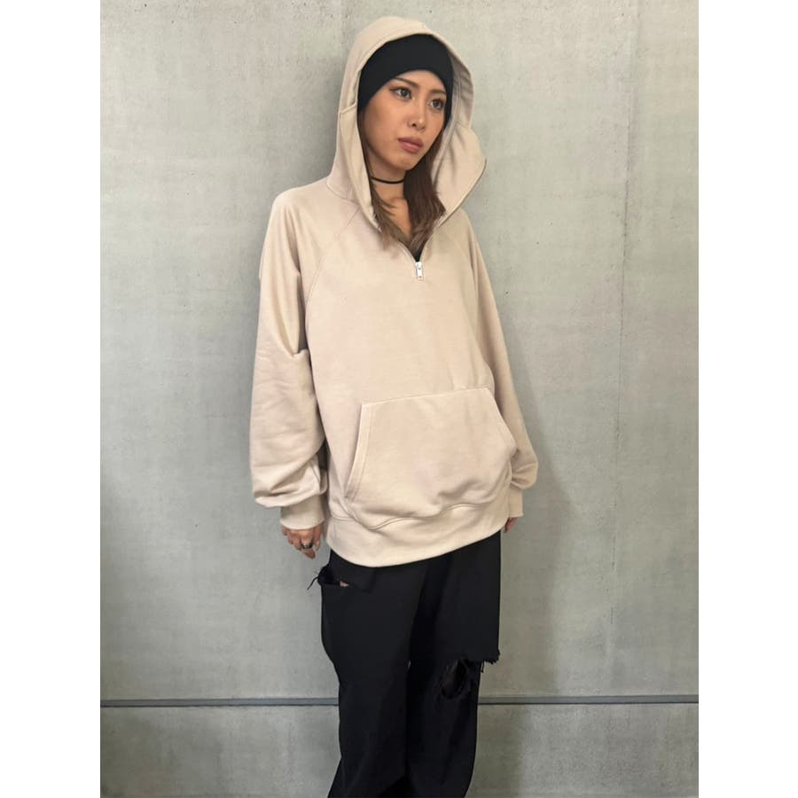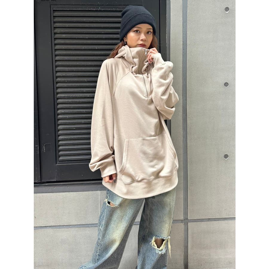 フロントZIPを全て閉じると顔を半分覆うほどの長さがあるネックデザインが目新しいフードトップス。ヒップにかかるくらい長めな着丈と程よくゆとりのあるシルエットで今時な印象に。のっぺりとしないよう大きめのポケットで身頃に立体感を出しました。風の侵入を防ぐためにきゅっと絞られたリブの袖口と首元もしっかり温めてくれるハイネックデザインで防寒対策もばっちり。