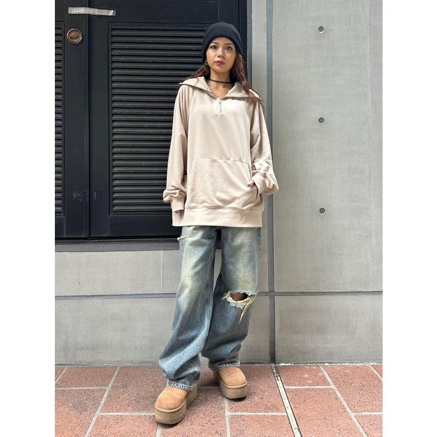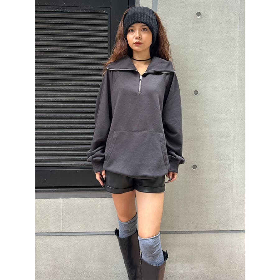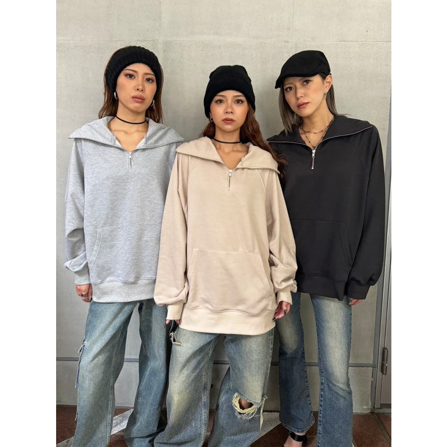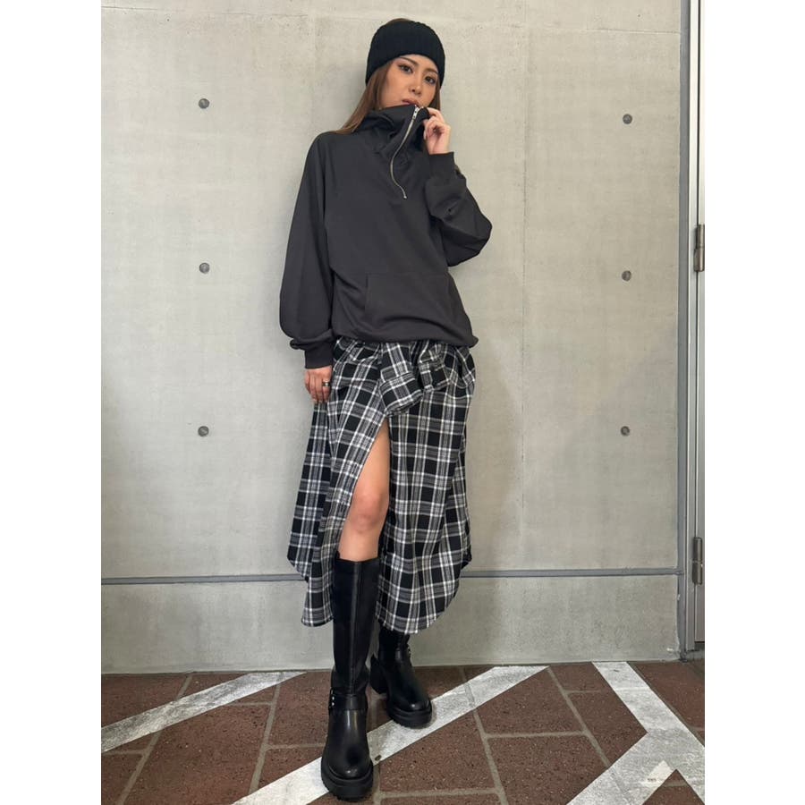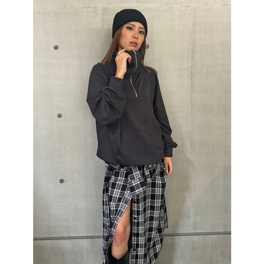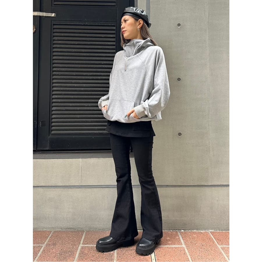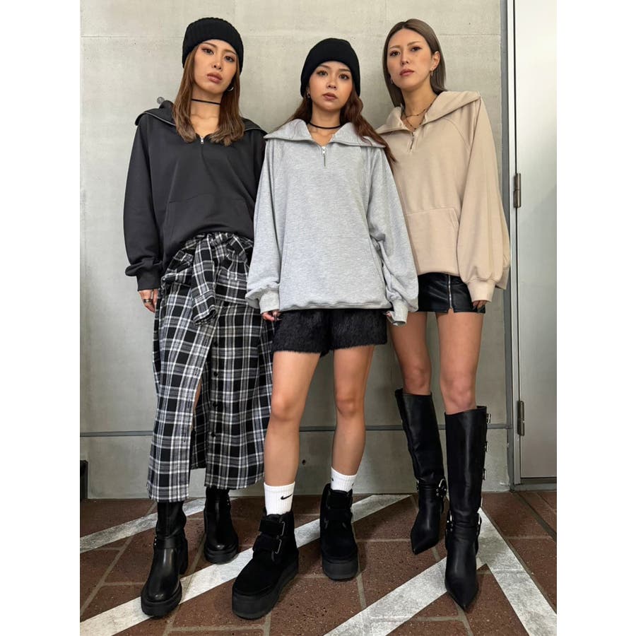 フロントZIPを全て閉じると顔を半分覆うほどの長さがあるネックデザインが目新しいフードトップス。ヒップにかかるくらい長めな着丈と程よくゆとりのあるシルエットで今時な印象に。のっぺりとしないよう大きめのポケットで身頃に立体感を出しました。風の侵入を防ぐためにきゅっと絞られたリブの袖口と首元もしっかり温めてくれるハイネックデザインで防寒対策もばっちり。